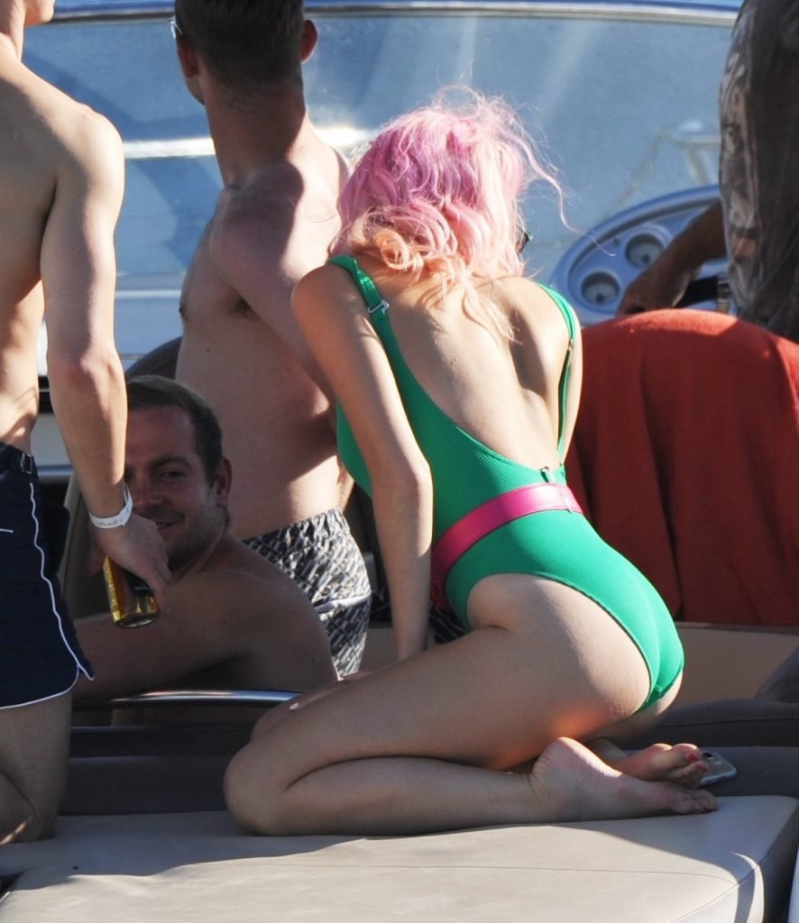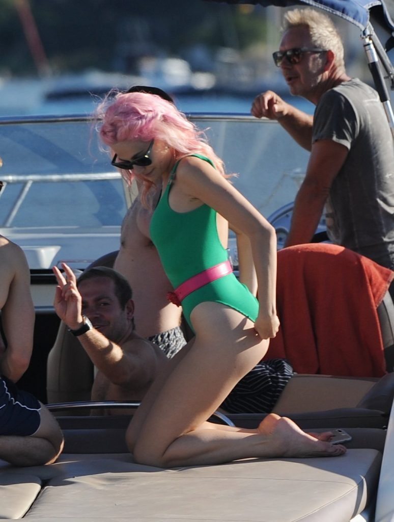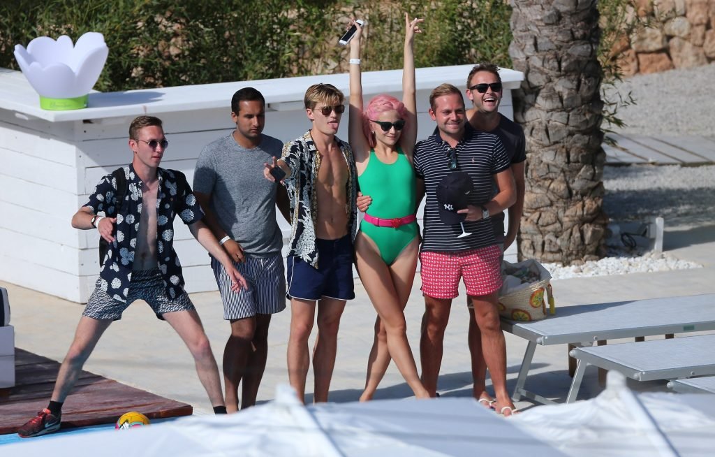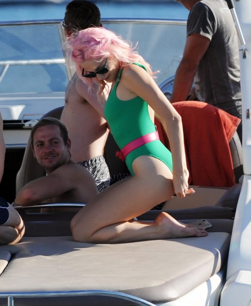 Pixie Lott usa um maiô verde durante férias em Ibiza, 01/07/2017. Pixie Lott é uma cantora/compositora, atriz de Londres. Idade: 26.