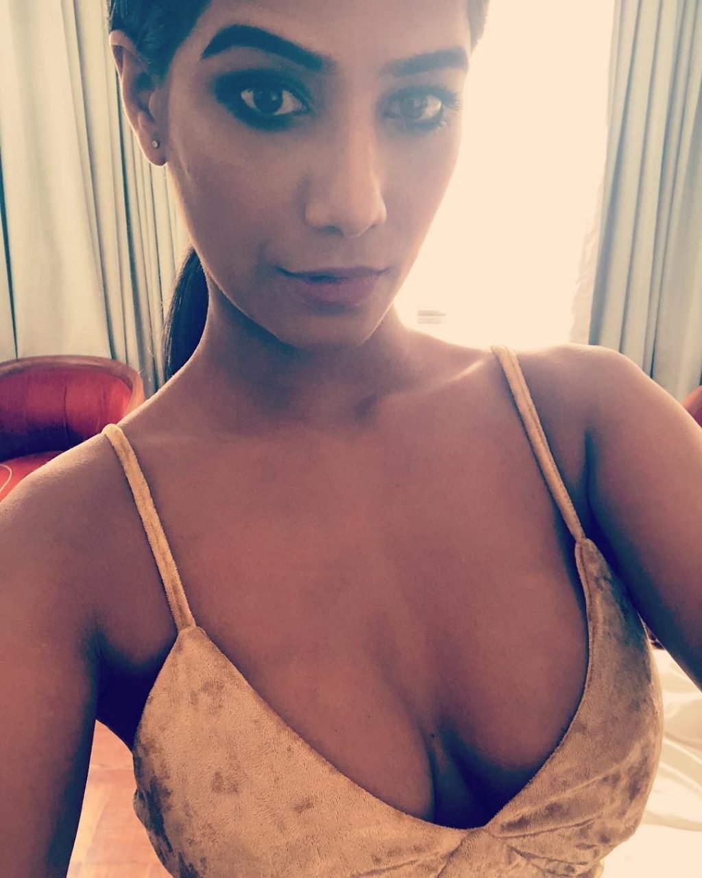 No entanto, Poonam Pandey ganhou fama graças às suas fotos sensuais no Instagram e vídeos sedutores no YouTube. Anteriormente, a garota postava fotos nuas (cobertas). Mas essa beleza se superou.