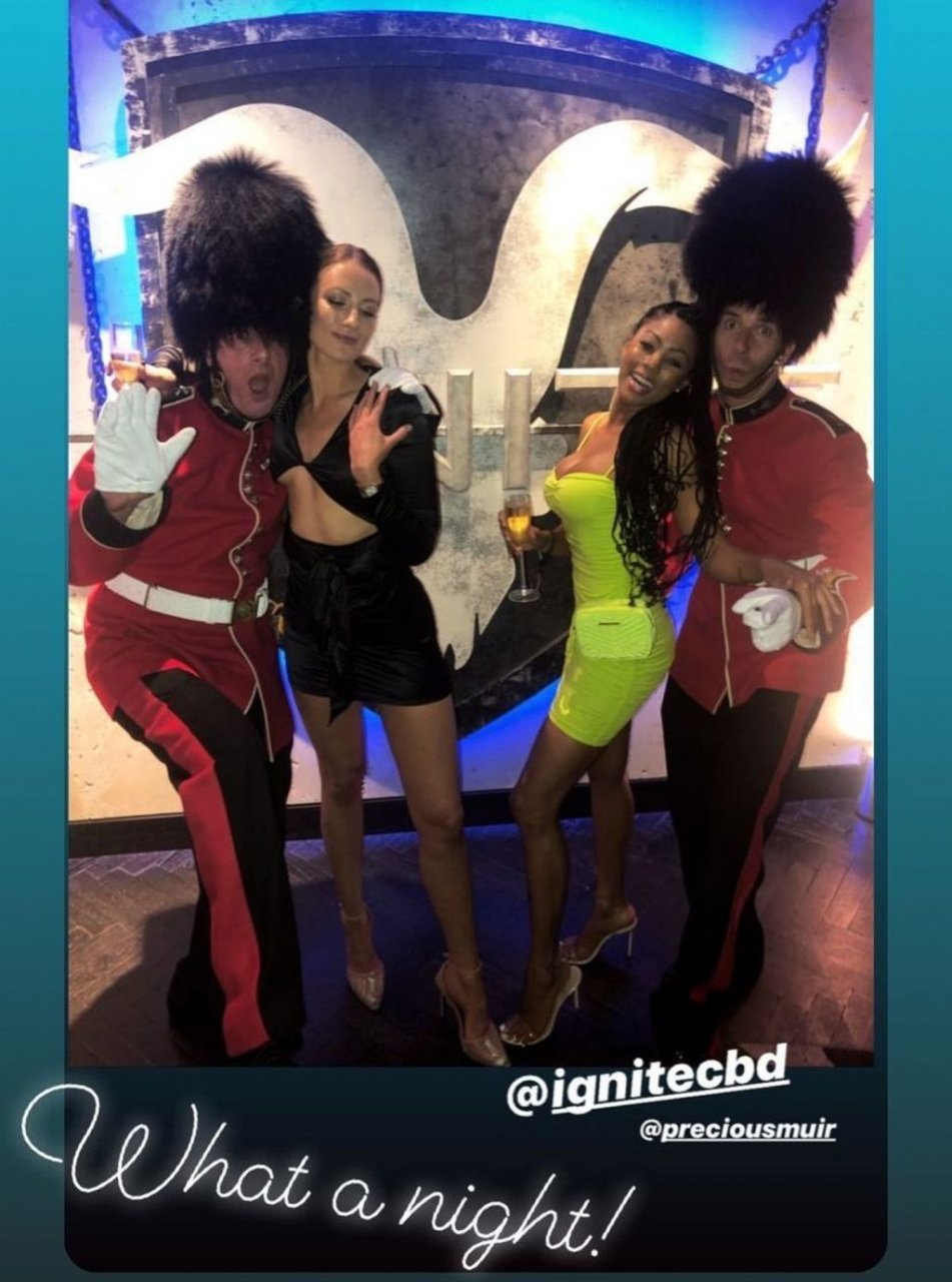 Precious Muir participa da festa de lançamento do IGNITE realizada no The Mandrake Hotel em Londres, 07/11/2019. A modelo/atriz de 35 anos escolheu para o evento um vestido curto amarelo.