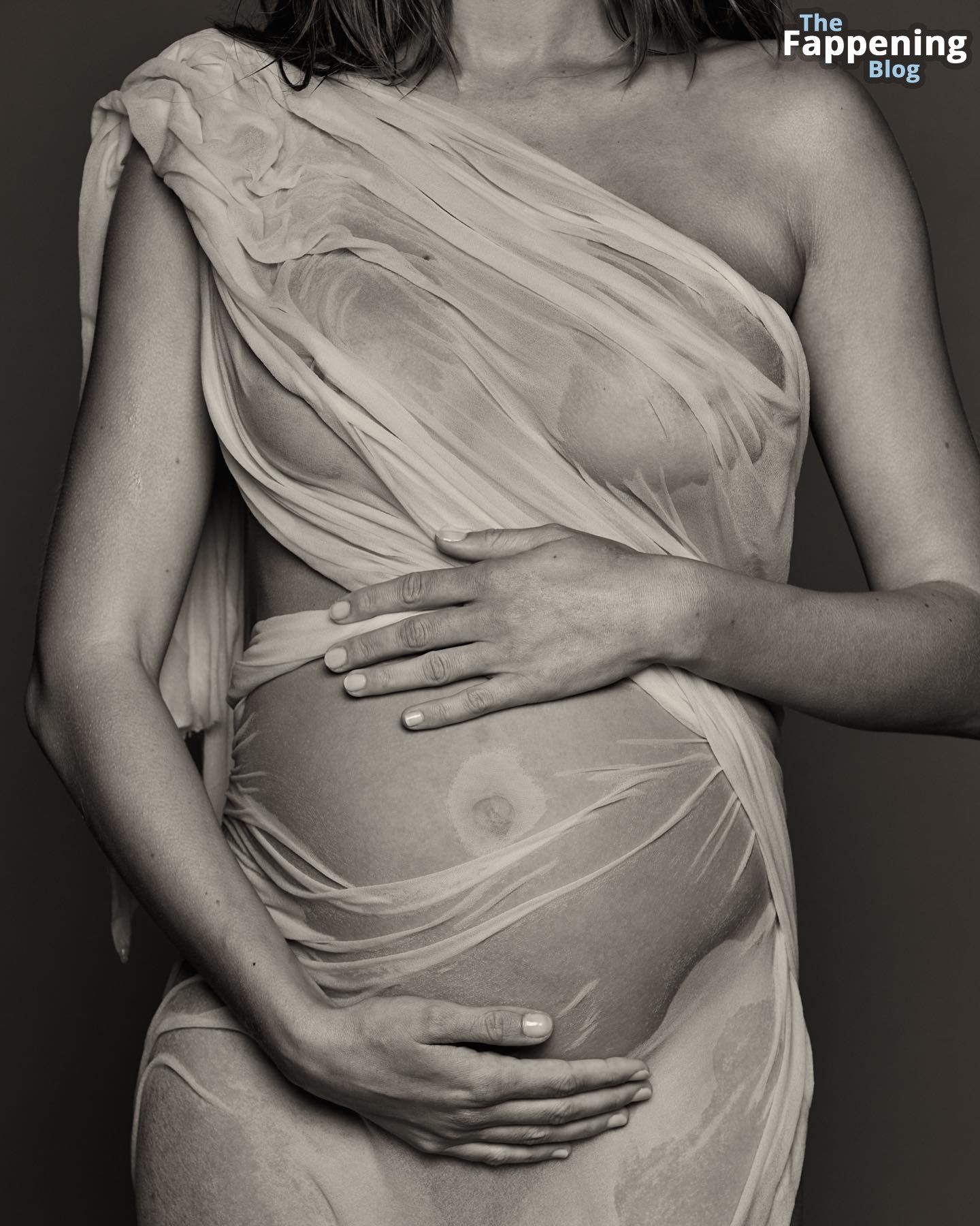 Josephine está nua e quase coberta com uma capa transparente e molhada que mostra sua gravidez. Sua imagem para este ensaio é quente, mas também reflete a ternura e feminilidade que toda futura mamãe possui. Skriver, como sempre, conseguiu transmitir emoções e sentimentos através dessas imagens, provando que estar grávida não é apenas esperar, mas também um momento em que as mulheres podem se sentir sexy e confiantes.