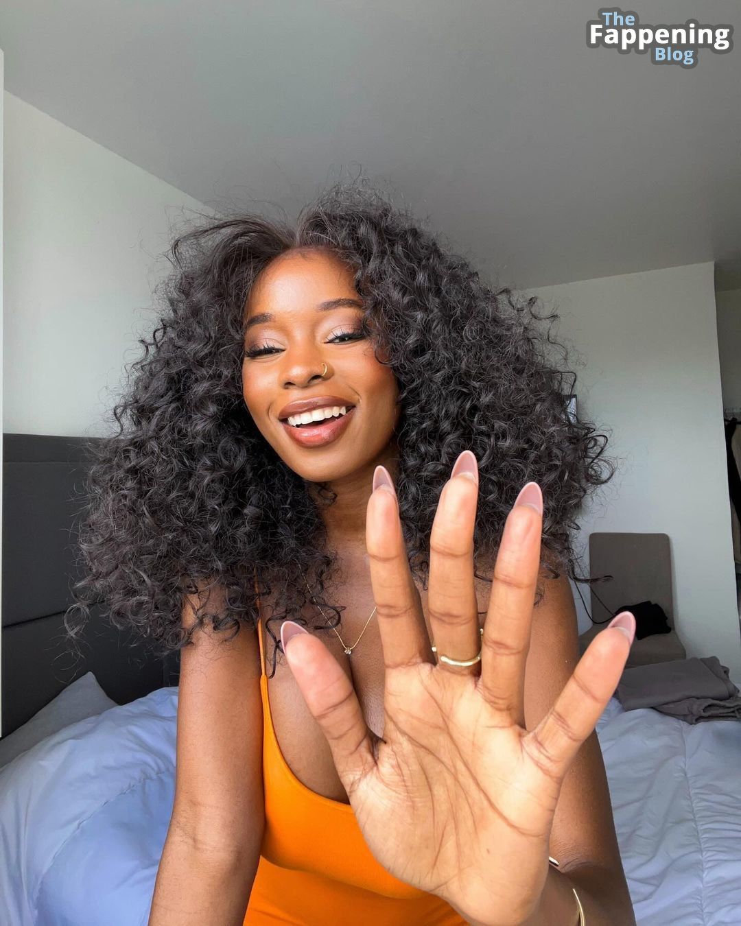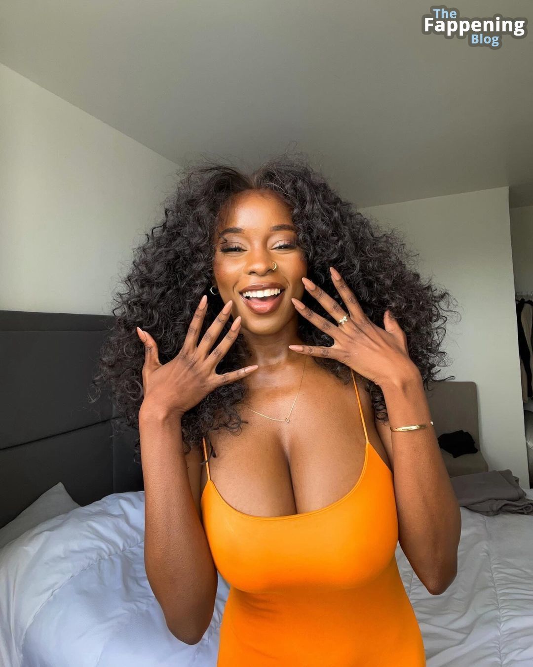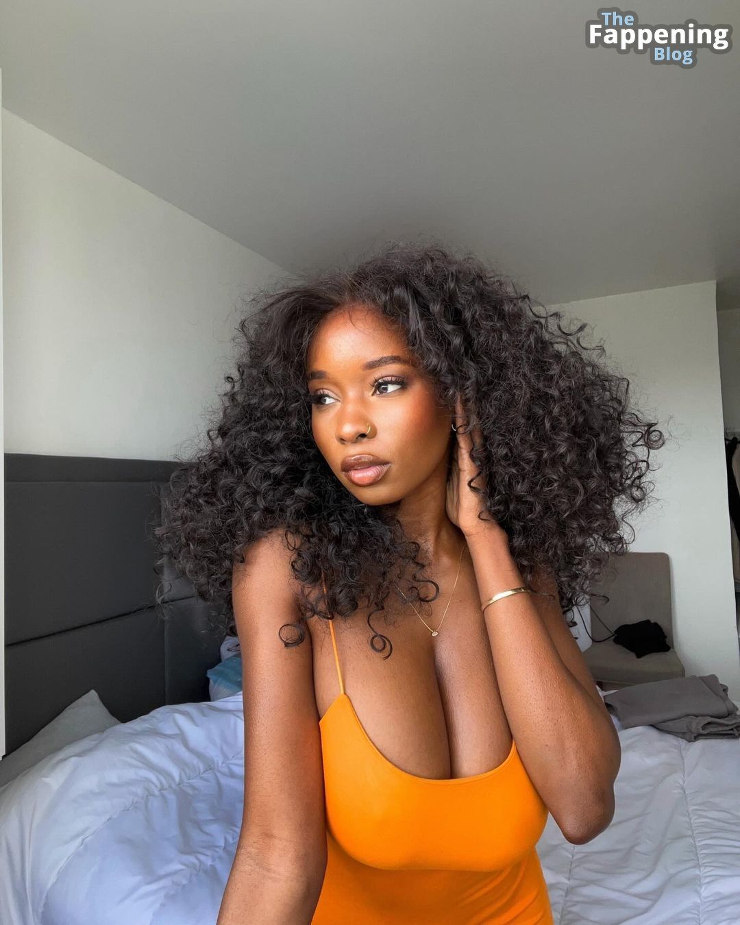 Prepare-se para se encantar com o charme sem sutiã da deslumbrante Princia G enquanto ela revela seu lado sensacional em um ensaio fotográfico de tirar o fôlego com um vestido laranja.