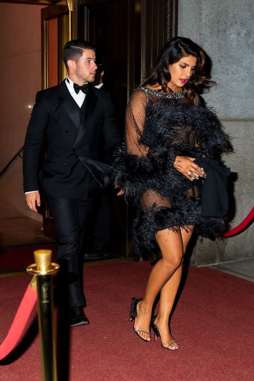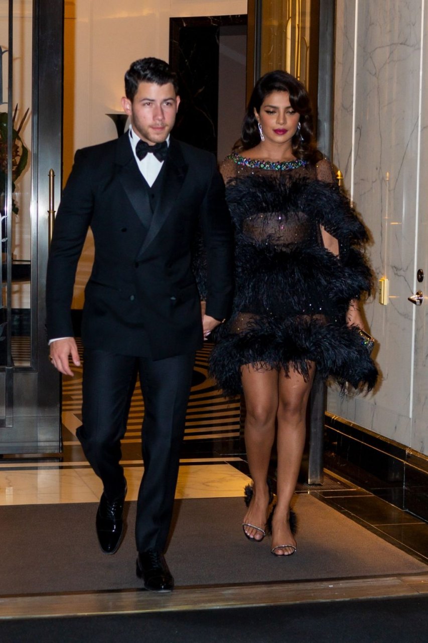 Joe e Kevin estavam vestidos com smokings pretos enquanto Priyanka e Danielle estavam fabulosas em vestidos de coquetel para a noite.