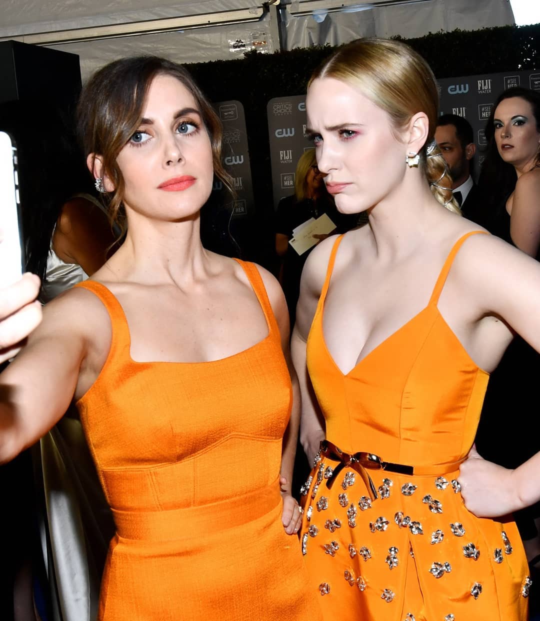 Atriz Rachel Brosnahan exibiu seu ótimo decote em um vestido vibrante no 25º Annual Critics’ Choice Awards realizado no Barker Hangar em Santa Monica, 12/01/2020.