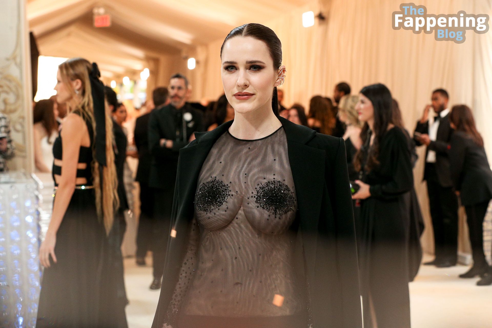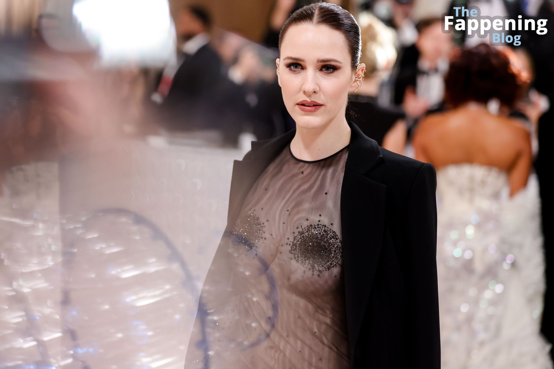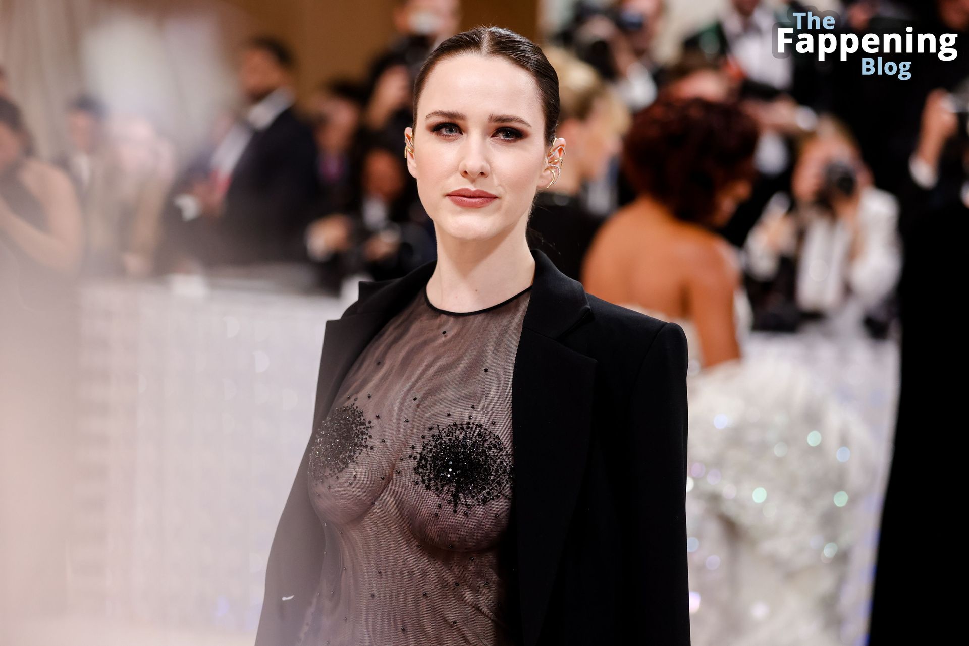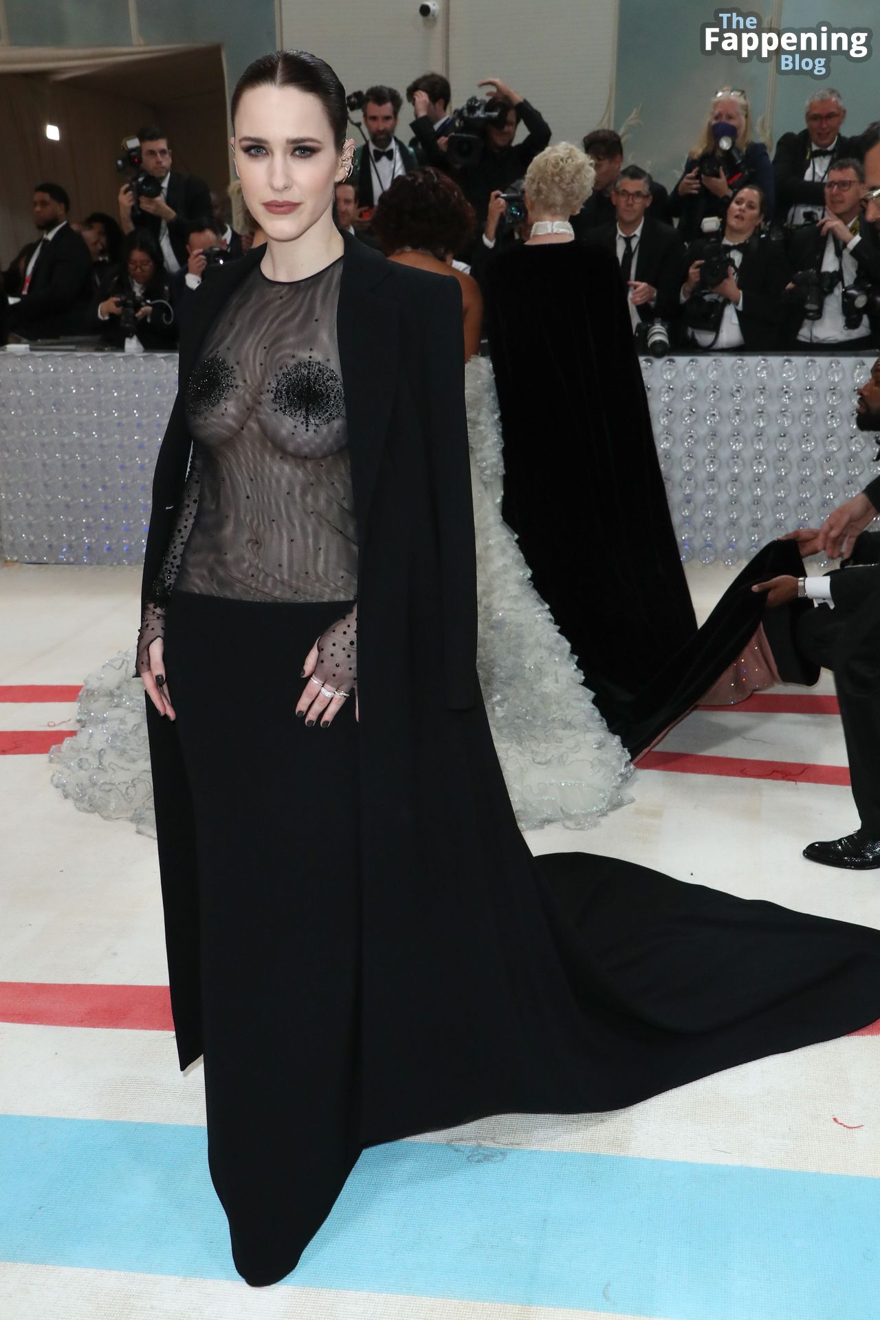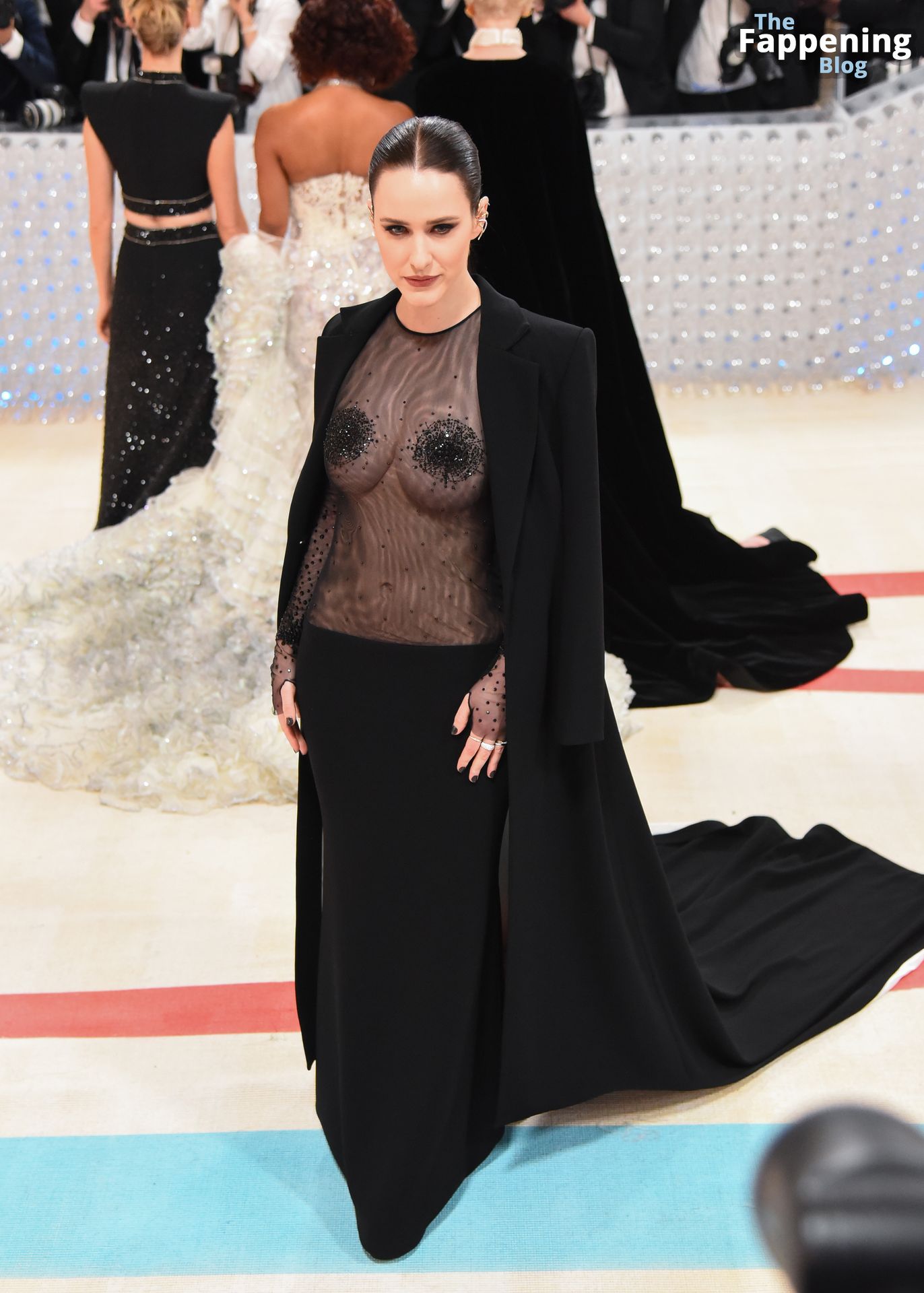 Rachel Brosnahan está deslumbrante em um vestido transparente sem sutiã enquanto participa do Baile Beneficente do Costume Institute 2023 celebrando Karl Lagerfeld: A Line of Beauty no Metropolitan Museum of Art em Nova York, 01/05/2023.