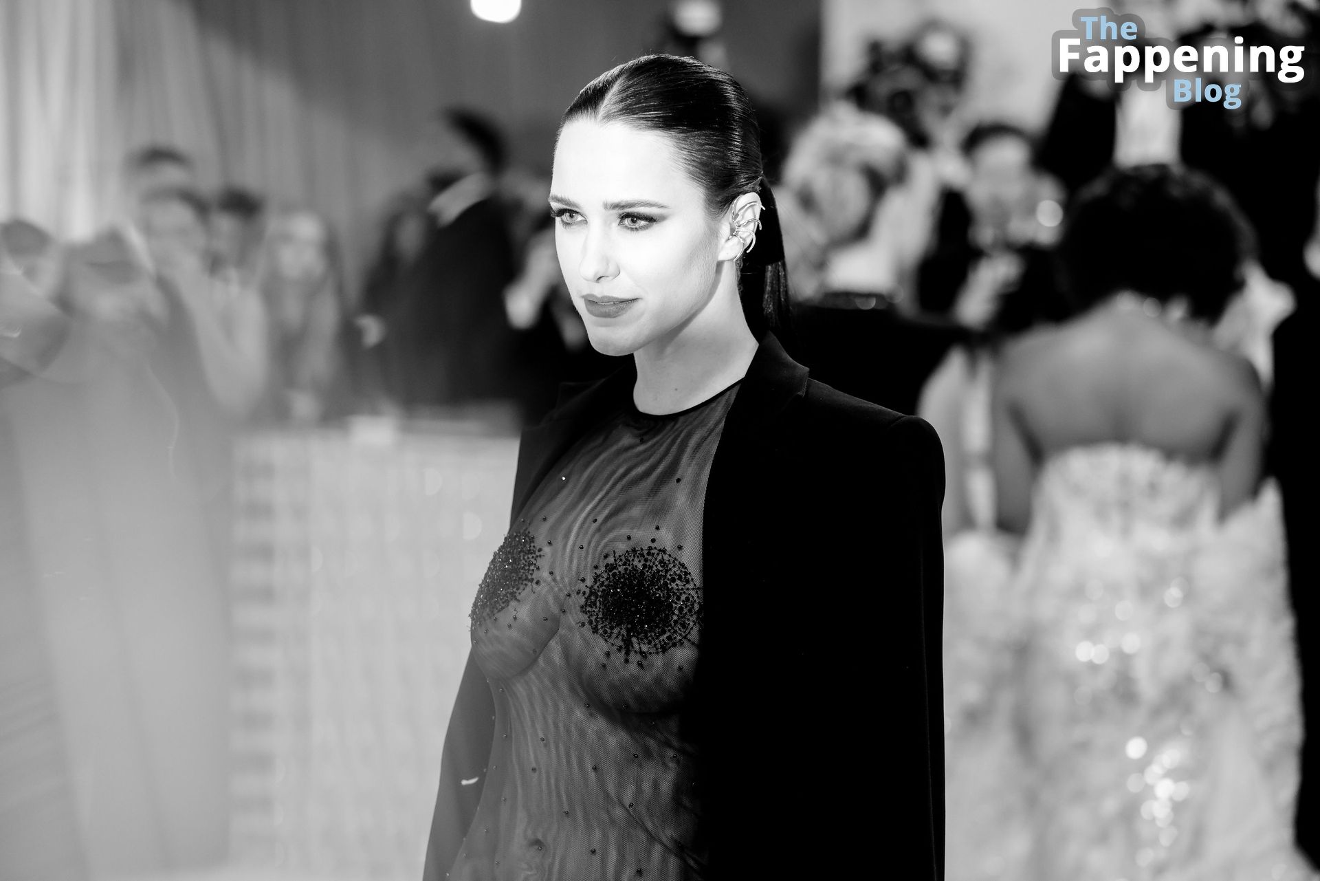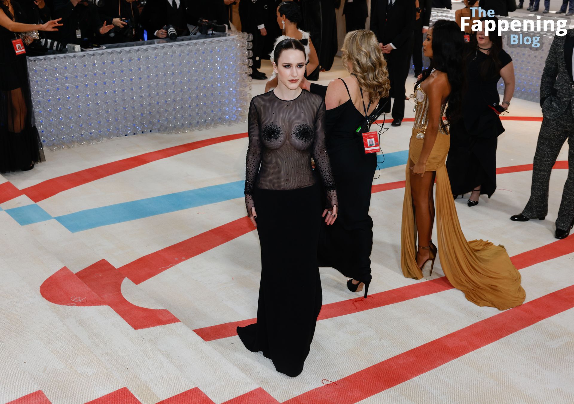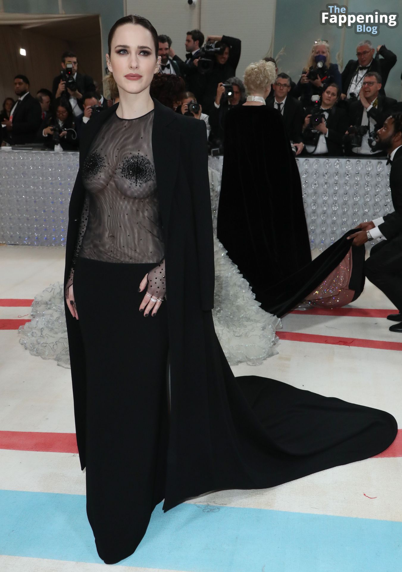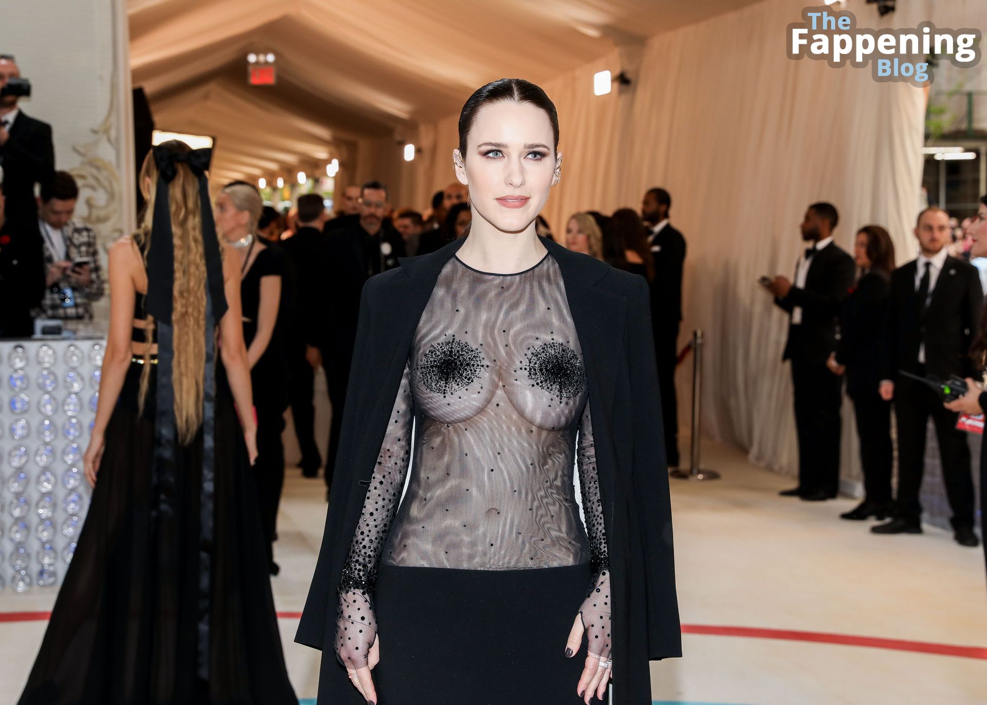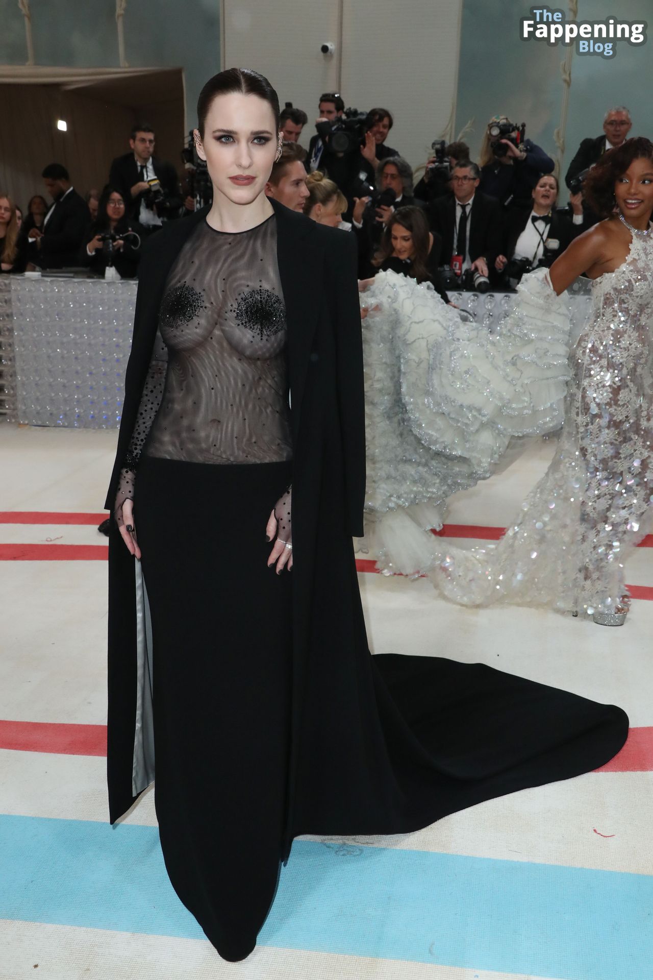 Rachel Brosnahan está deslumbrante em um vestido transparente sem sutiã enquanto participa do Baile Beneficente do Costume Institute 2023 celebrando Karl Lagerfeld: A Line of Beauty no Metropolitan Museum of Art em Nova York, 01/05/2023.