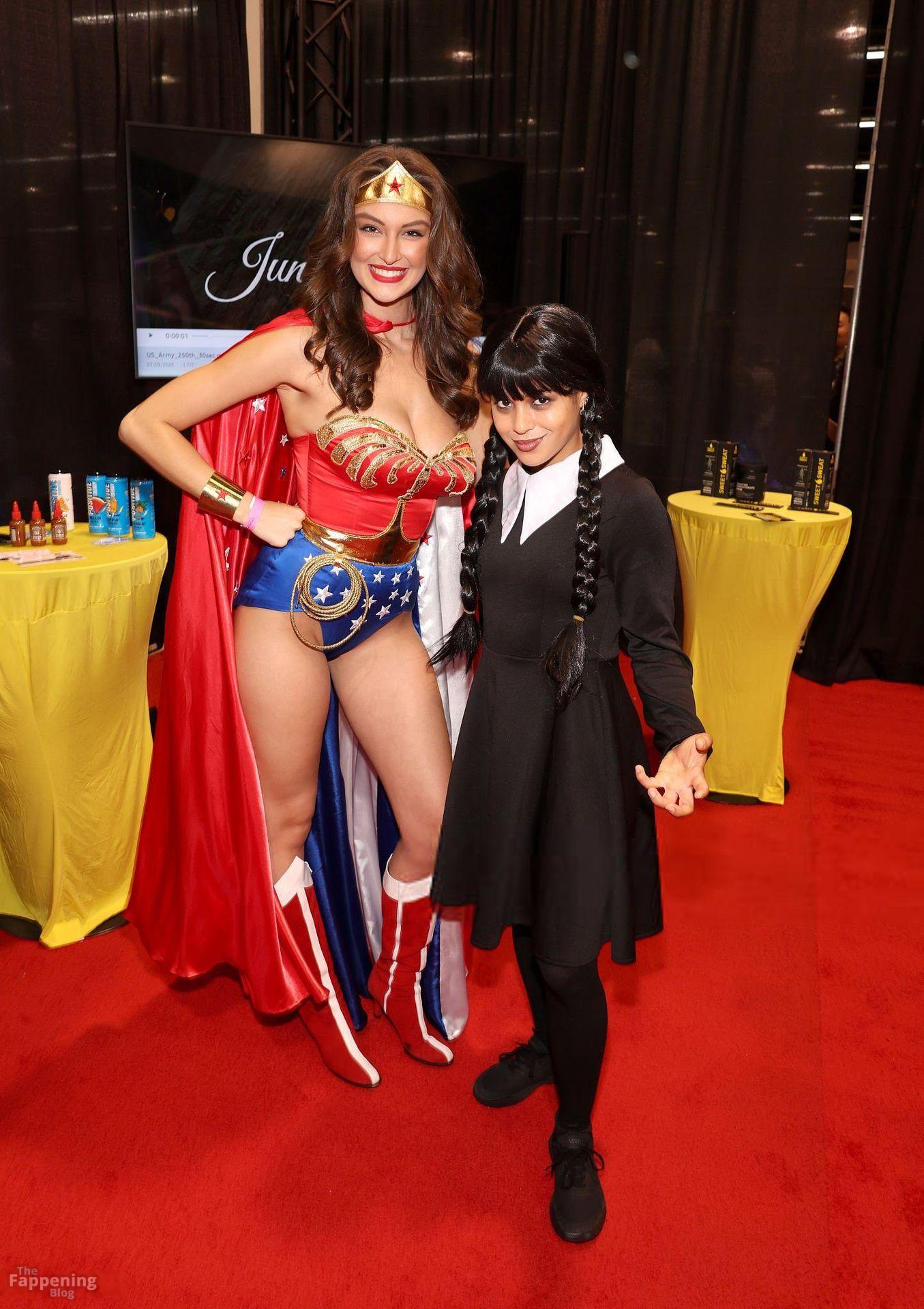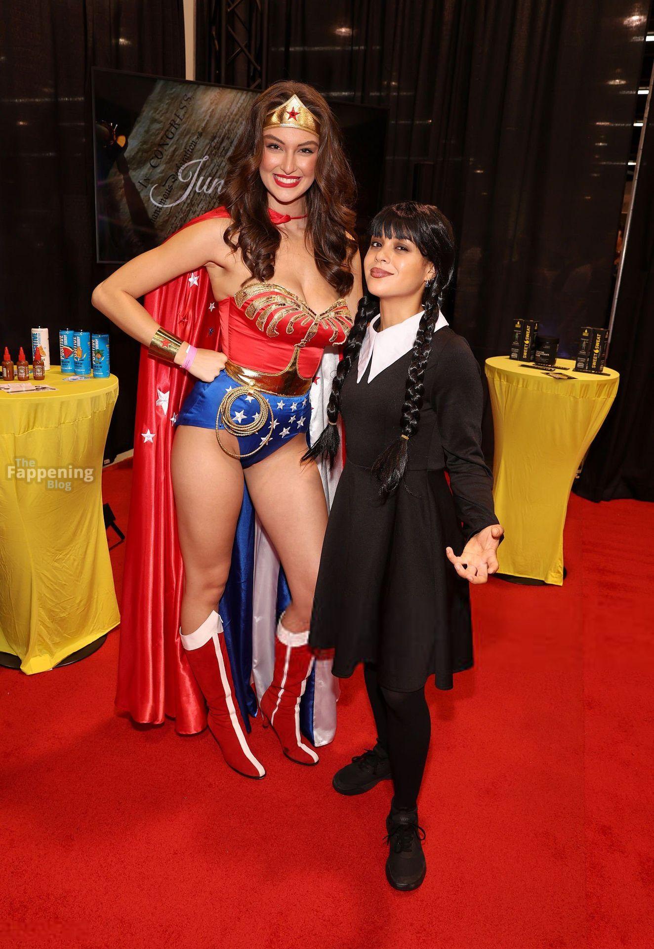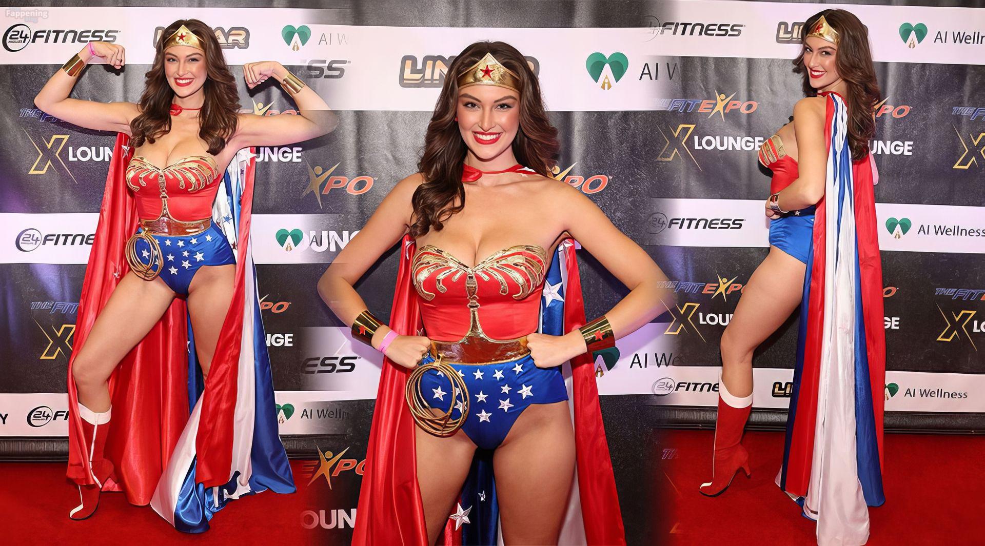 Rachel Pizzolato dominou o tapete vermelho com um cosplay apimentado de Mulher Maravilha no TheFitExpo, exibindo seus seios sensuais e pernas em forma.