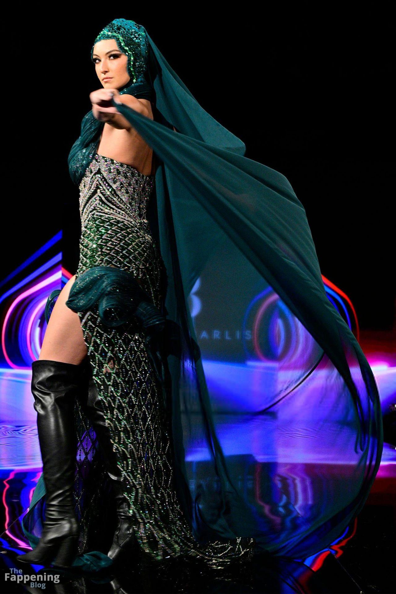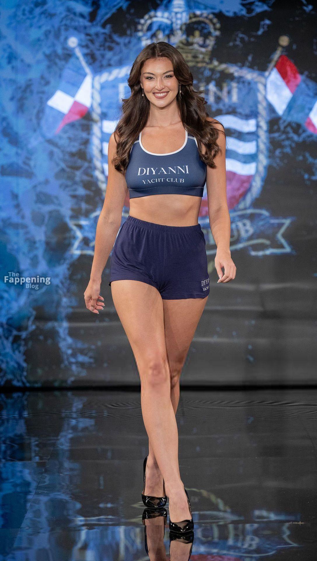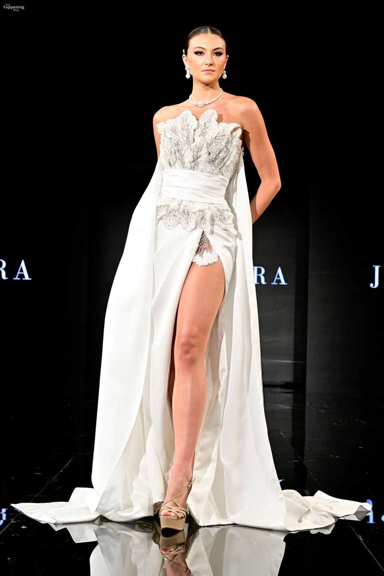 Rachel Pizzolato é fotografada na NYFW em seus vestidos transparentes, looks de lingerie e um vestido dourado totalmente chamativo e sem sutiã que mostrava seus seios sensuais na passarela.