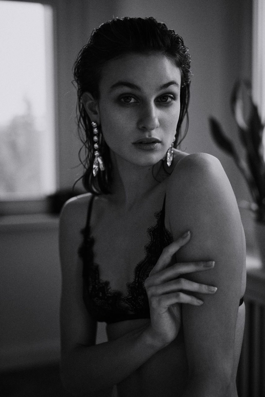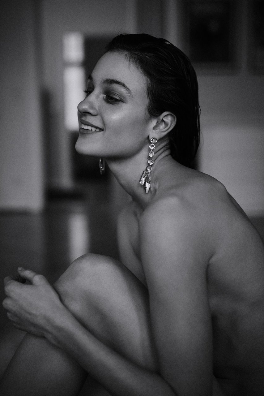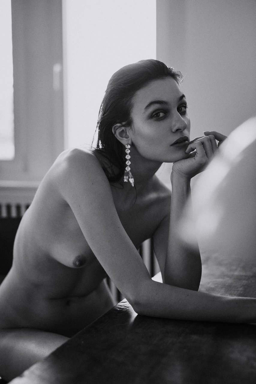 Jovem e deslumbrante modelo Rachel Samstag mostrou seu amor por diamantes e nudez em um novo ensaio fotográfico em preto e branco por Maximilian Motel (2019).