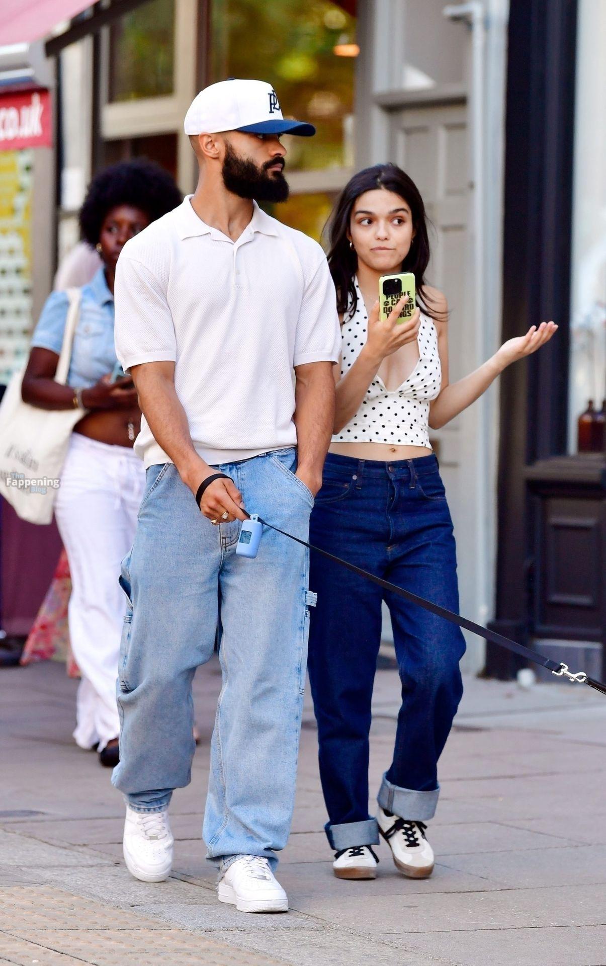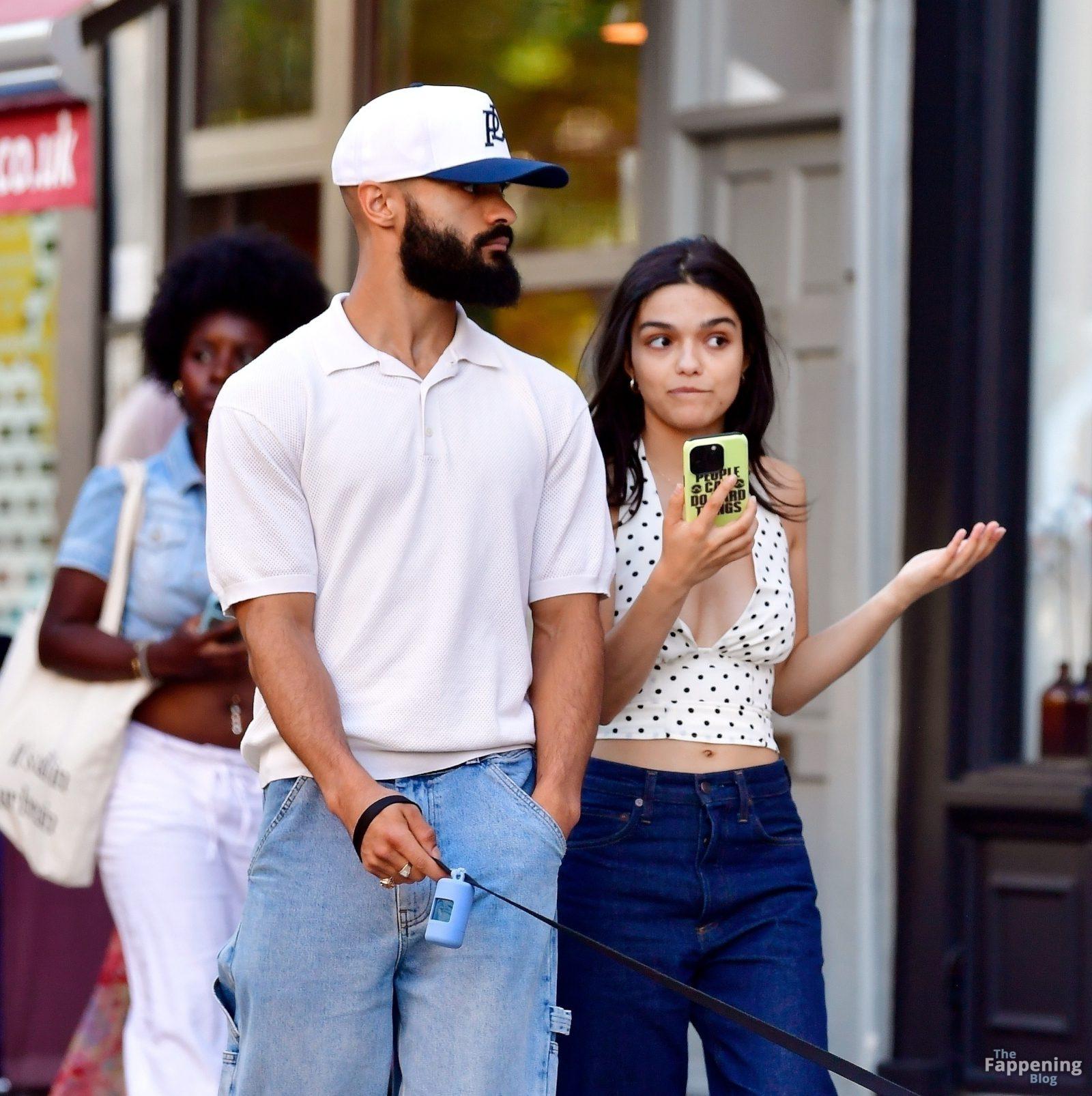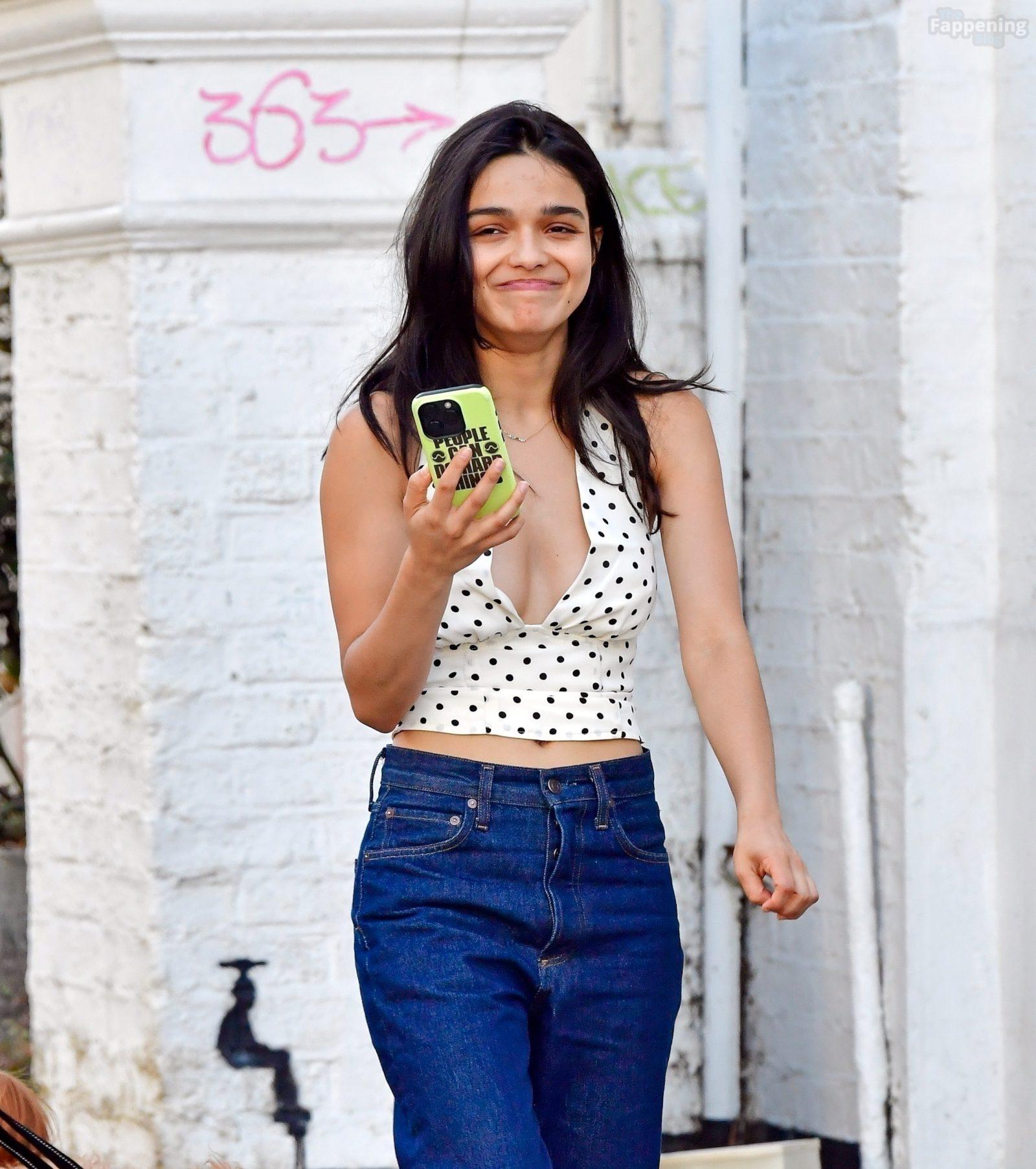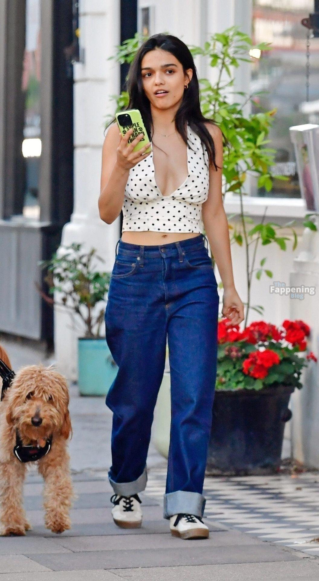 Rachel Zegler é vista em Londres, arrasando com um top de poás com um decote marcante e jeans justos.