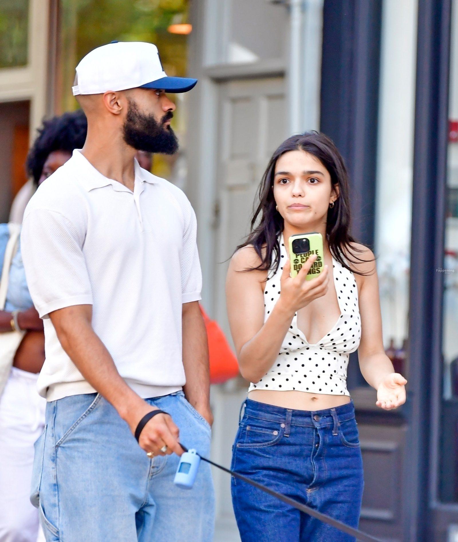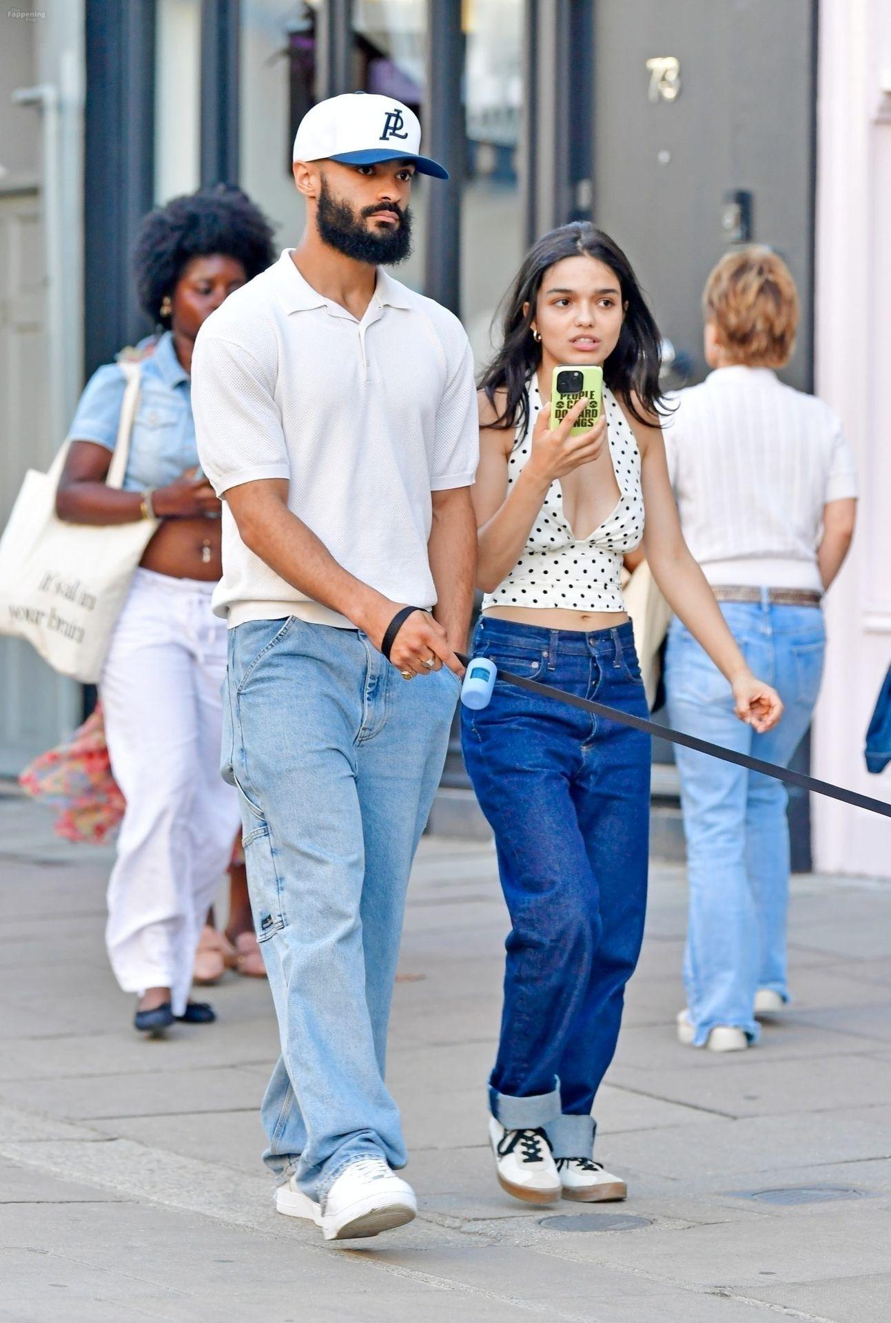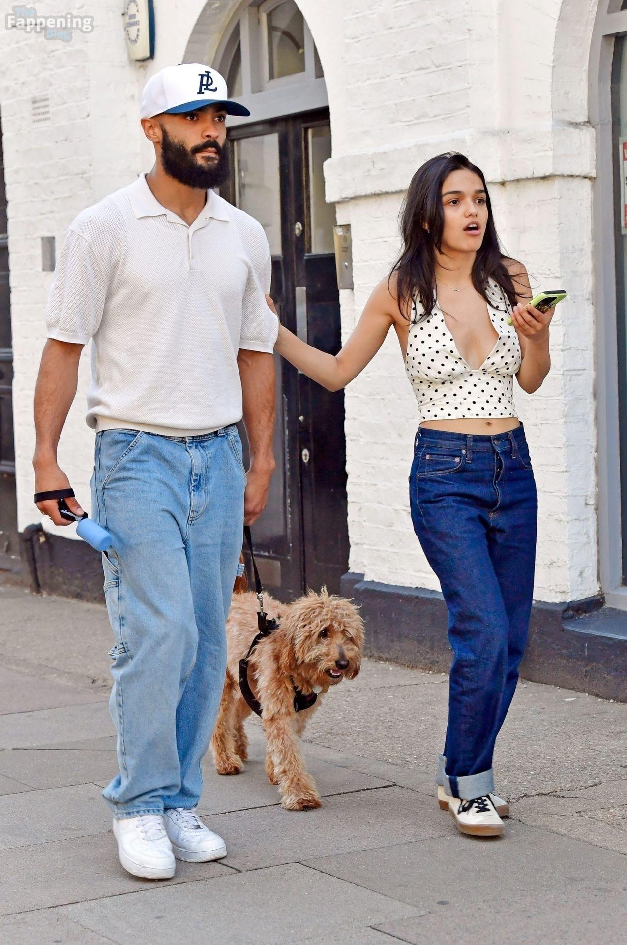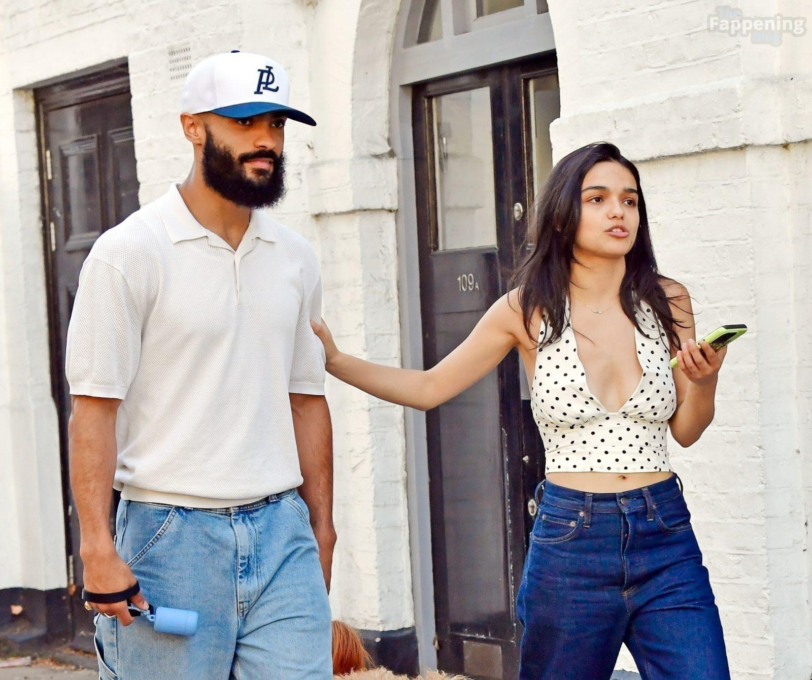 Rachel Zegler é vista em Londres, arrasando com um top de poás com um decote marcante e jeans justos.