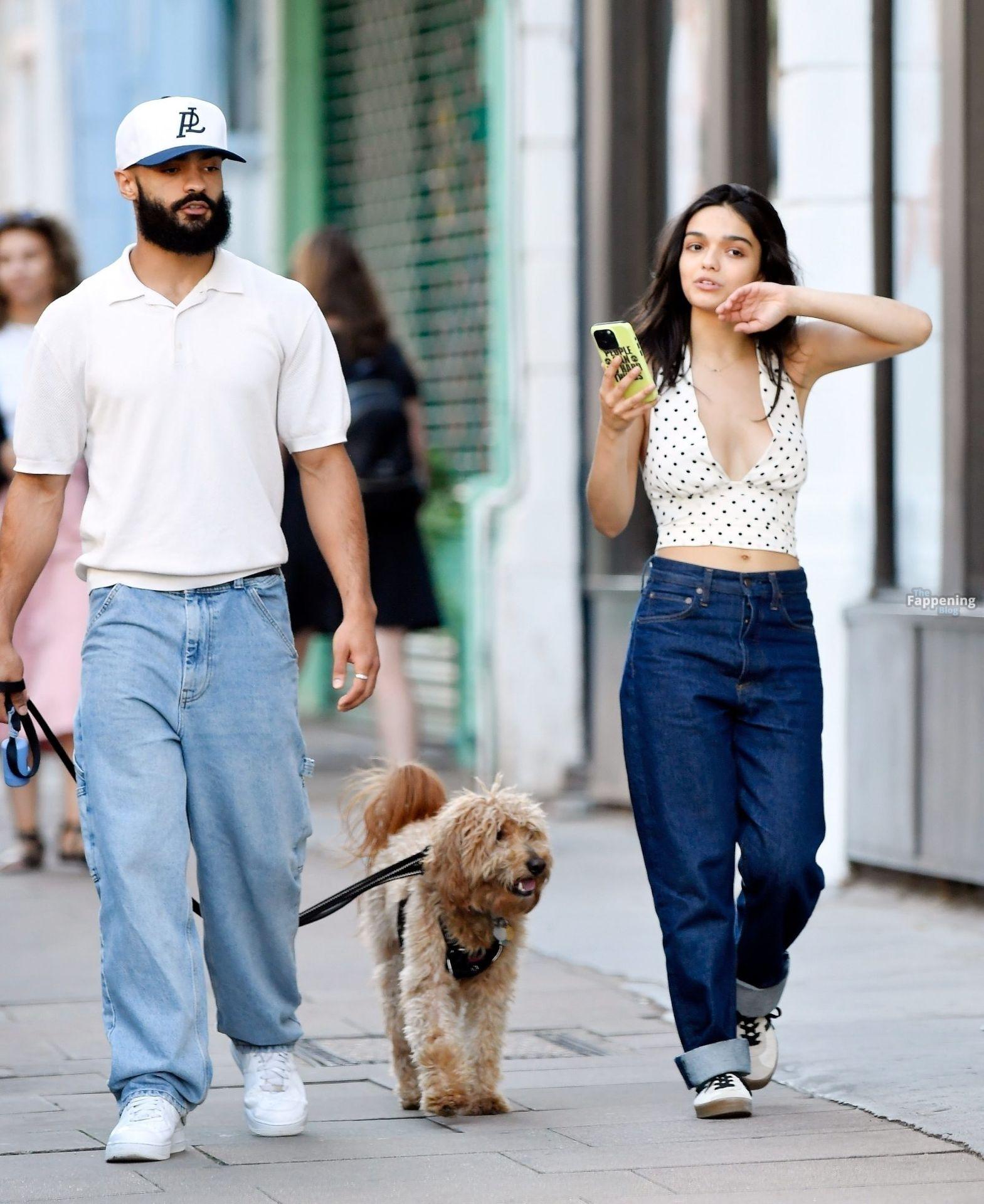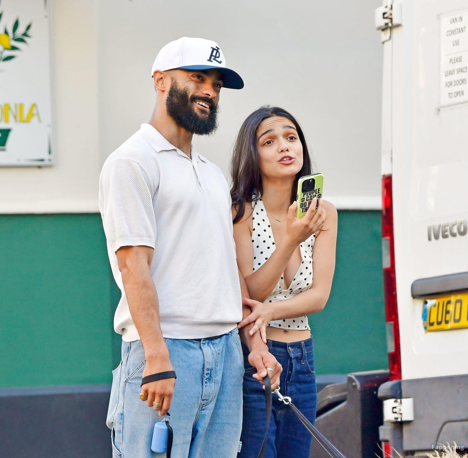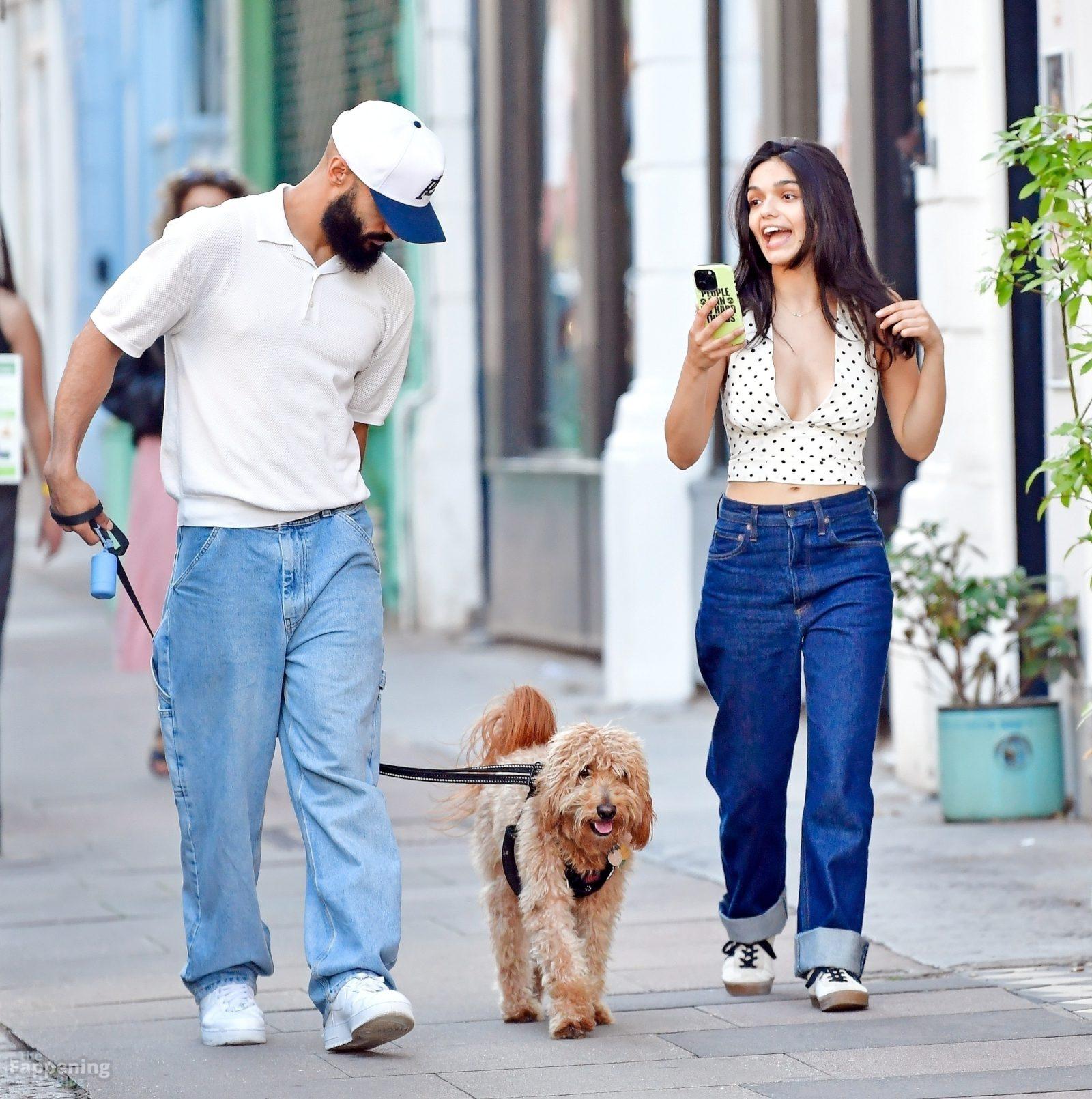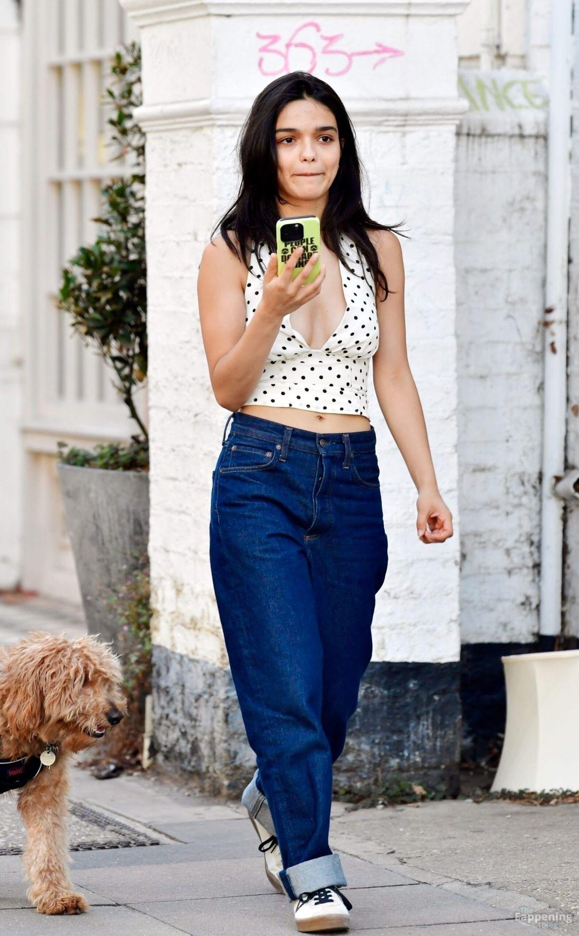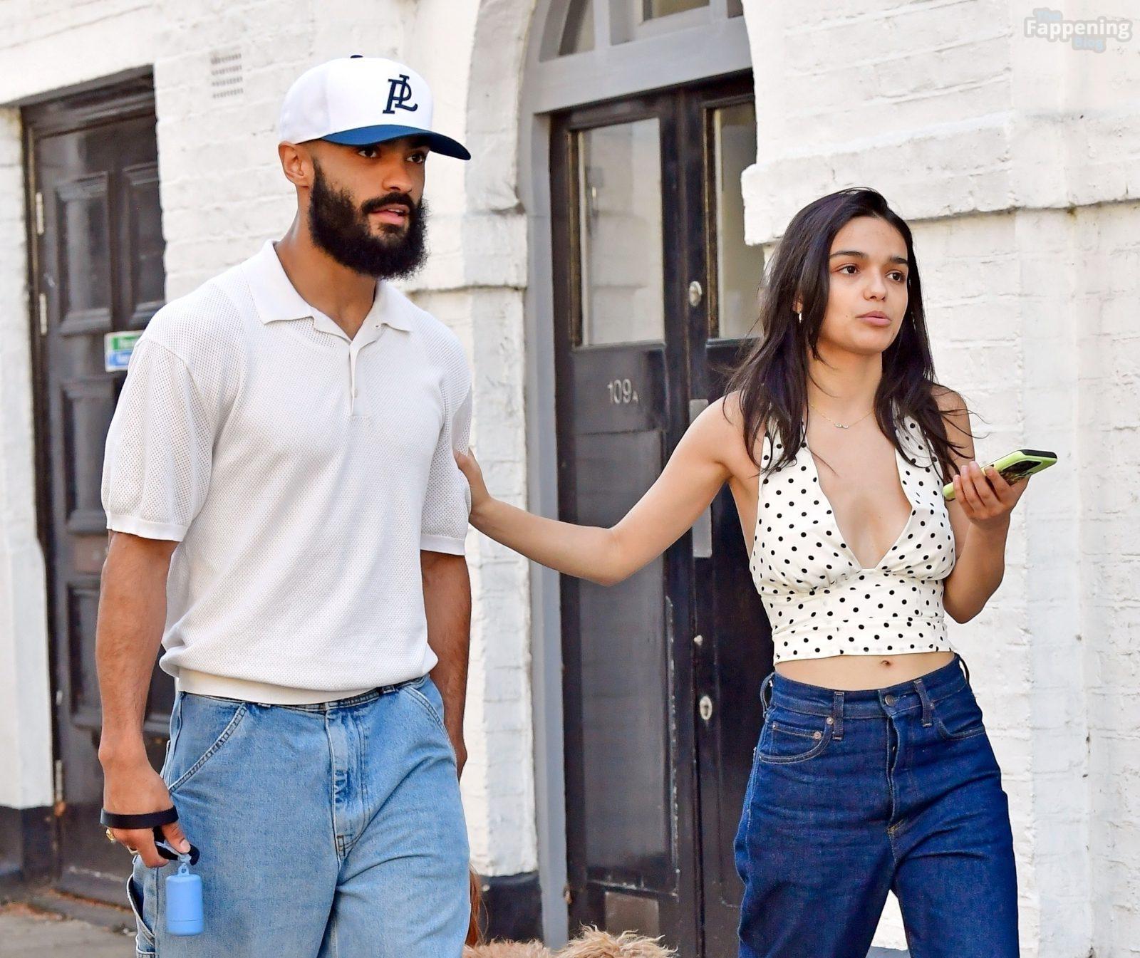 Rachel Zegler é vista em Londres, arrasando com um top de poás com um decote marcante e jeans justos.