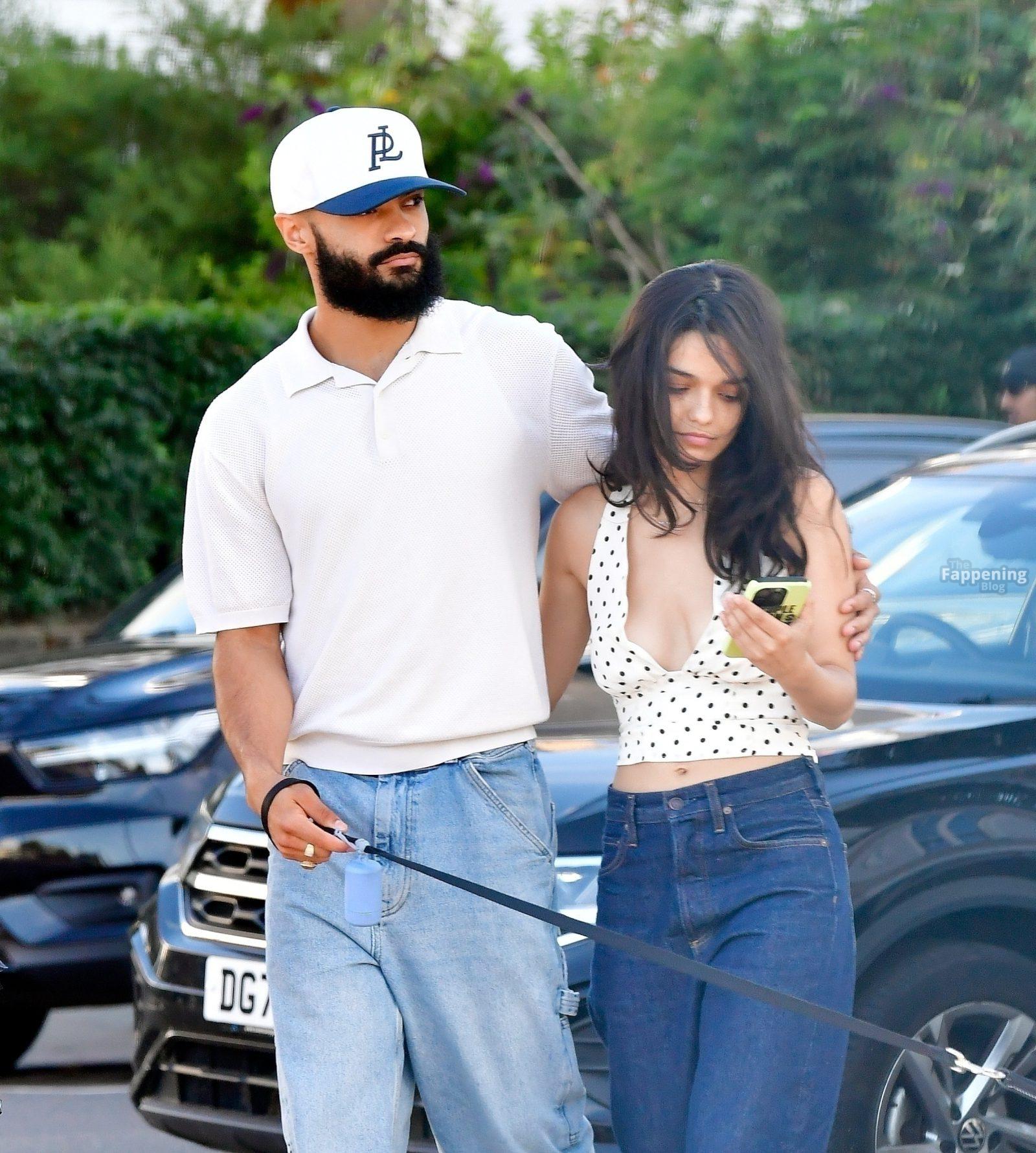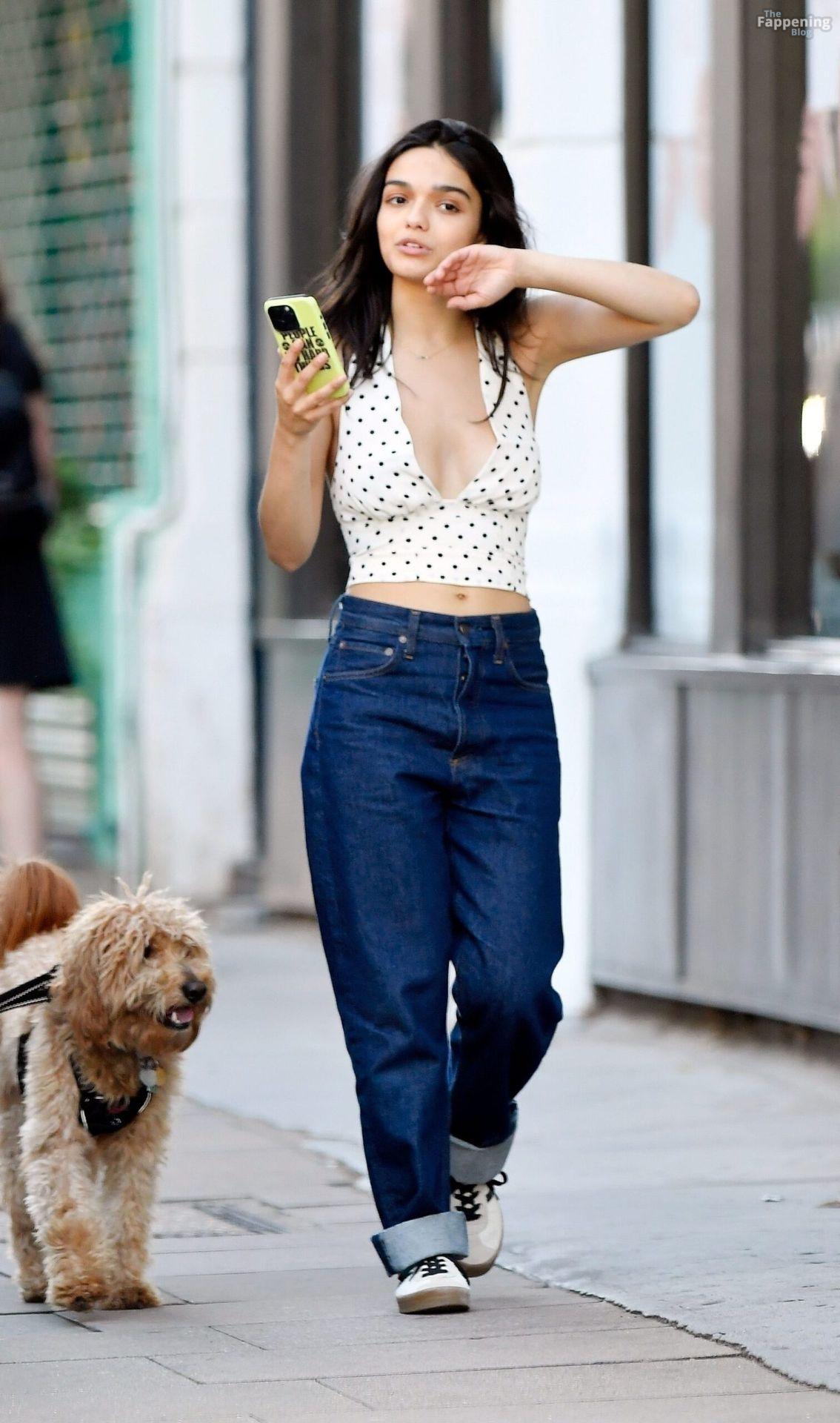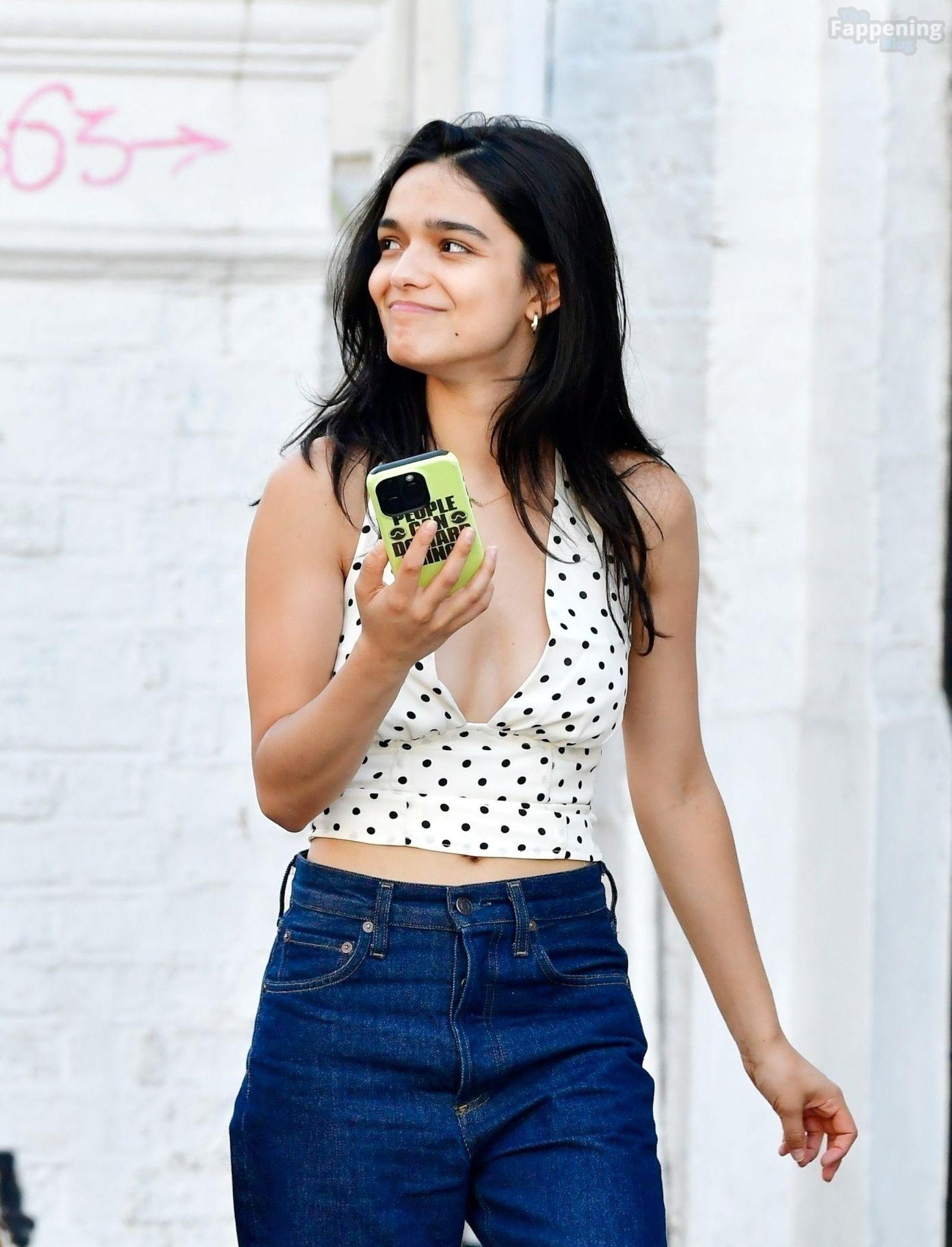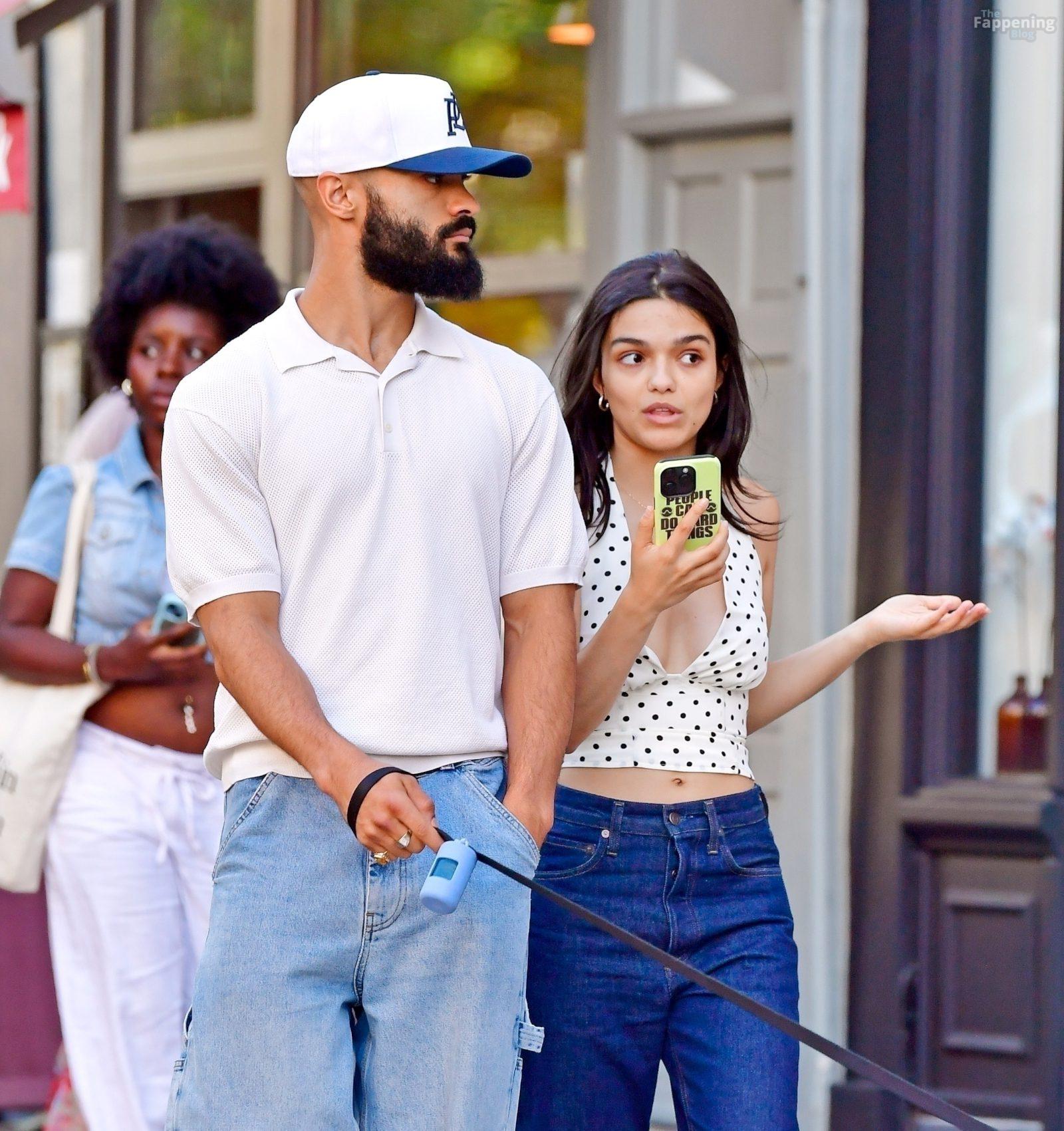 Rachel Zegler é vista em Londres, arrasando com um top de poás com um decote marcante e jeans justos.