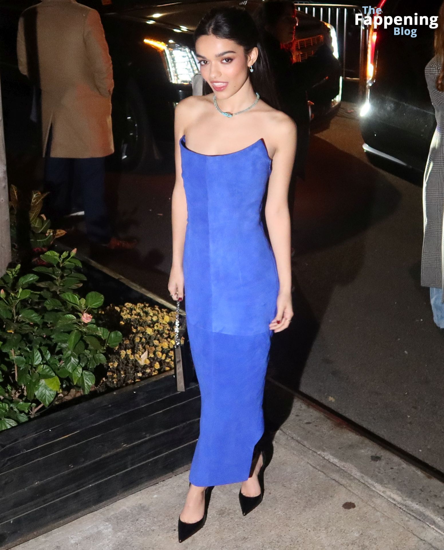 Prepare-se para ficar maravilhado com a elegância impressionante de Rachel Zegler enquanto ela arrasa com um vestido azul justo no evento.