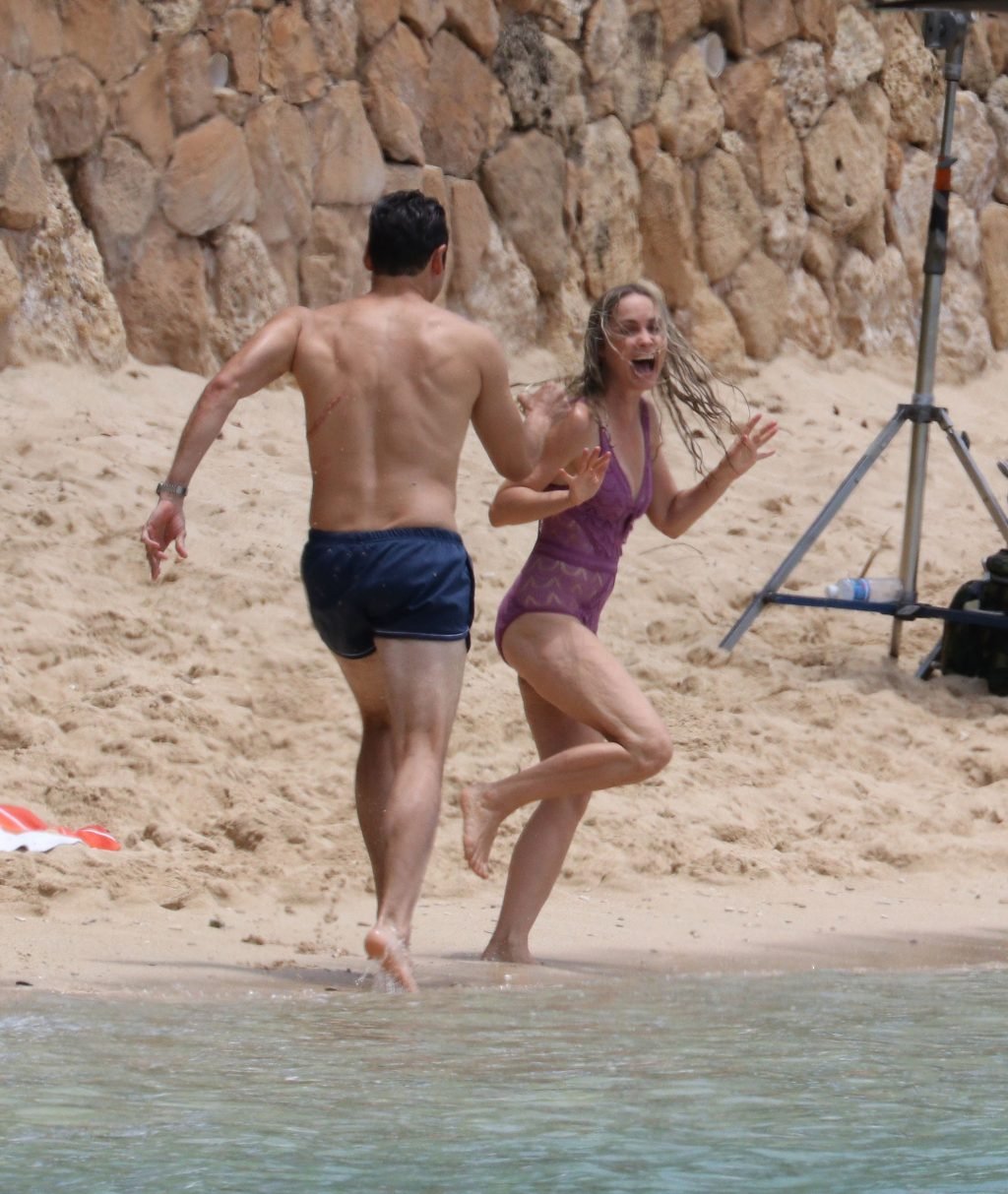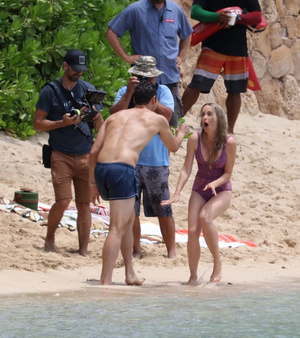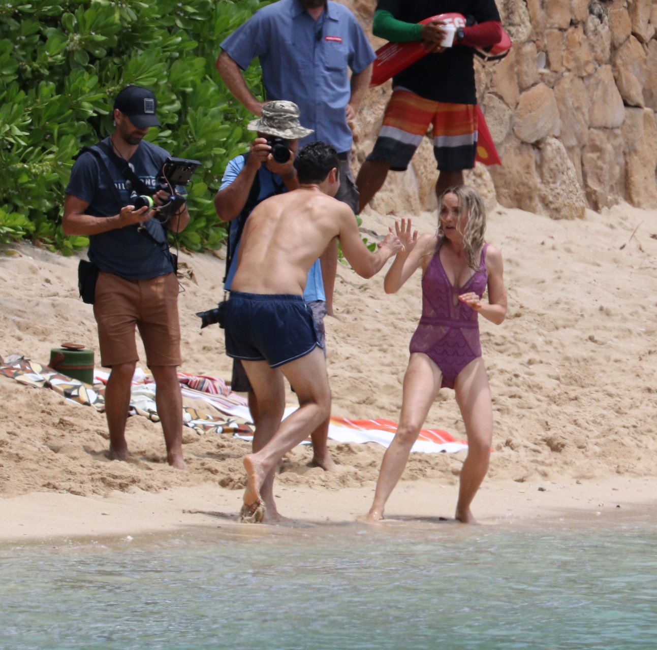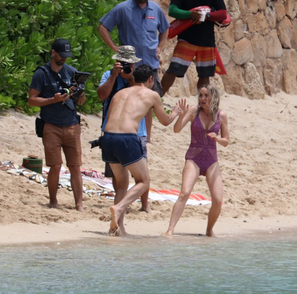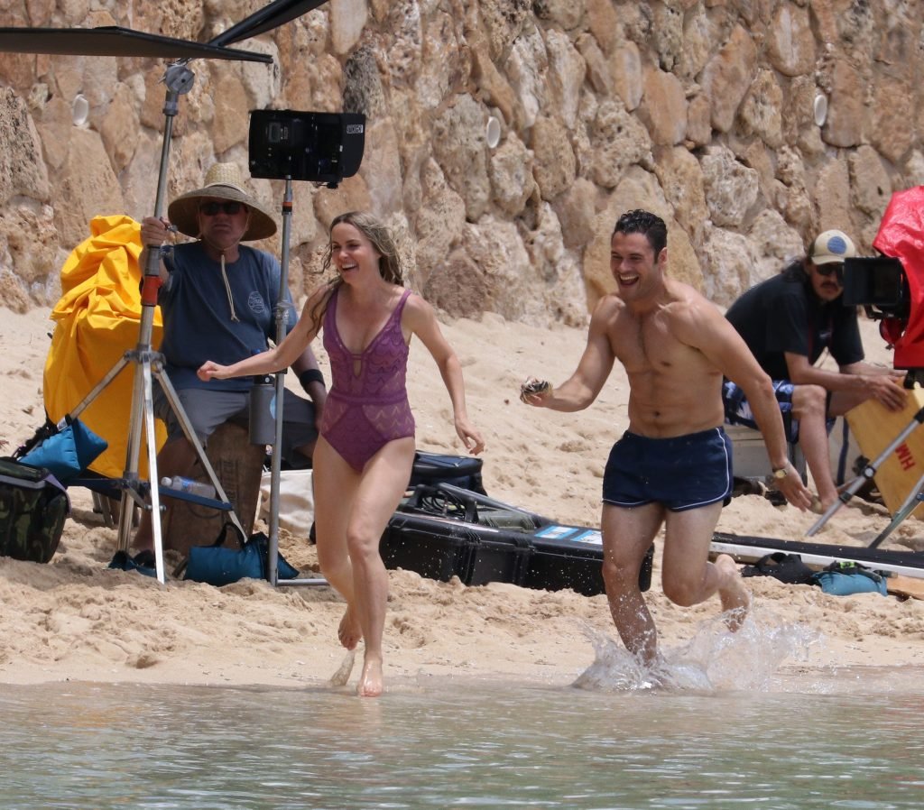 Radha Mitchell e Adan Canto vão à praia em Honolulu para filmar as cenas finais de “2 Hearts.” A atriz australiana de 44 anos, vestindo biquíni, e seu co-estrela de 36 anos, sem camisa, foram fotografados brincando alegremente no oceano.
