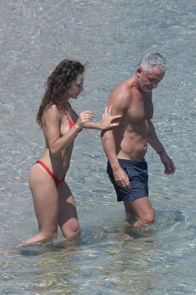 Raffaella Fico e Alessandro Moggi foram vistos na praia Lia em Mykonos, Grécia, 22/06/2018. O casal compartilhou seu amor no mar, beijando-se e abraçando-se. A italiana de 30 anos, showgirl, cantora e modelo, exibiu um corpo impressionante de biquíni.