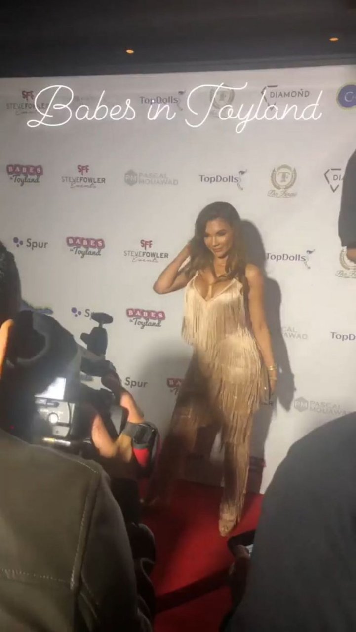 Modelo de glamour e atriz Raven Lexy exibe seu decote na festa em Los Angeles, 27/03/2019.