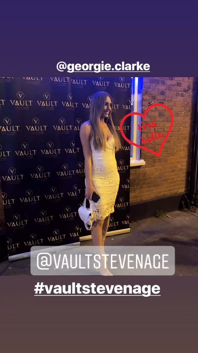Reality TV stars Reanne Brown and Georgie Clarke were pictured in white dresses at The Vault Bar and Club Stevenage, 03/30/2019.