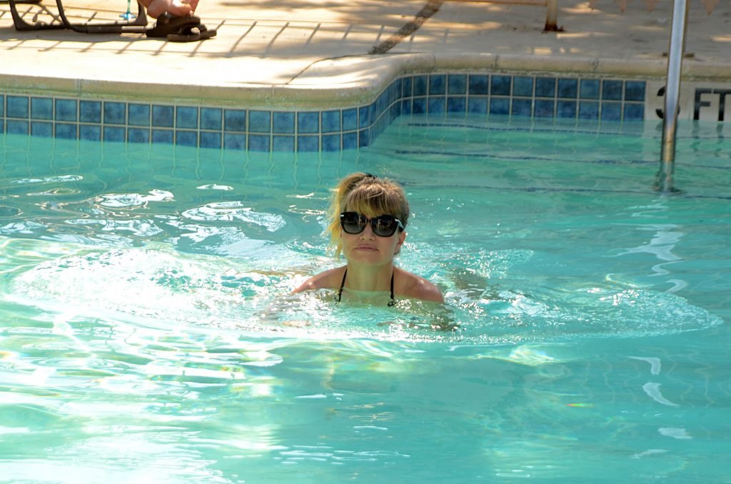 Nos tempos de showgirls e striptease, eu teria transado com ela. Agora? De jeito nenhum! Quando você chega aos 40, deveria usar mais roupas, não menos — especialmente em uma piscina pública. Provavelmente tem garotos jovens por lá!