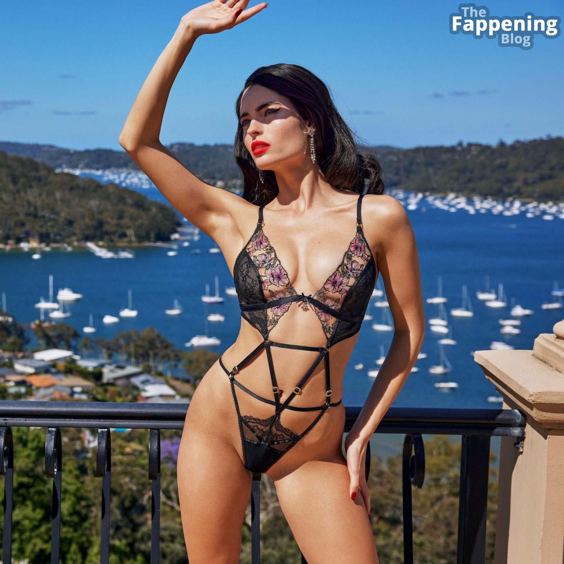 Beleza australiana Renee Merden posa sozinha e com outras modelos em lingerie promovendo a nova coleção Honey Birdette 2023.