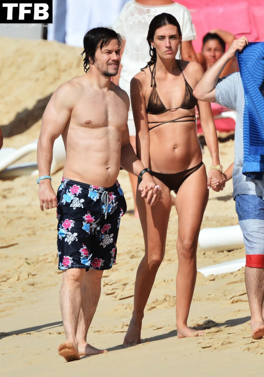 Model Rhea Durham mostra seus seios nus enquanto está de férias com o marido na praia em Barbados (2015).
