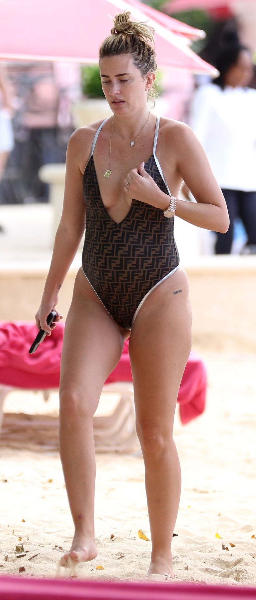 A modelo americana Rhea Durham (41) foi vista usando um maiô de uma peça na praia durante as férias em Barbados, 29/12/2019.