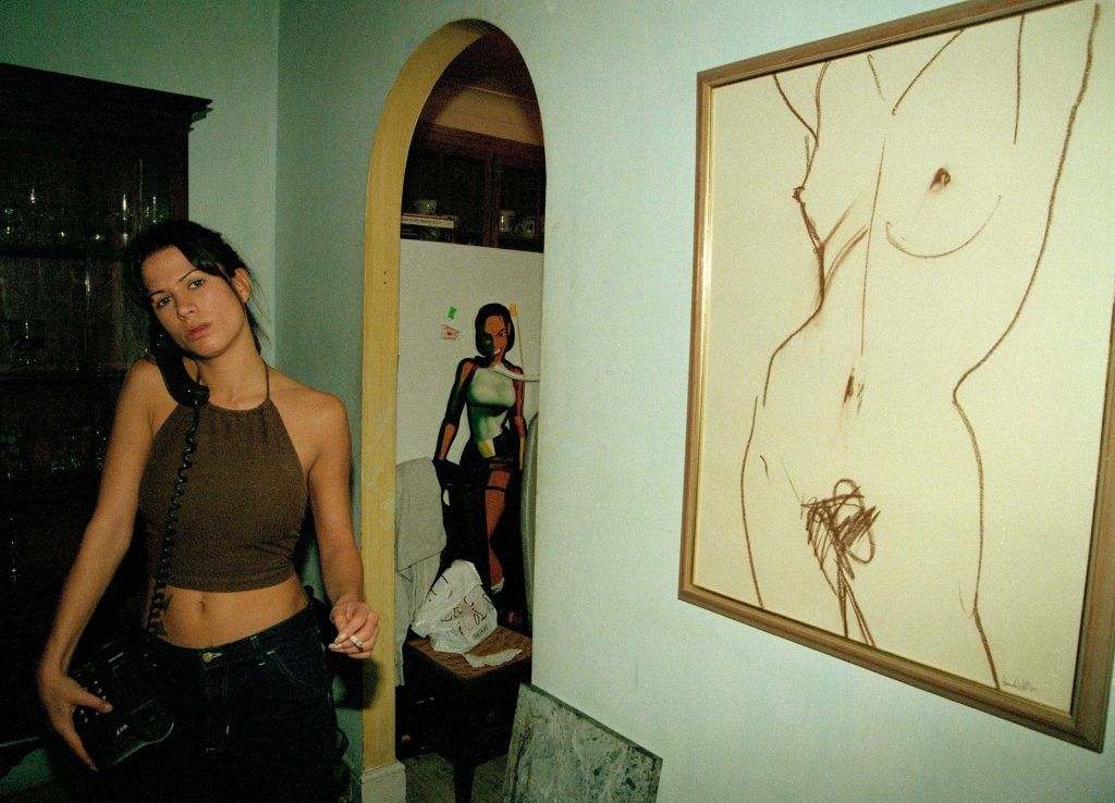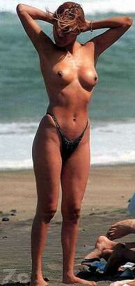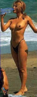 A garota sem camisa que bebe água na praia é Ivone Reyes (fotos 15-19)