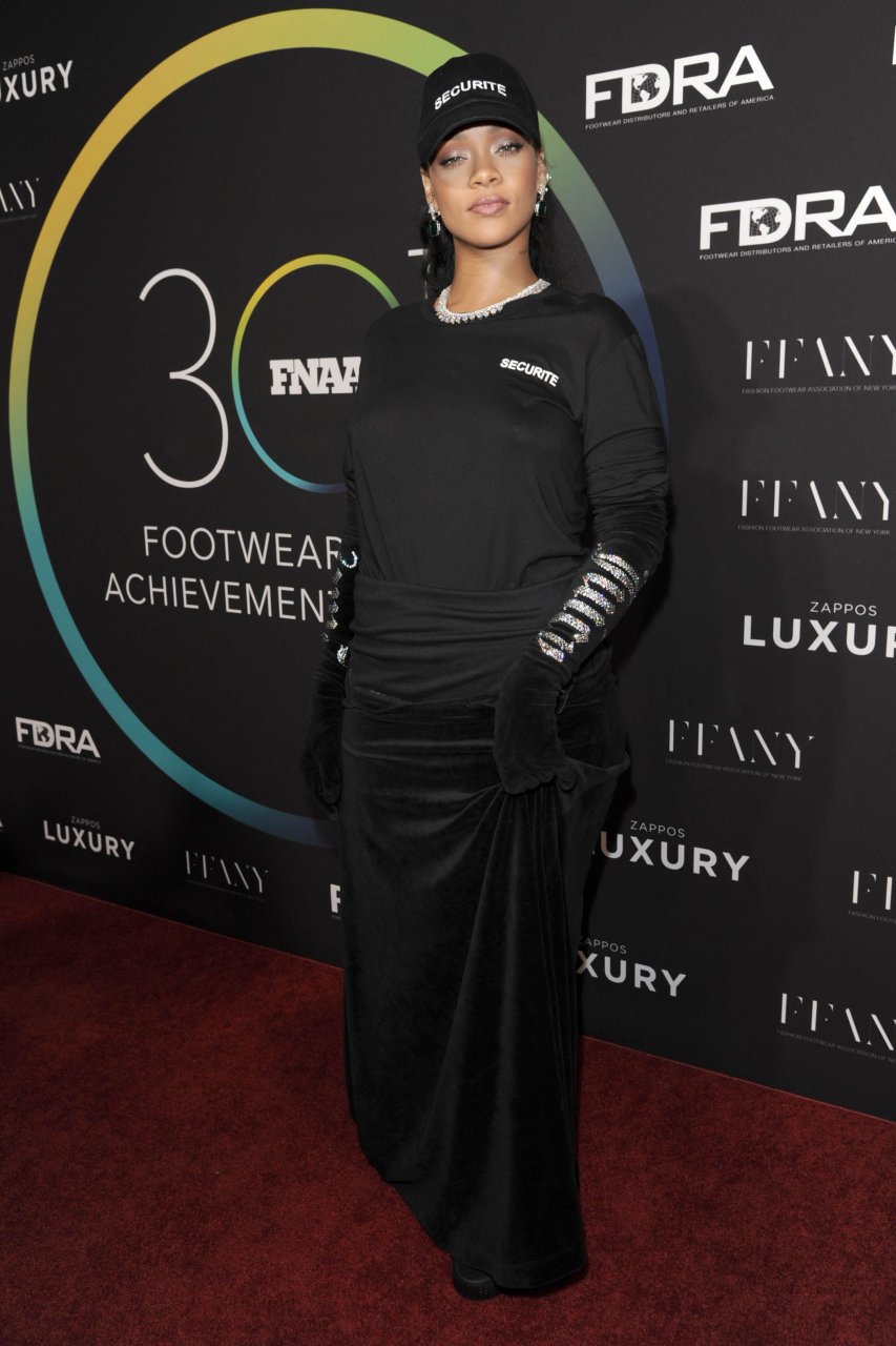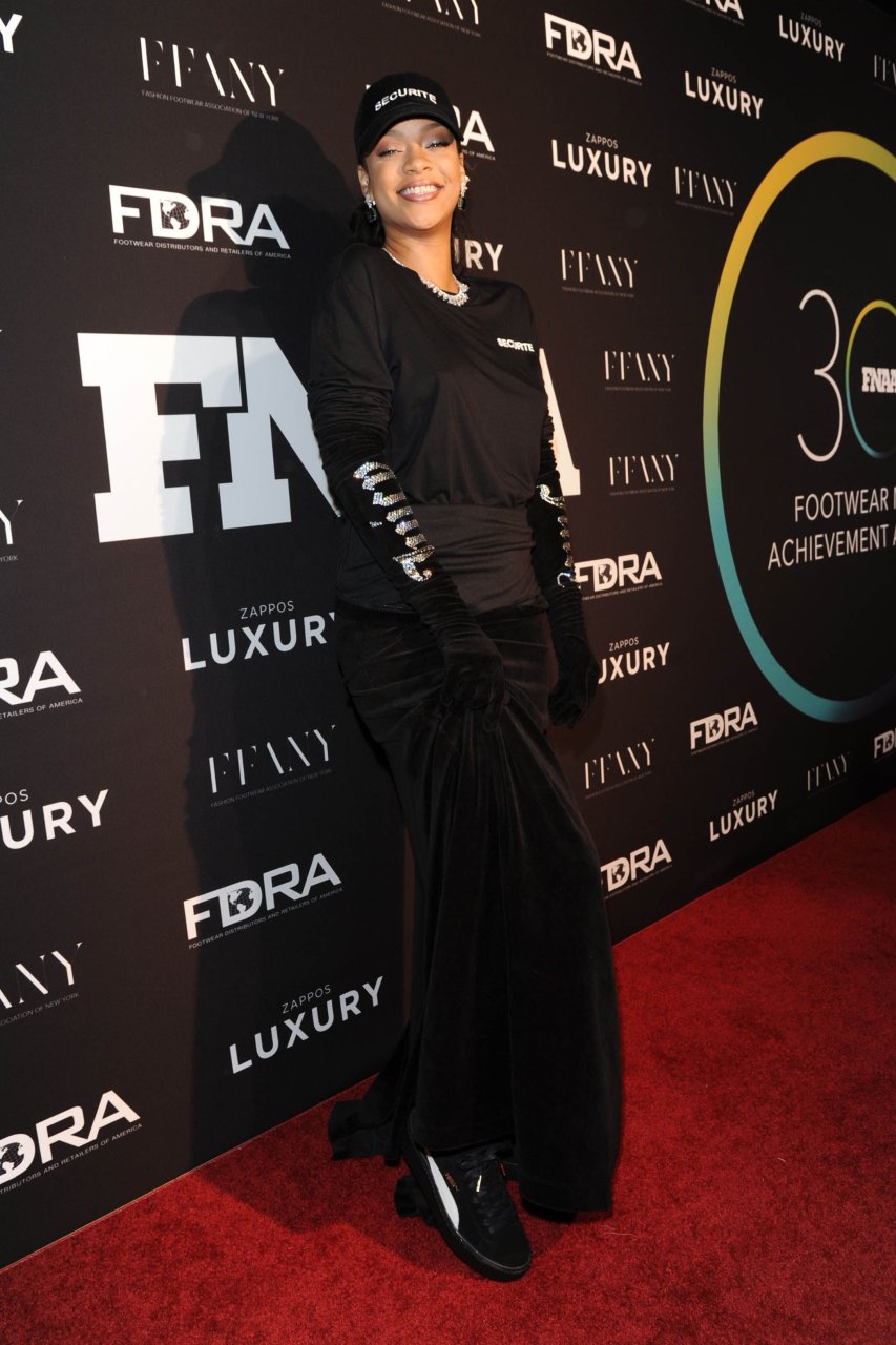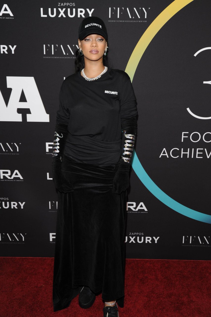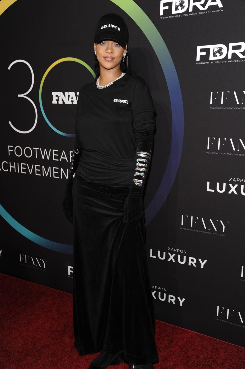 Rihanna se veste como segurança enquanto participa do 30º FN Achievement Awards em Nova York, 29/11/2016. Robyn Rihanna Fenty é uma cantora e compositora barbadiana. Idade: 28 (20 de fevereiro de 1988).