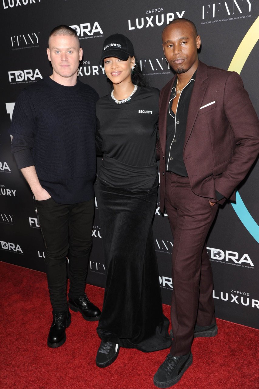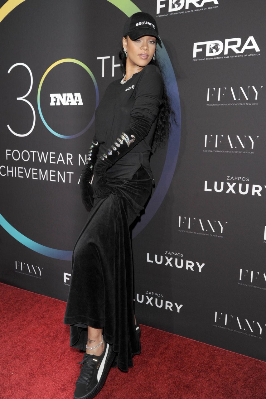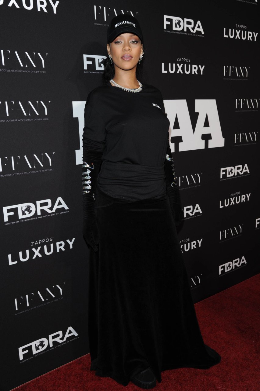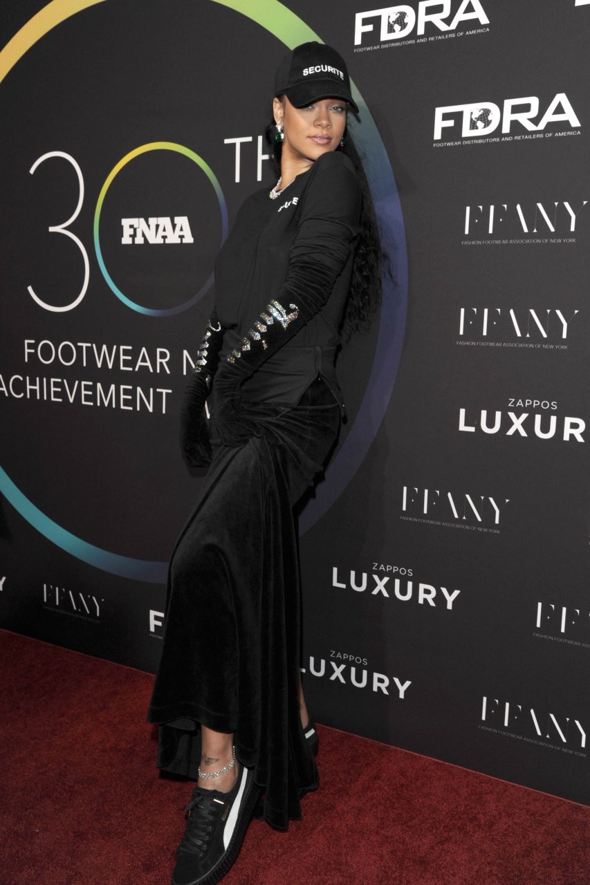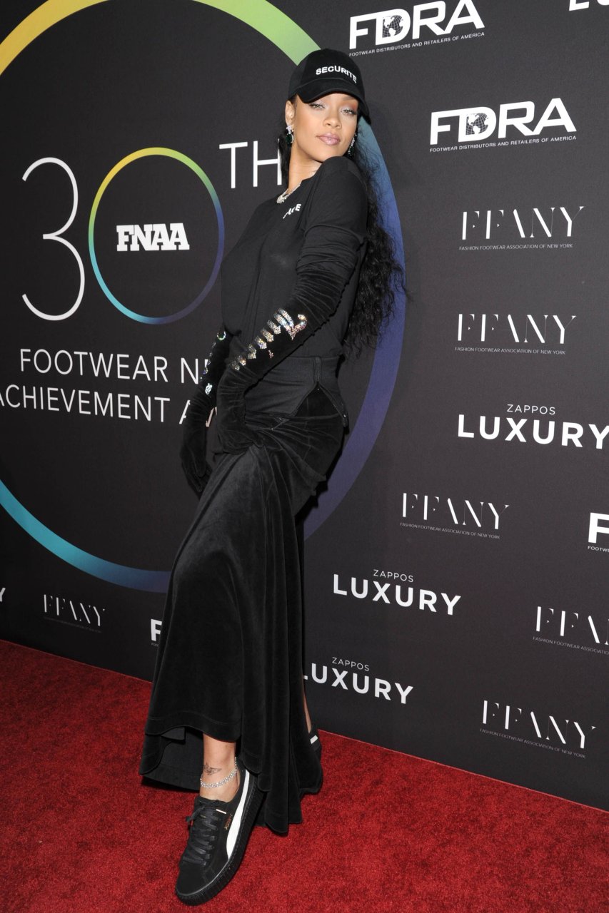 Rihanna se veste como segurança enquanto participa do 30º FN Achievement Awards em Nova York, 29/11/2016. Robyn Rihanna Fenty é uma cantora e compositora barbadiana. Idade: 28 (20 de fevereiro de 1988).