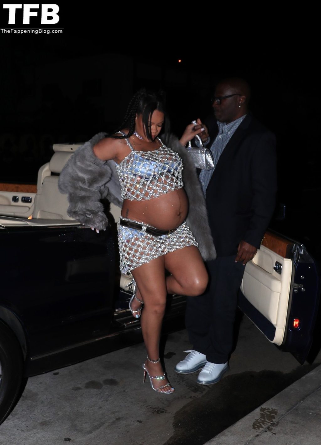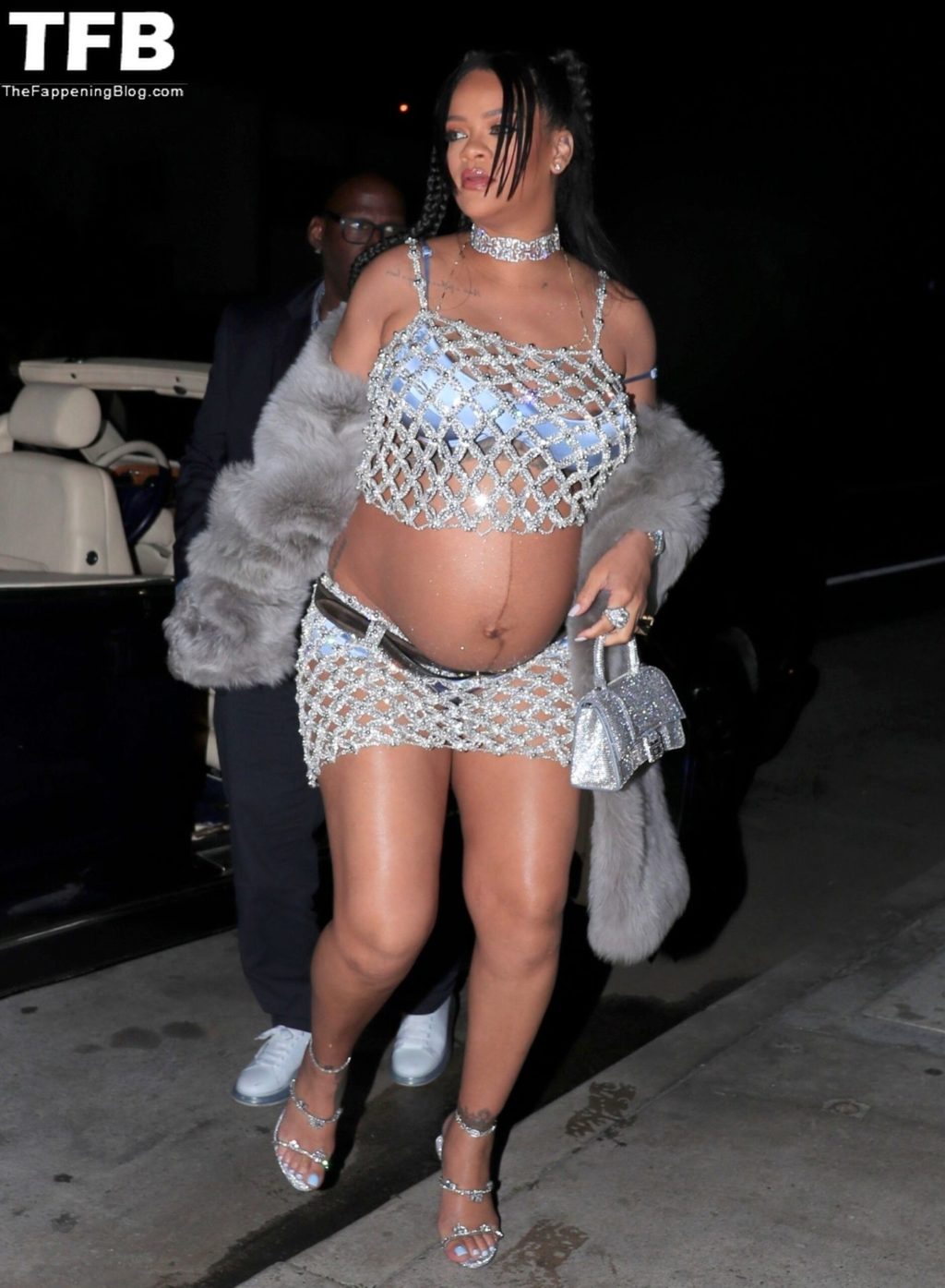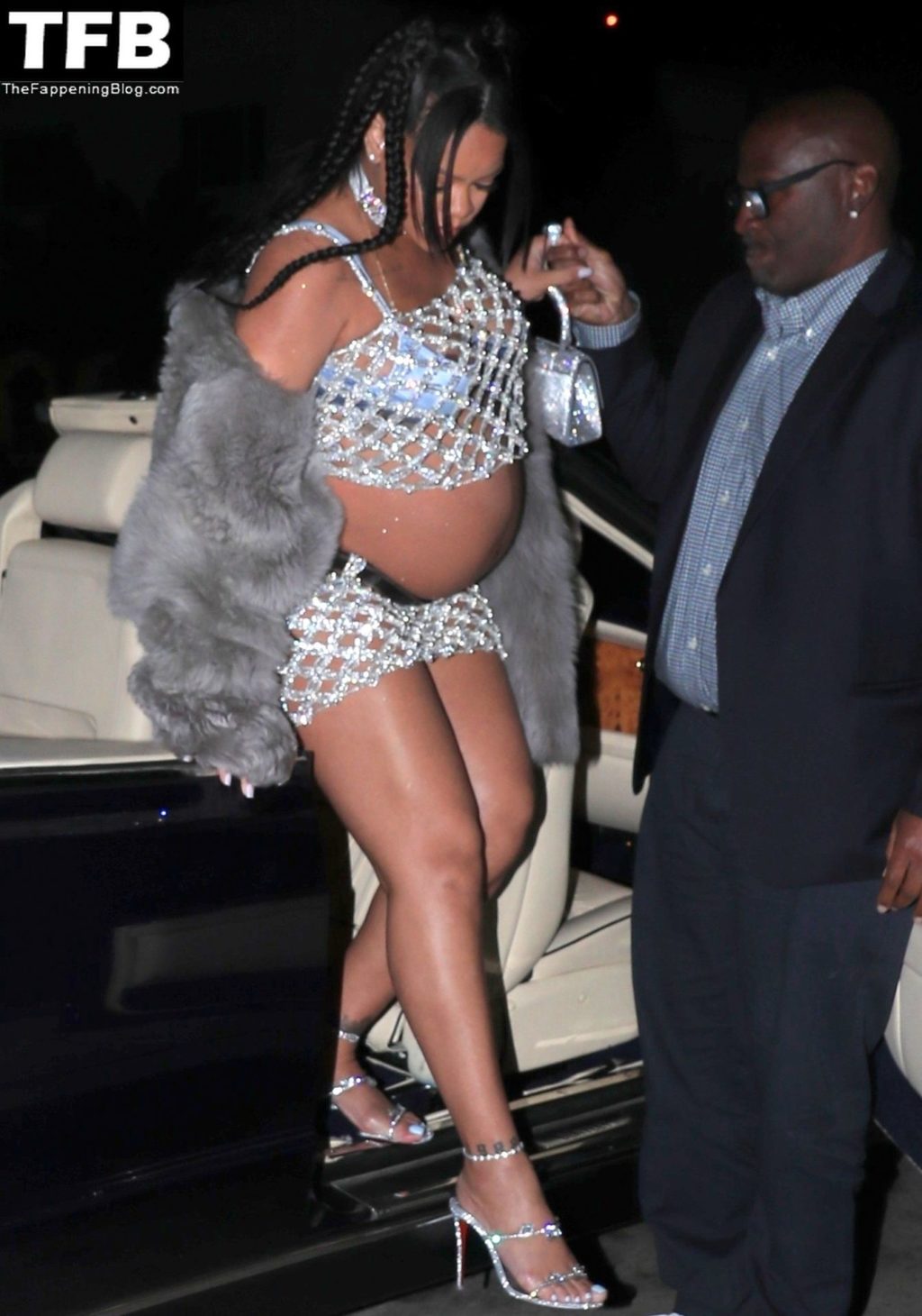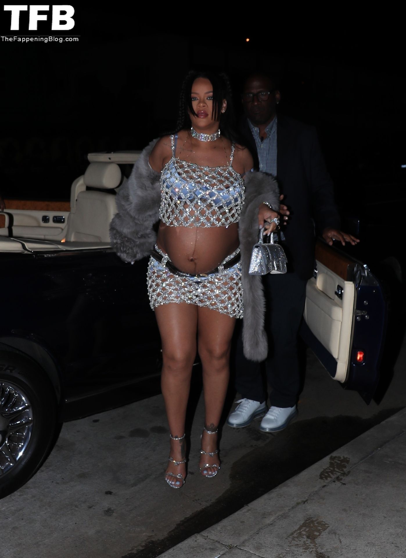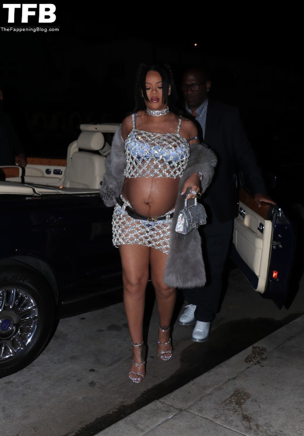 Mother-to-be Rihanna deixa pouca coisa para a imaginação em seu traje cintilante enquanto ela e ASAP Rocky jantam para celebrar o Dia das Mães no Giorgio Baldi em Santa Monica, 09/05/2022.