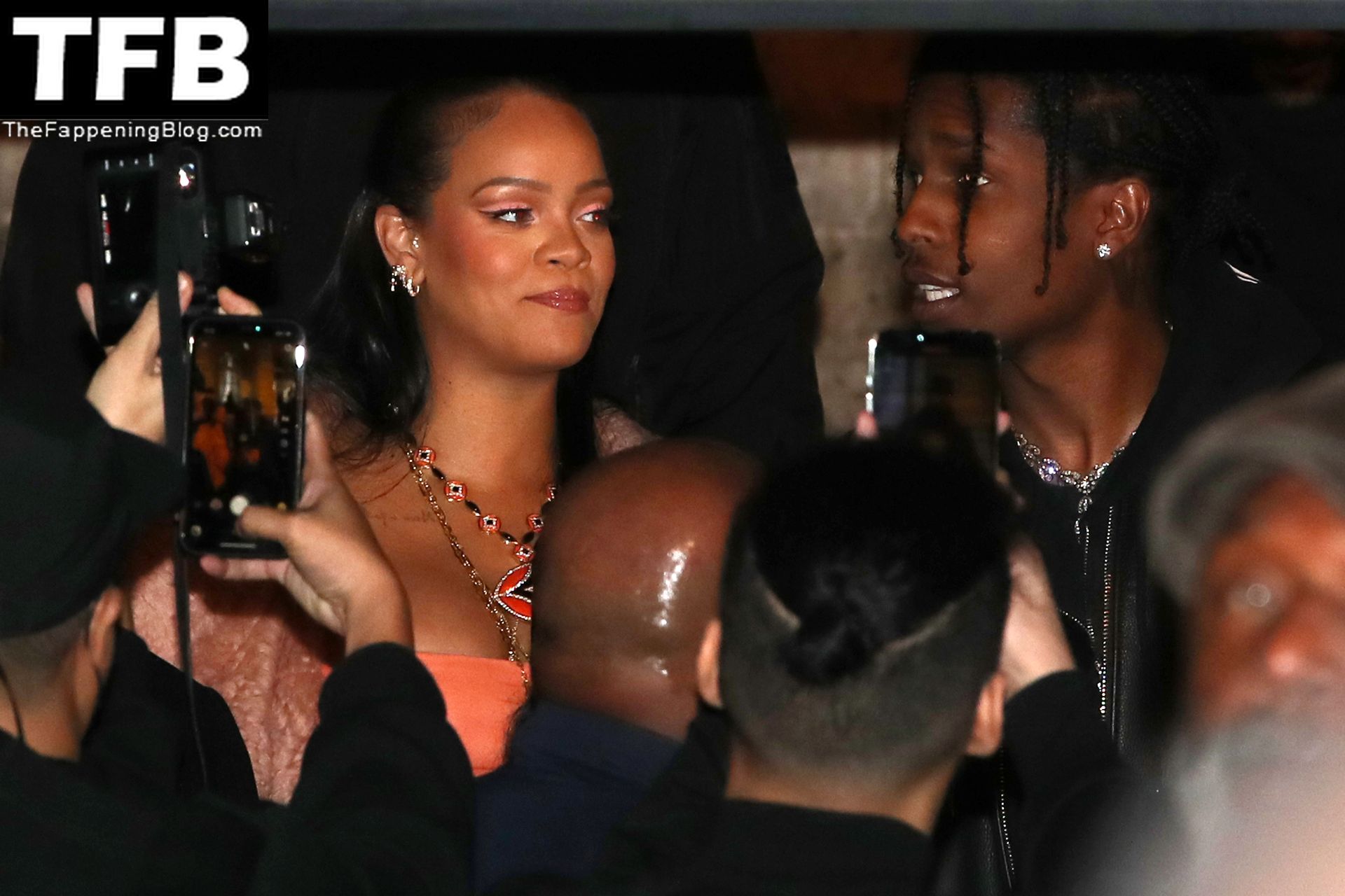 Rihanna grávida e ASAP Rocky assistem ao desfile Off-White Womenswear Outono/Inverno 2022/2023 como parte da Semana de Moda de Paris em Paris, 28/02/2022.