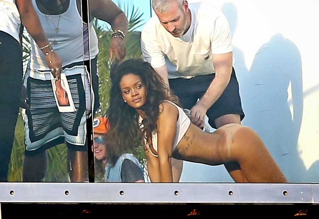 Não sou muito fã da Rihanna, mas essa merda é sexy. Especialmente quando ela está olhando para os paparazzi com a bunda no ar... Devo revelar que fiquei excitado