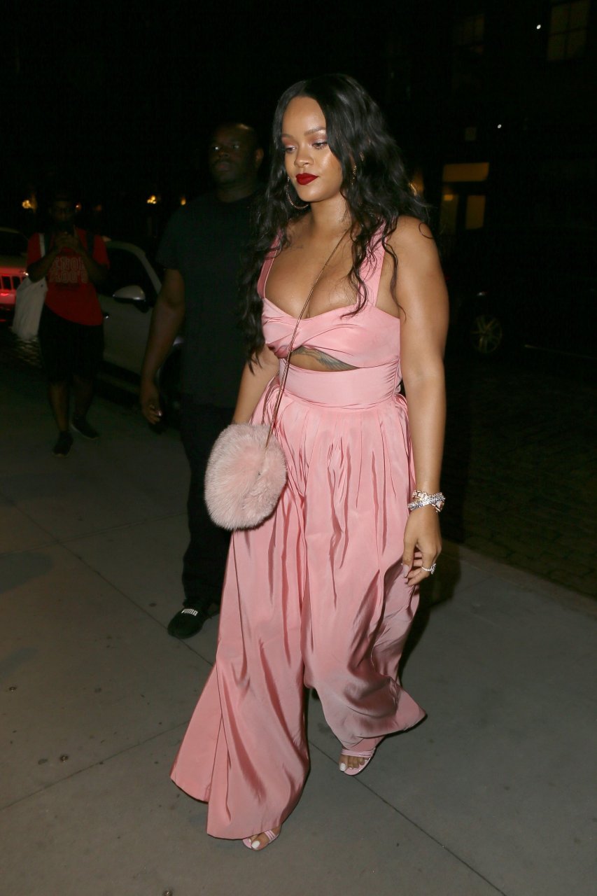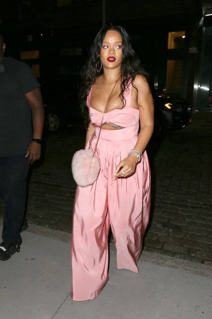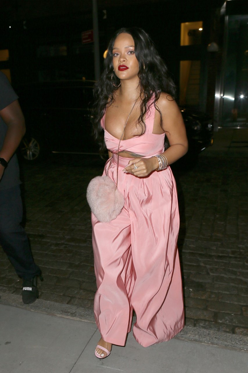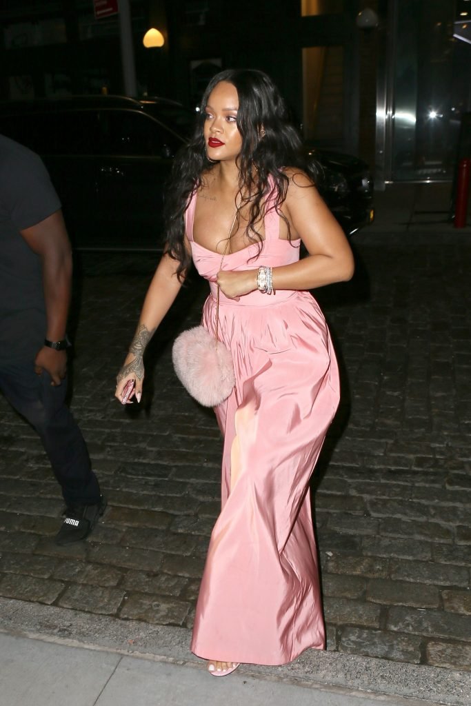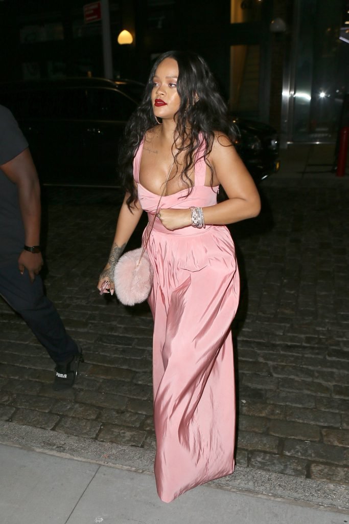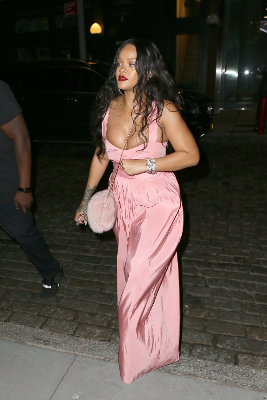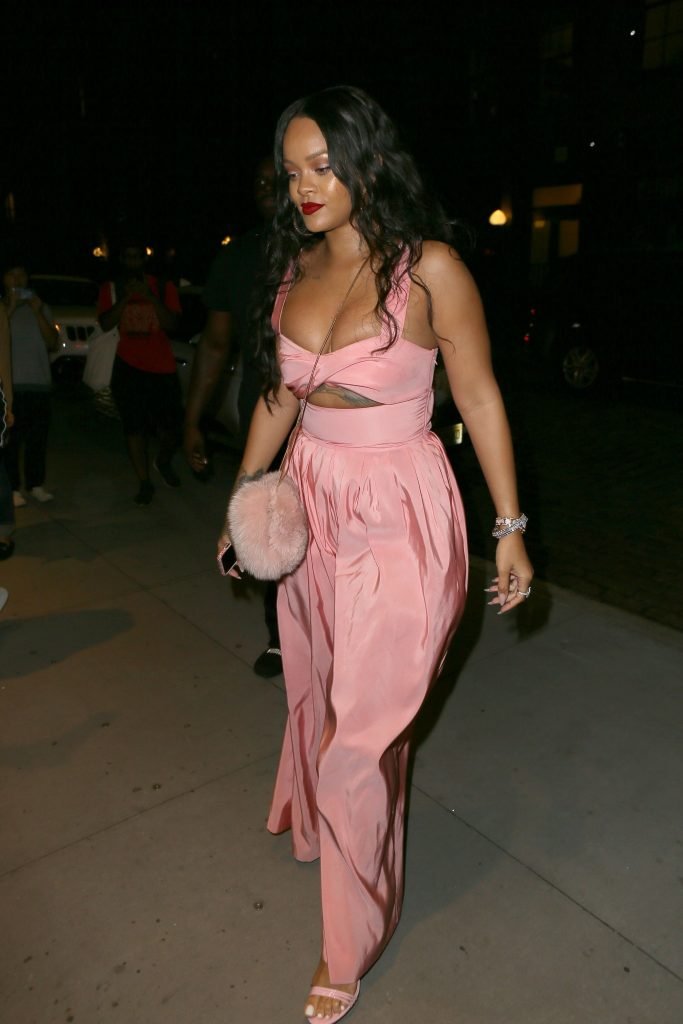 Rihanna exibe um decote generoso e um pouco mais ao chegar em Dumbo, Brooklyn para jantar, 16/09/2017. Rihanna é uma cantora, compositora e atriz barbadiana. (Bates Motel). Idade: – 29.