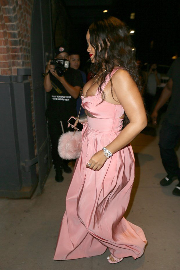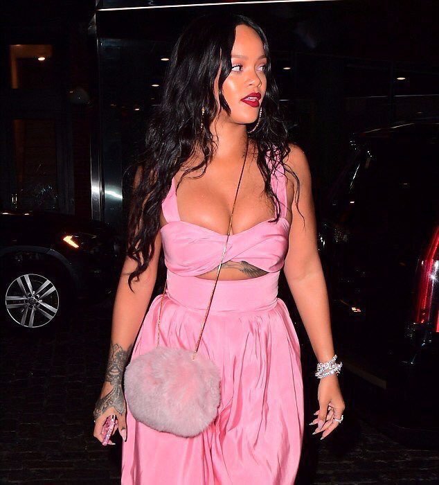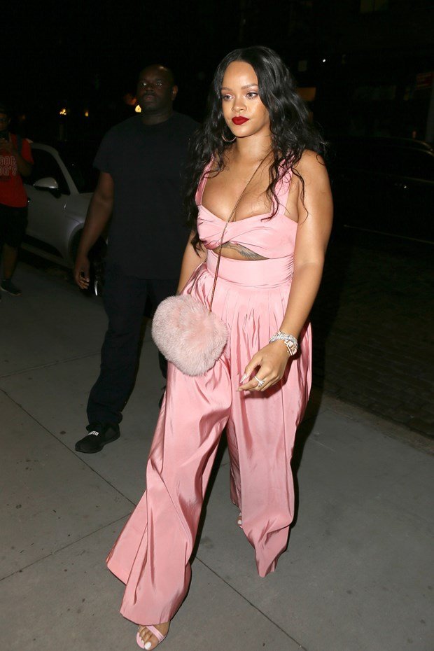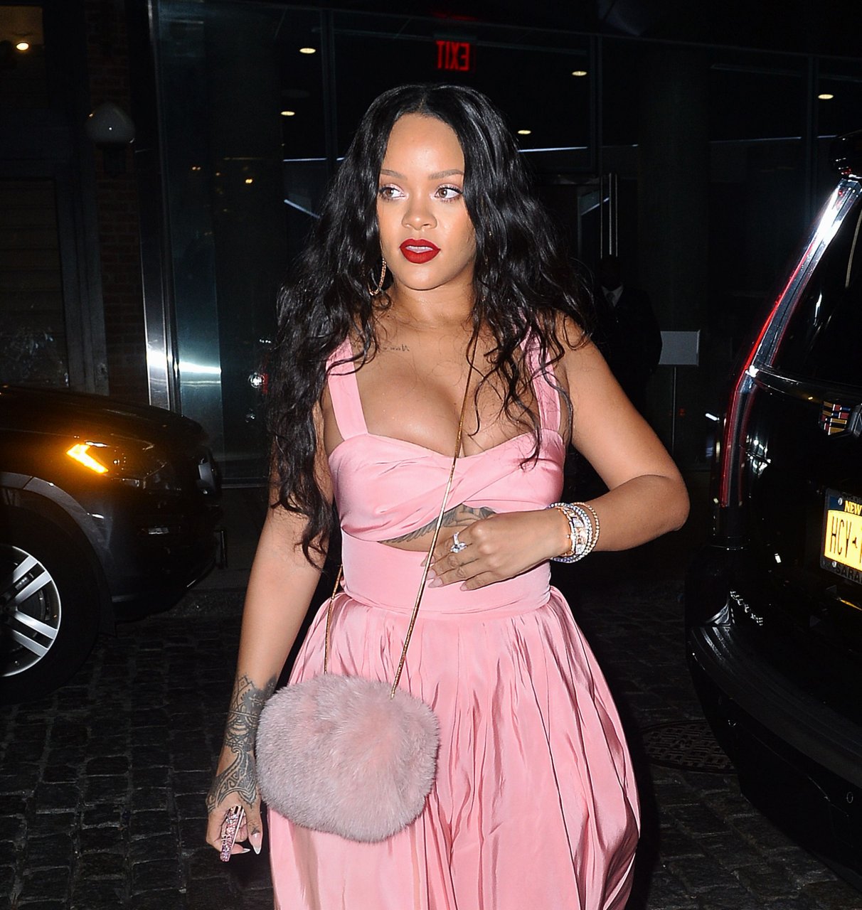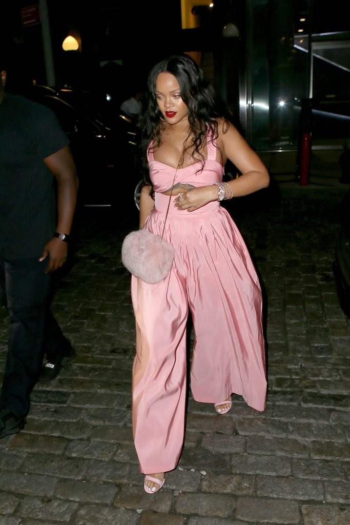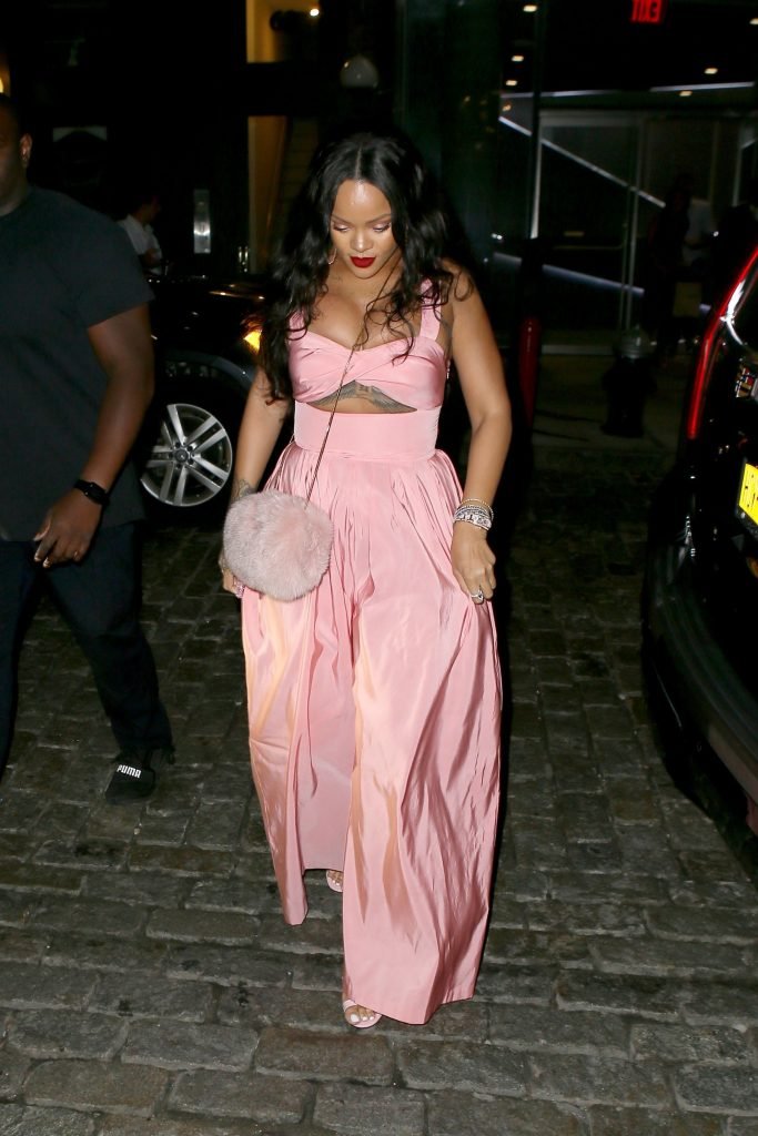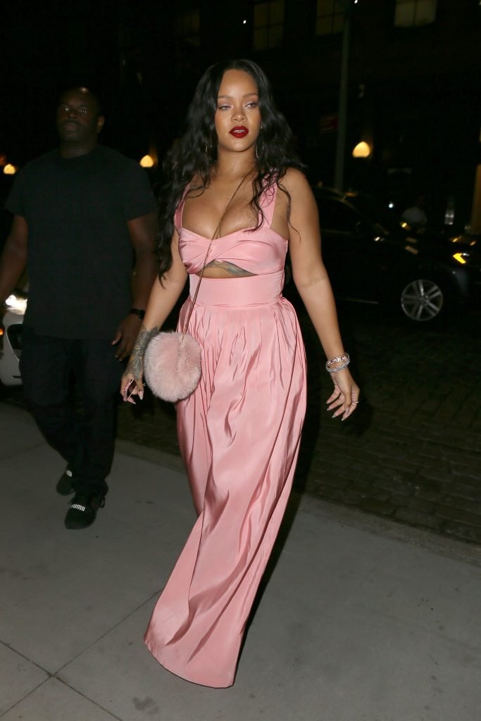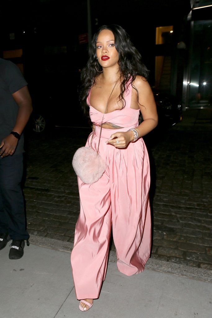 Rihanna exibe um decote generoso e um pouco mais ao chegar em Dumbo, Brooklyn para jantar, 16/09/2017. Rihanna é uma cantora, compositora e atriz barbadiana. (Bates Motel). Idade: – 29.