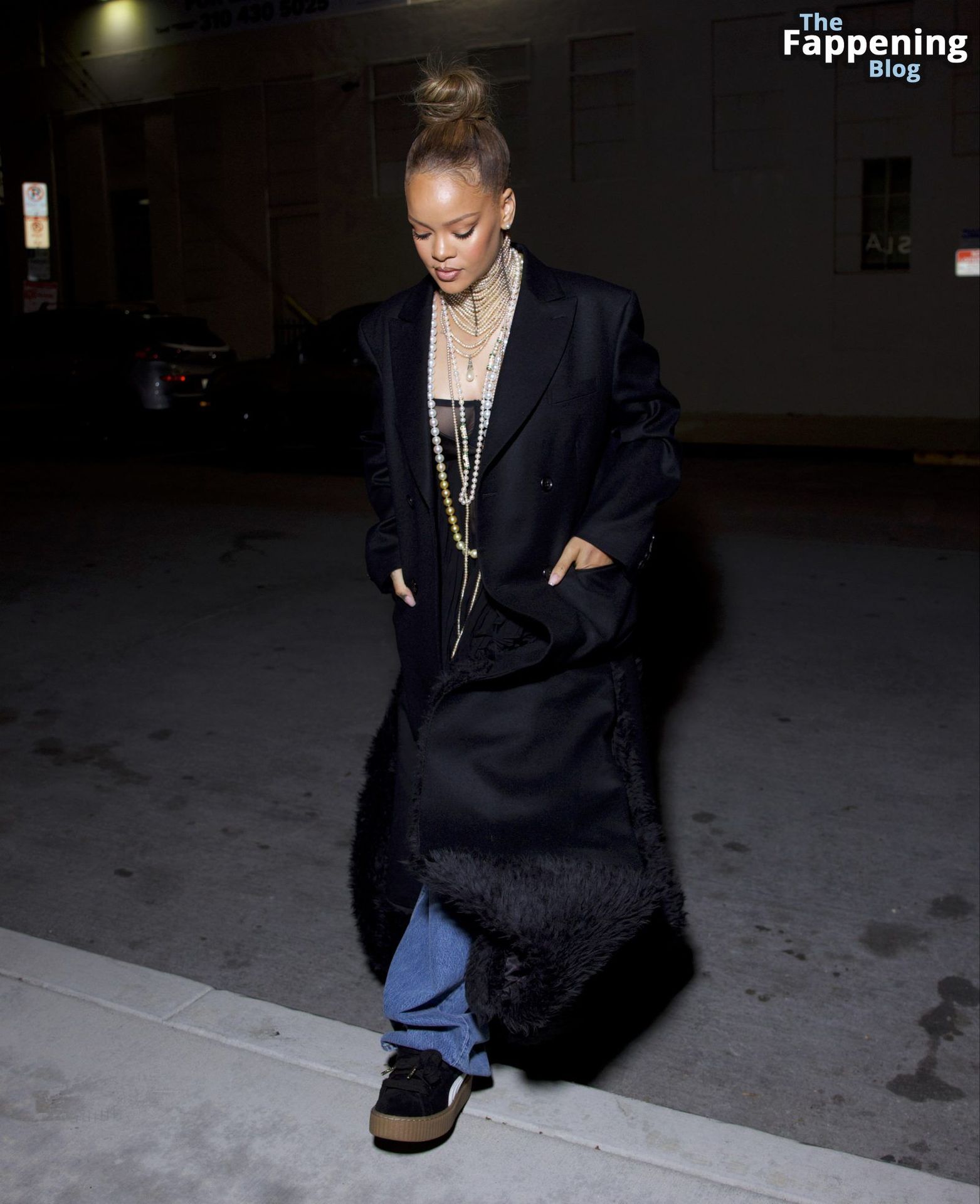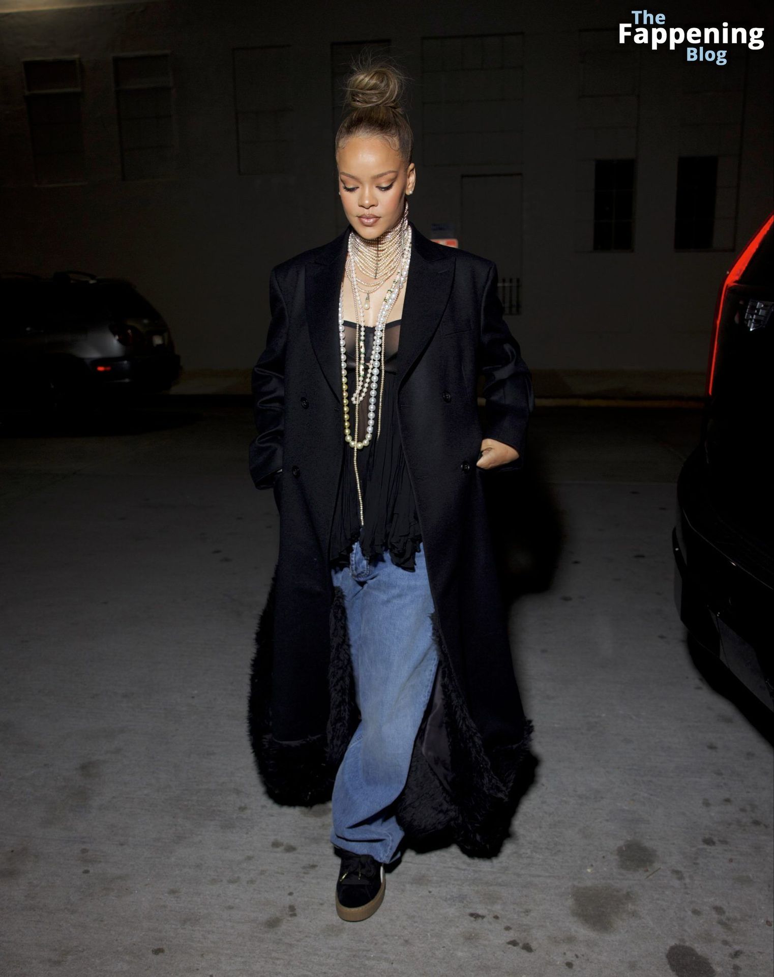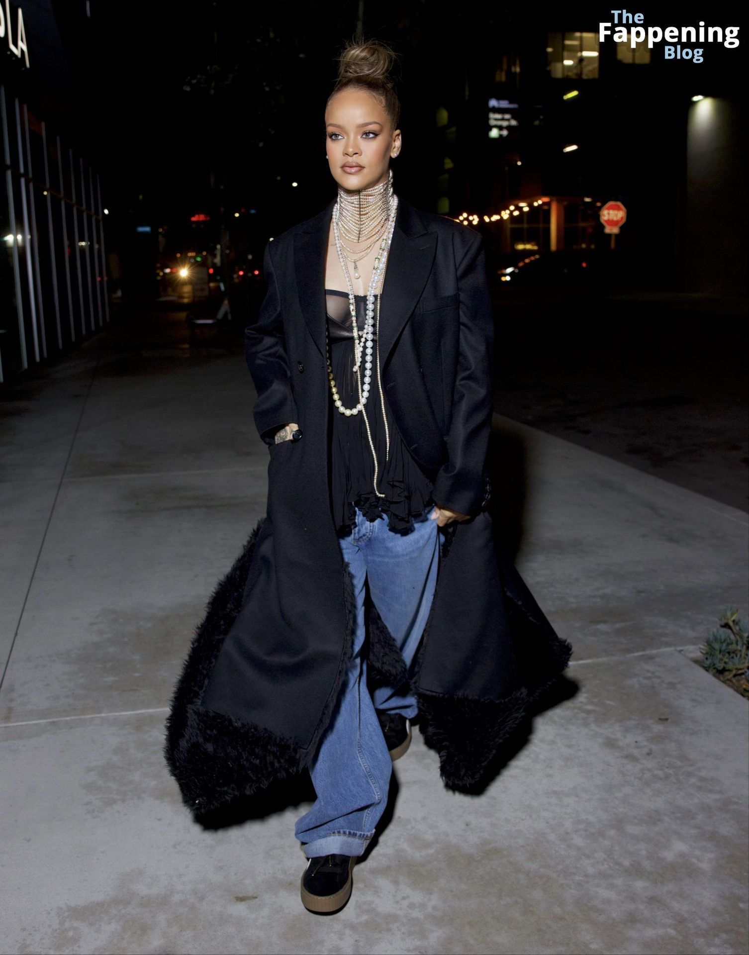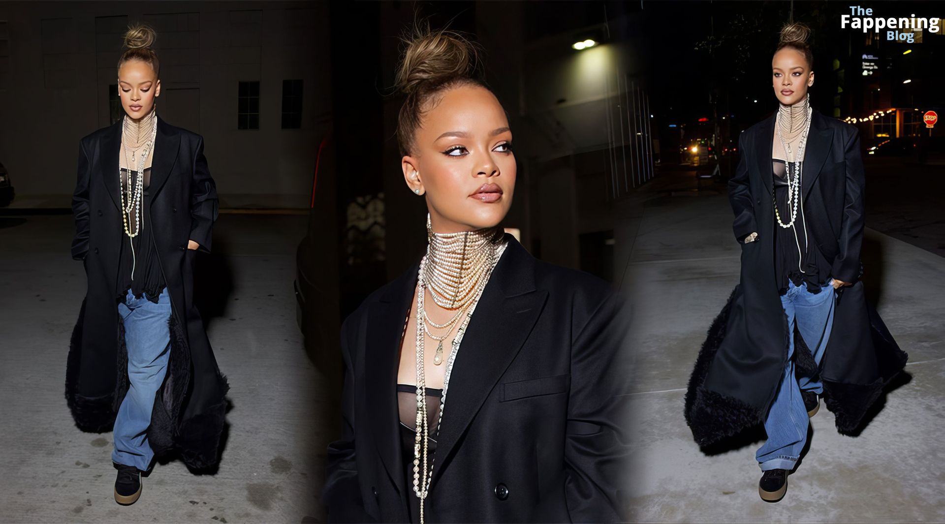 Confira o estilo ousado de Rihanna em LA, onde ela está usando um sutiã transparente e exibindo seu charme cativante.