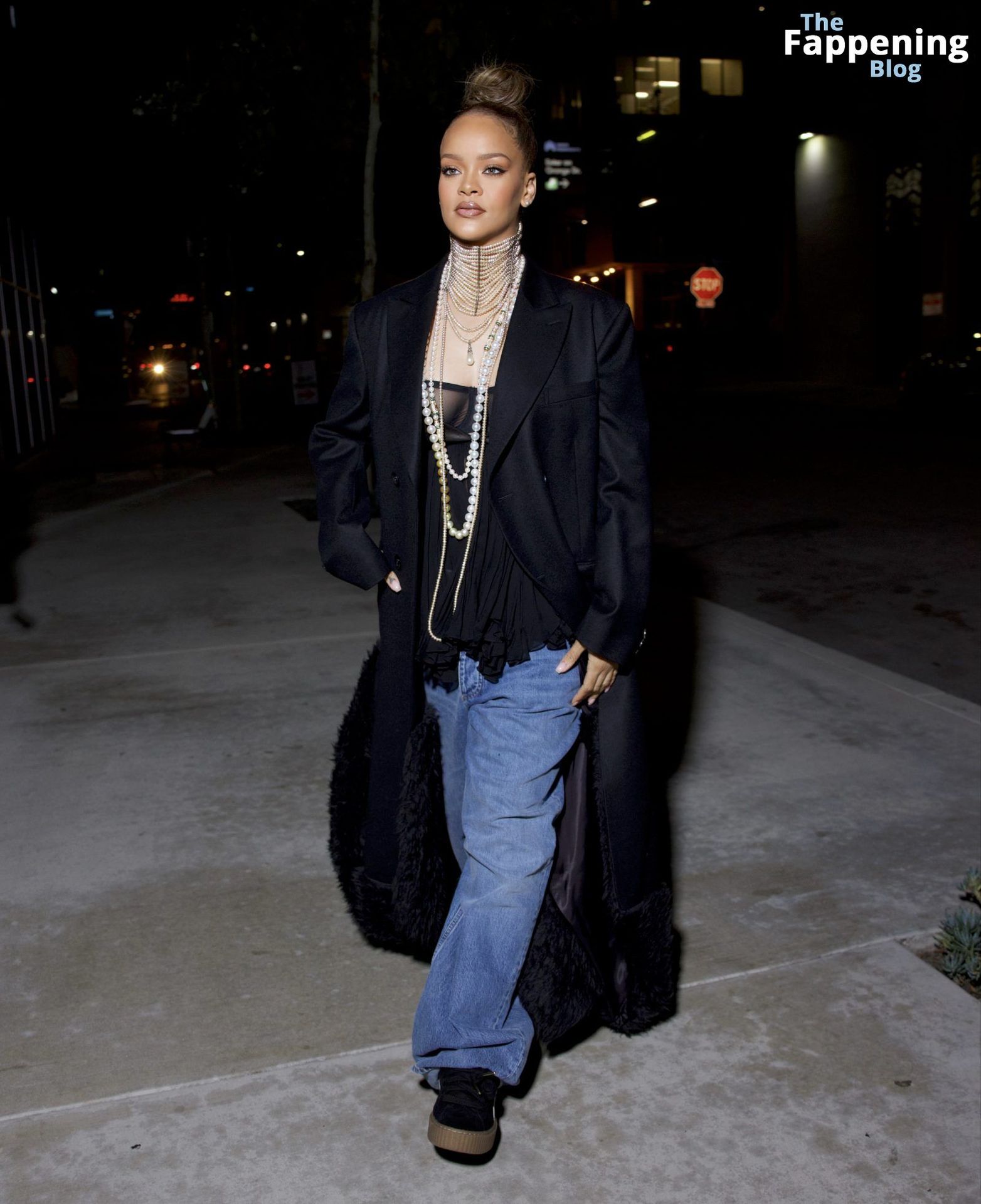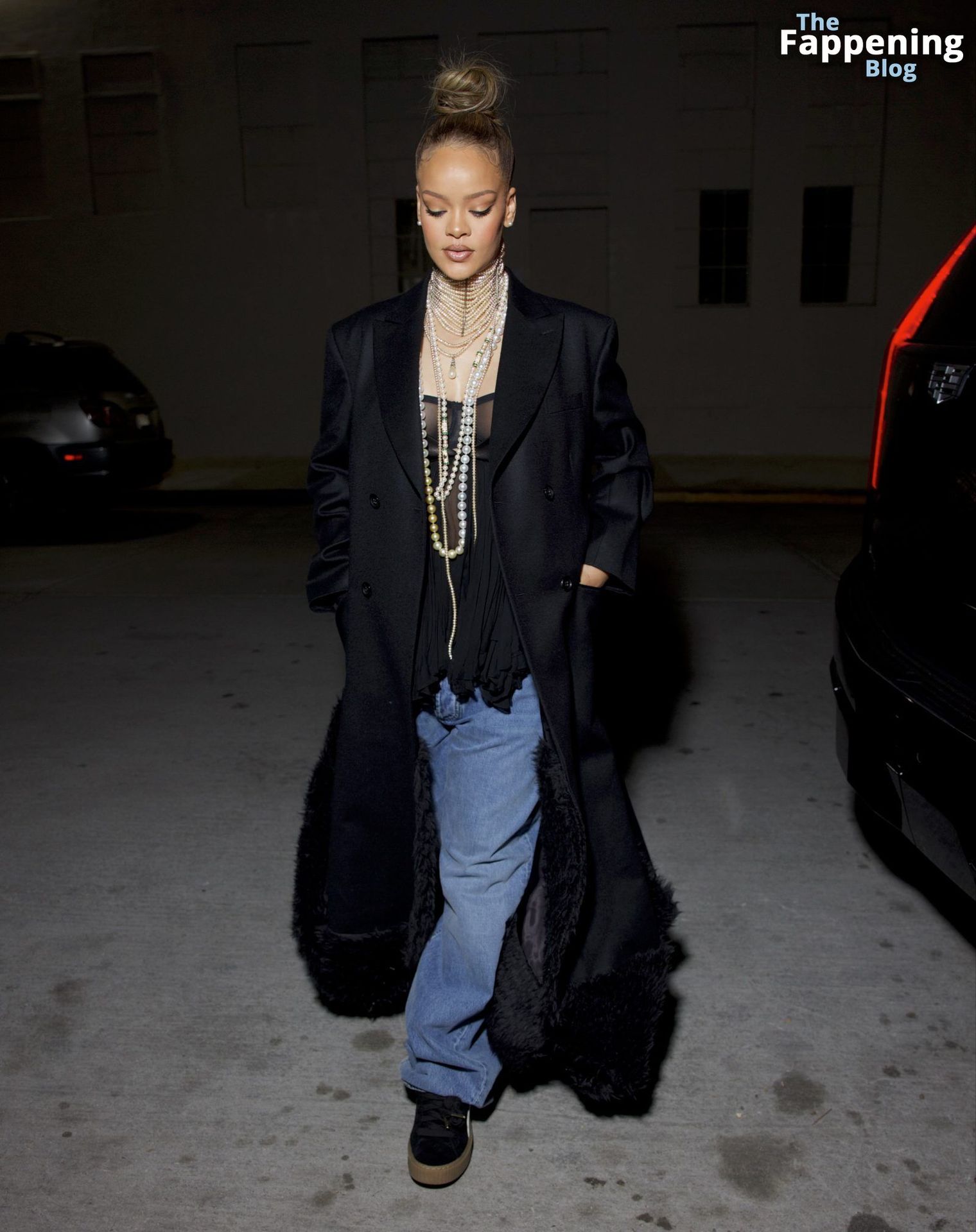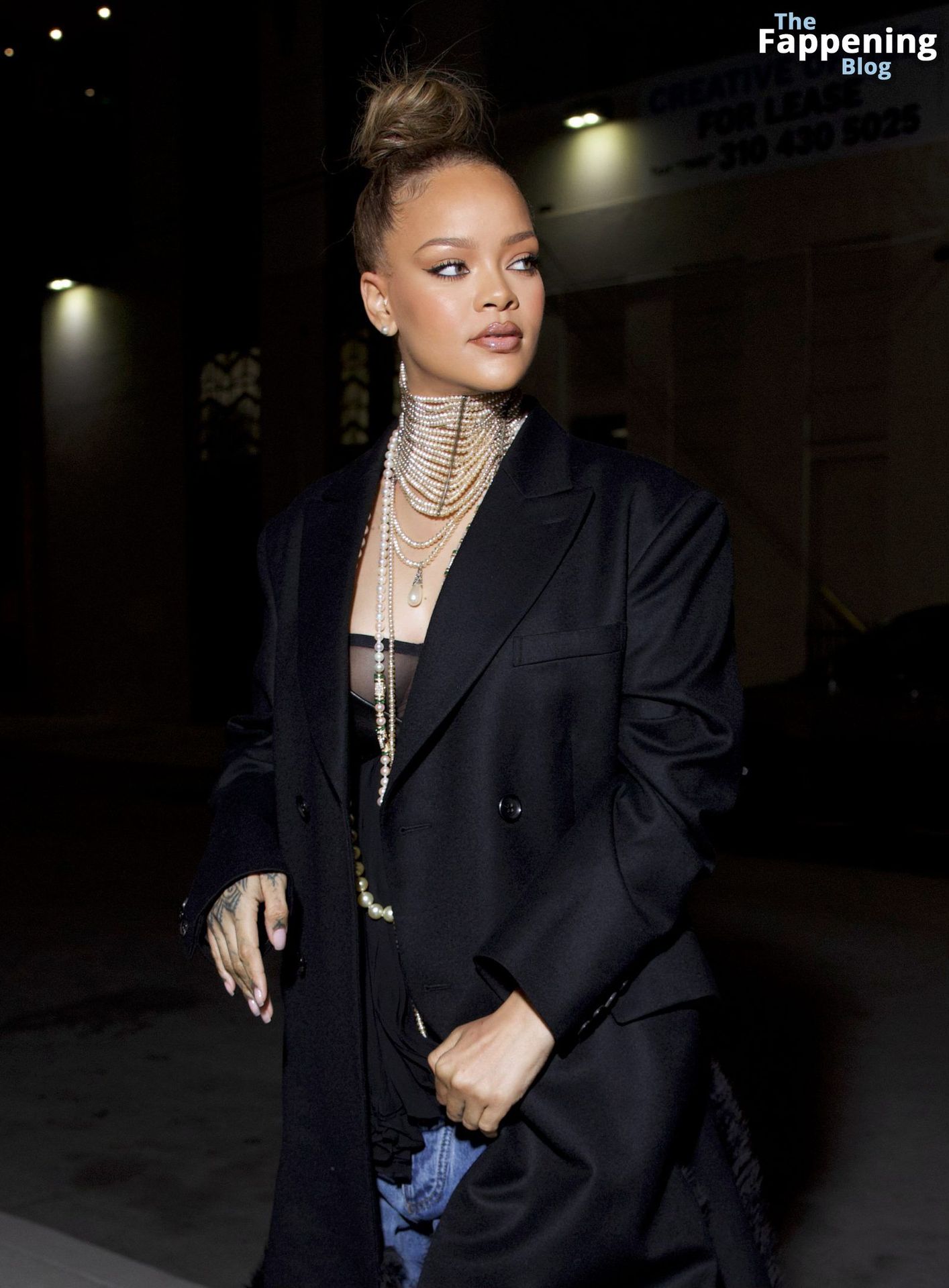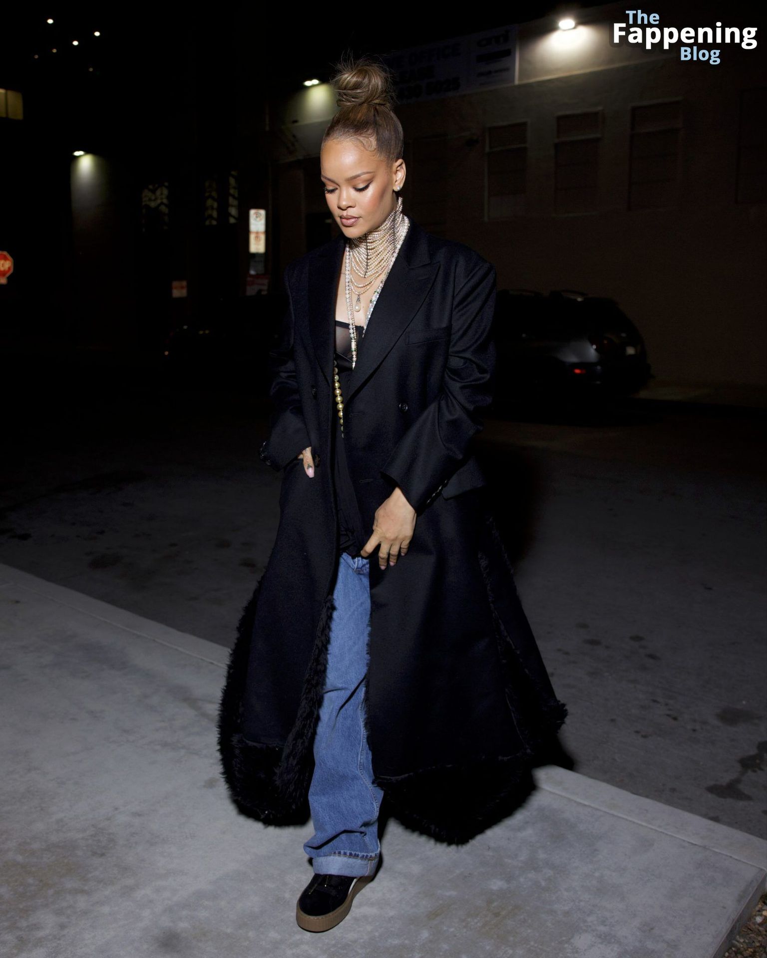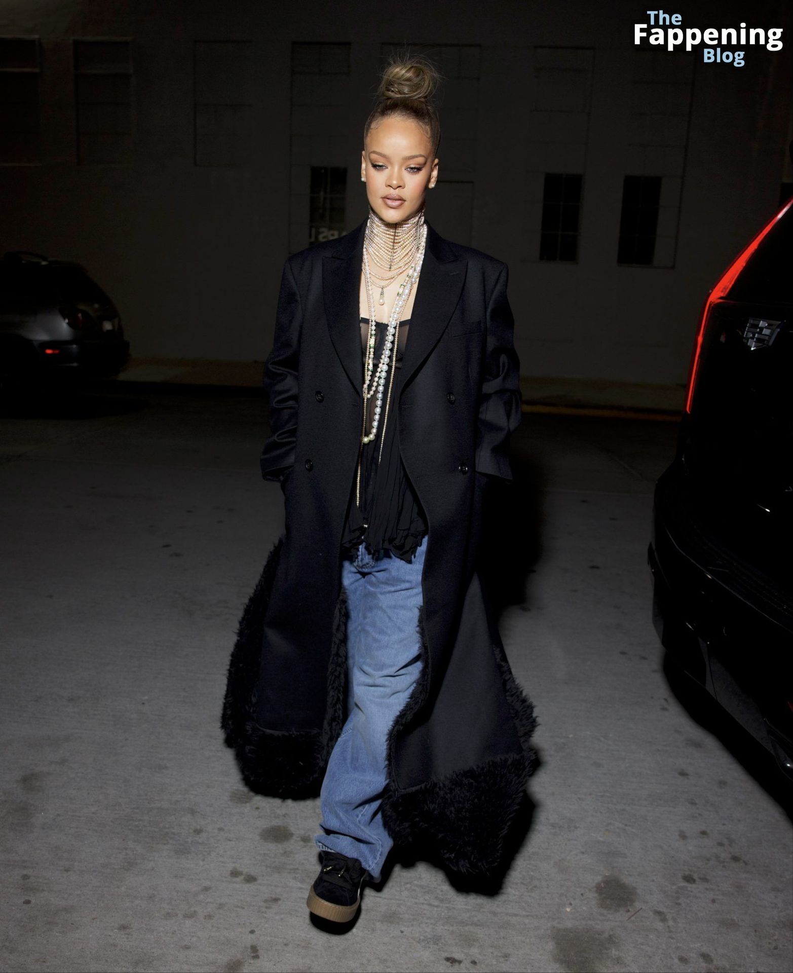 Confira o estilo ousado de Rihanna em LA, onde ela está usando um sutiã transparente e exibindo seu charme cativante.