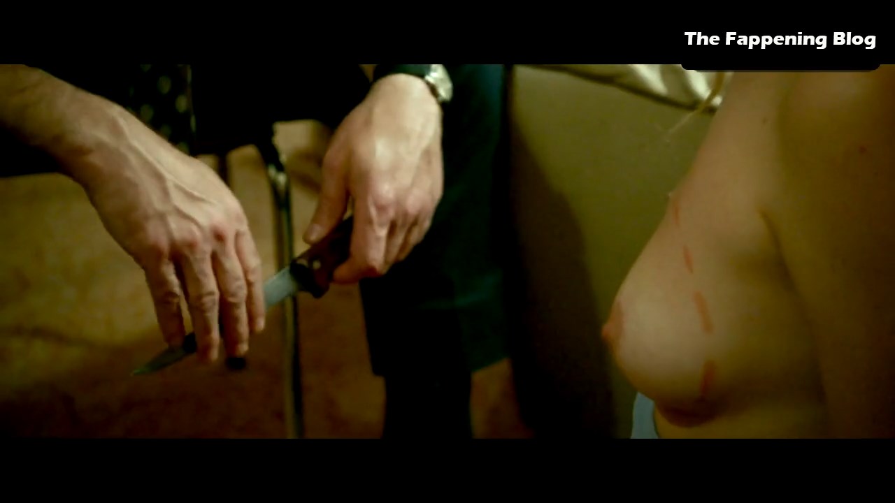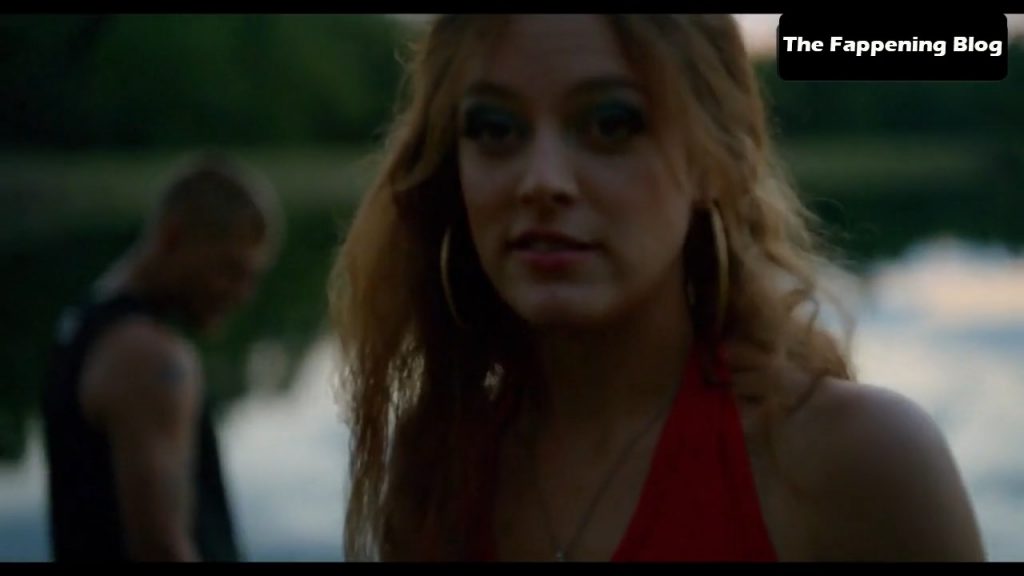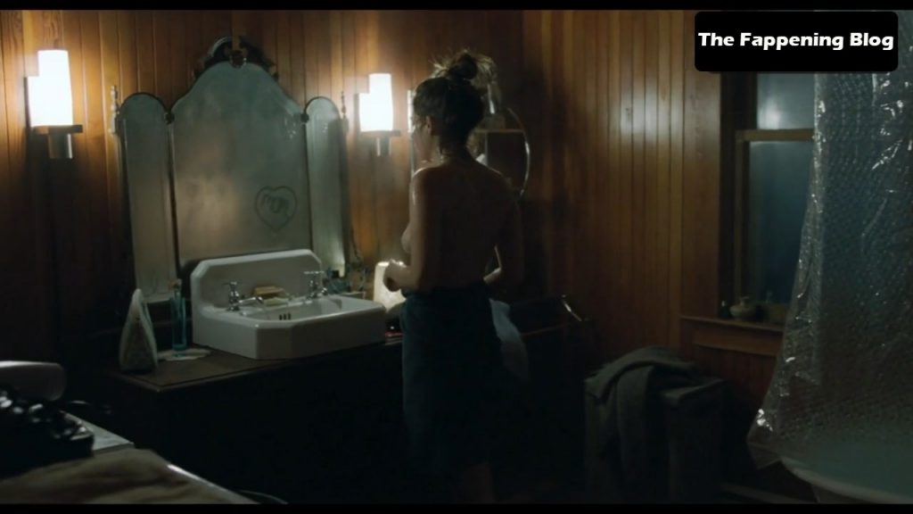 A jovem Riley Keough nua de costas debaixo de um cara enquanto eles fazem sexo. O cara então sai e se ajoelha sobre ela enquanto ejacula em sua barriga. Depois vemos Riley nua de costas com os seios expostos.