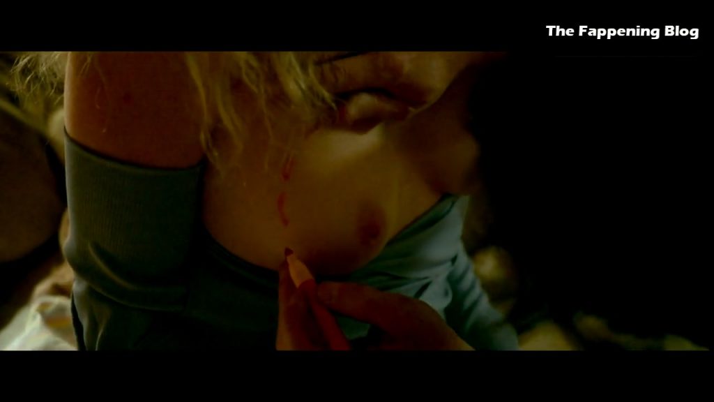 In this montage we see Riley’s boob get drawn on and then she gets tied up…and it appears that Dillon chops off a boob at some point. No skingoria exactly, but the implication is certainly there.