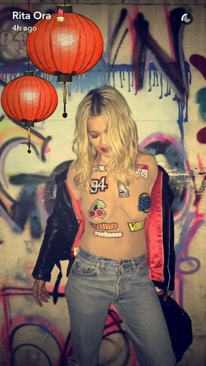 Novas fotos sensuais de Rita Ora sem sutiã em uma blusa transparente com adesivos do Snapchat, 21/05/2016. Vadia, claro… Rita Ora é uma cantora, compositora e atriz britânica. Idade: 25 (26 de novembro de 1990).