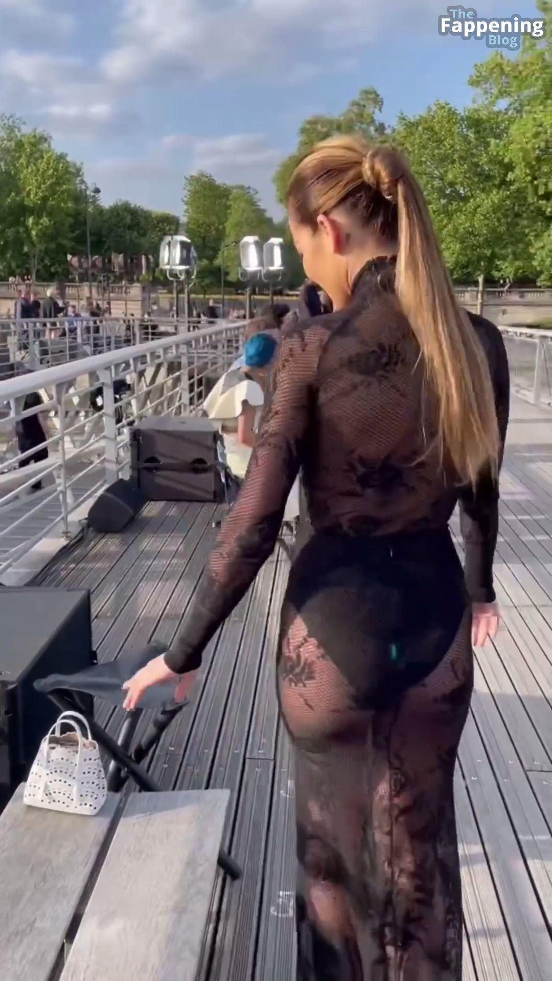 Não, ela não faz isso. Ela está totalmente vestida em todas as fotos.