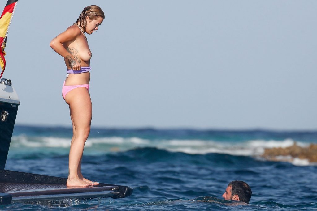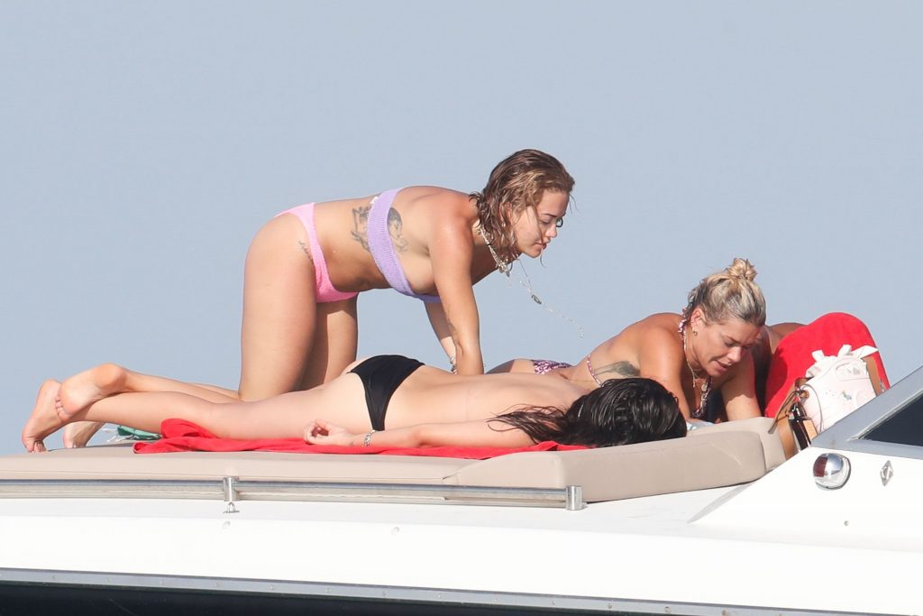 A cantora Rita Ora foi vista topless com um novo homem, Romain Gavras, em Formentera, Espanha, 29/07/2020.