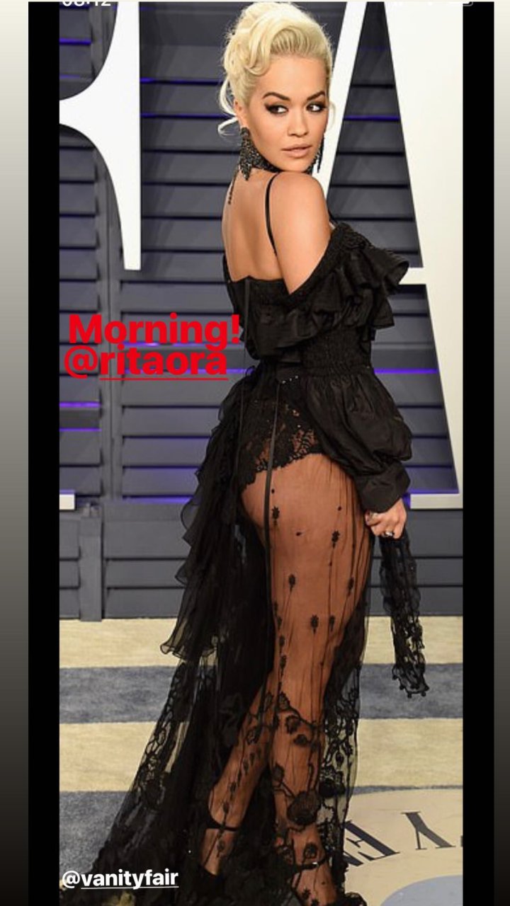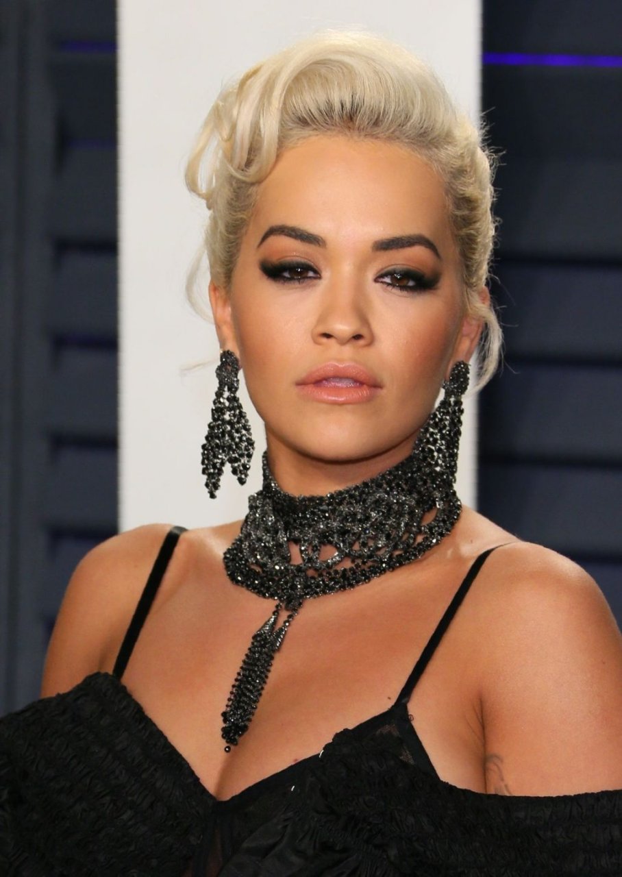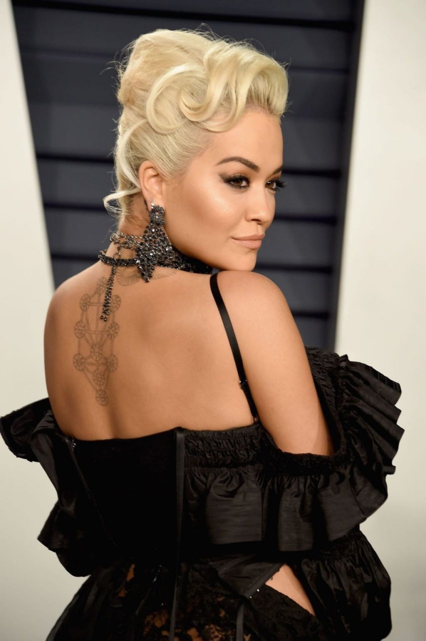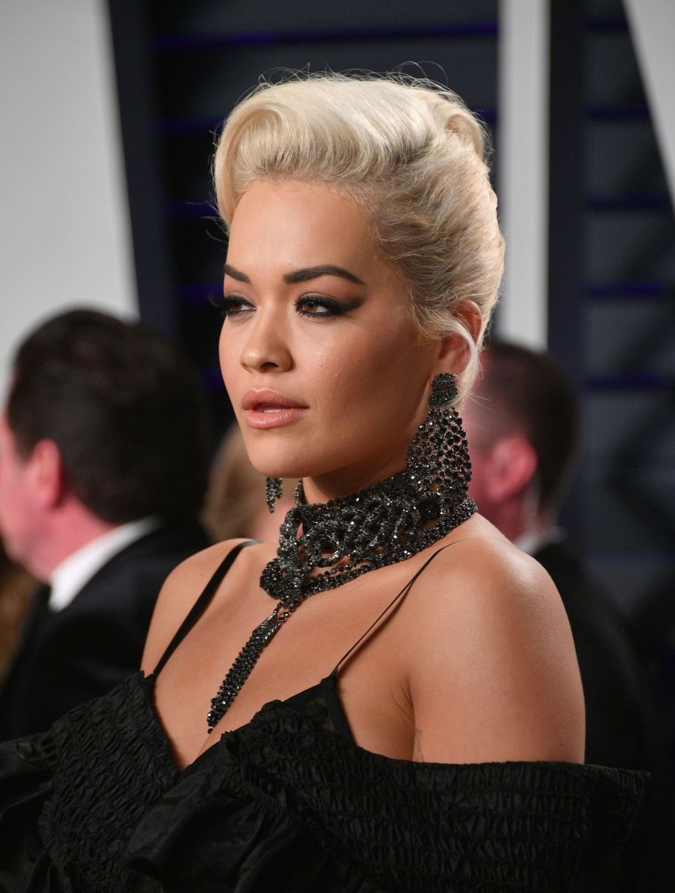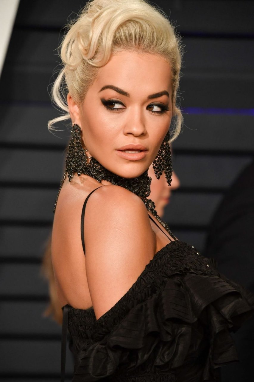 Superstar Rita Ora mostra seu decote e bumbum usando um vestido preto com lingerie de renda na festa Vanity Fair Oscar de 2019 em Beverly Hills, 24/02/2019.