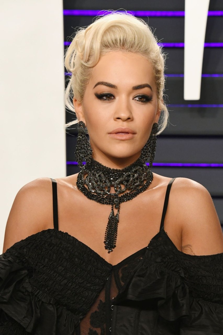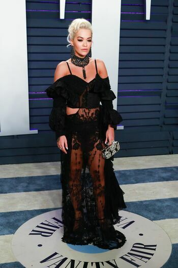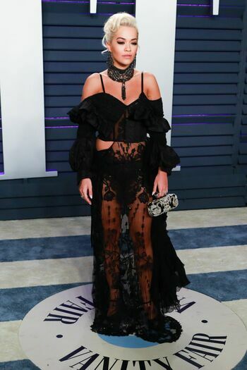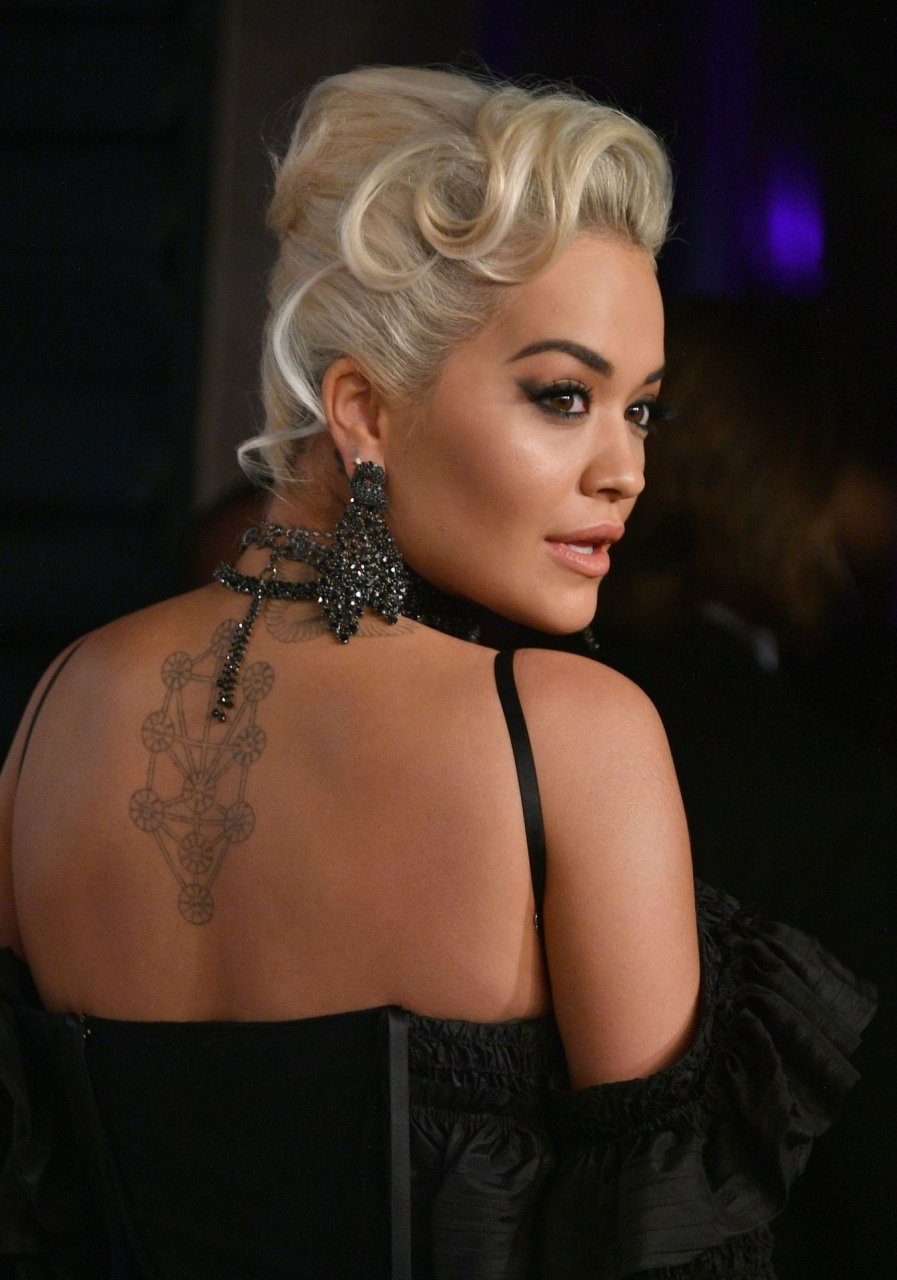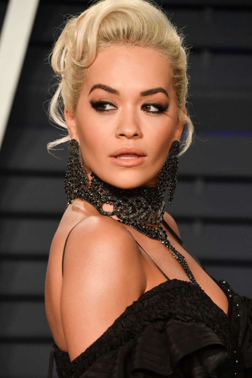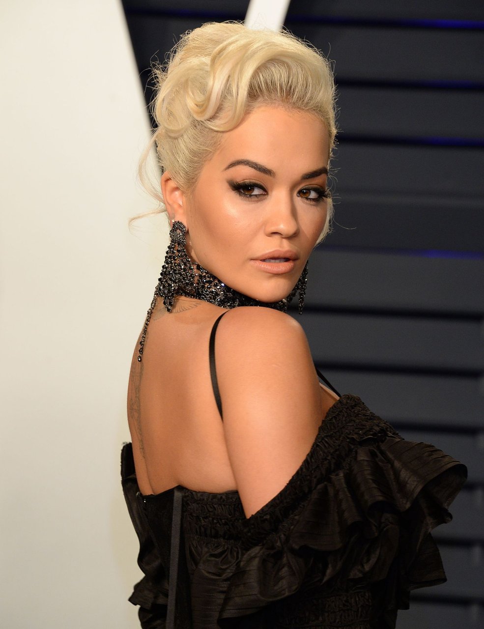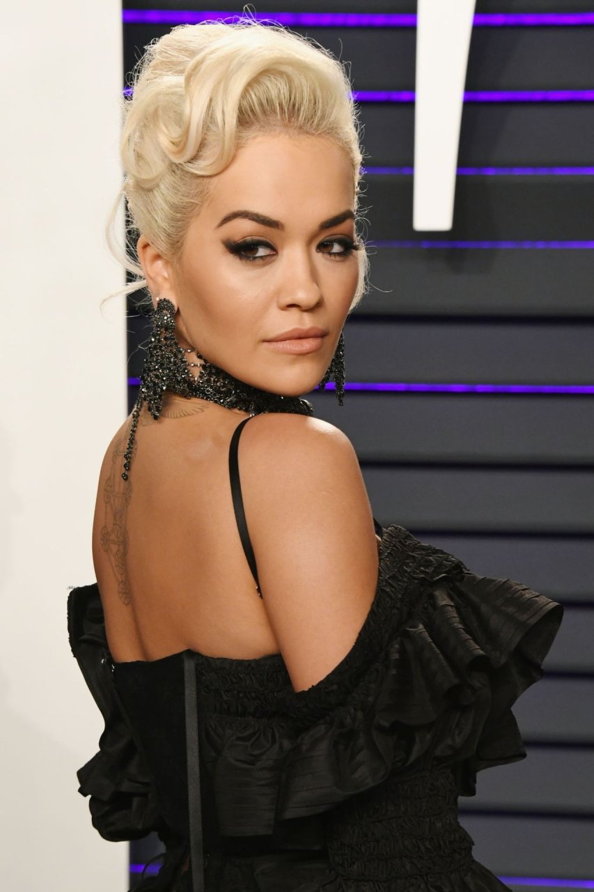 Superstar Rita Ora mostra seu decote e bumbum usando um vestido preto com lingerie de renda na festa Vanity Fair Oscar de 2019 em Beverly Hills, 24/02/2019.