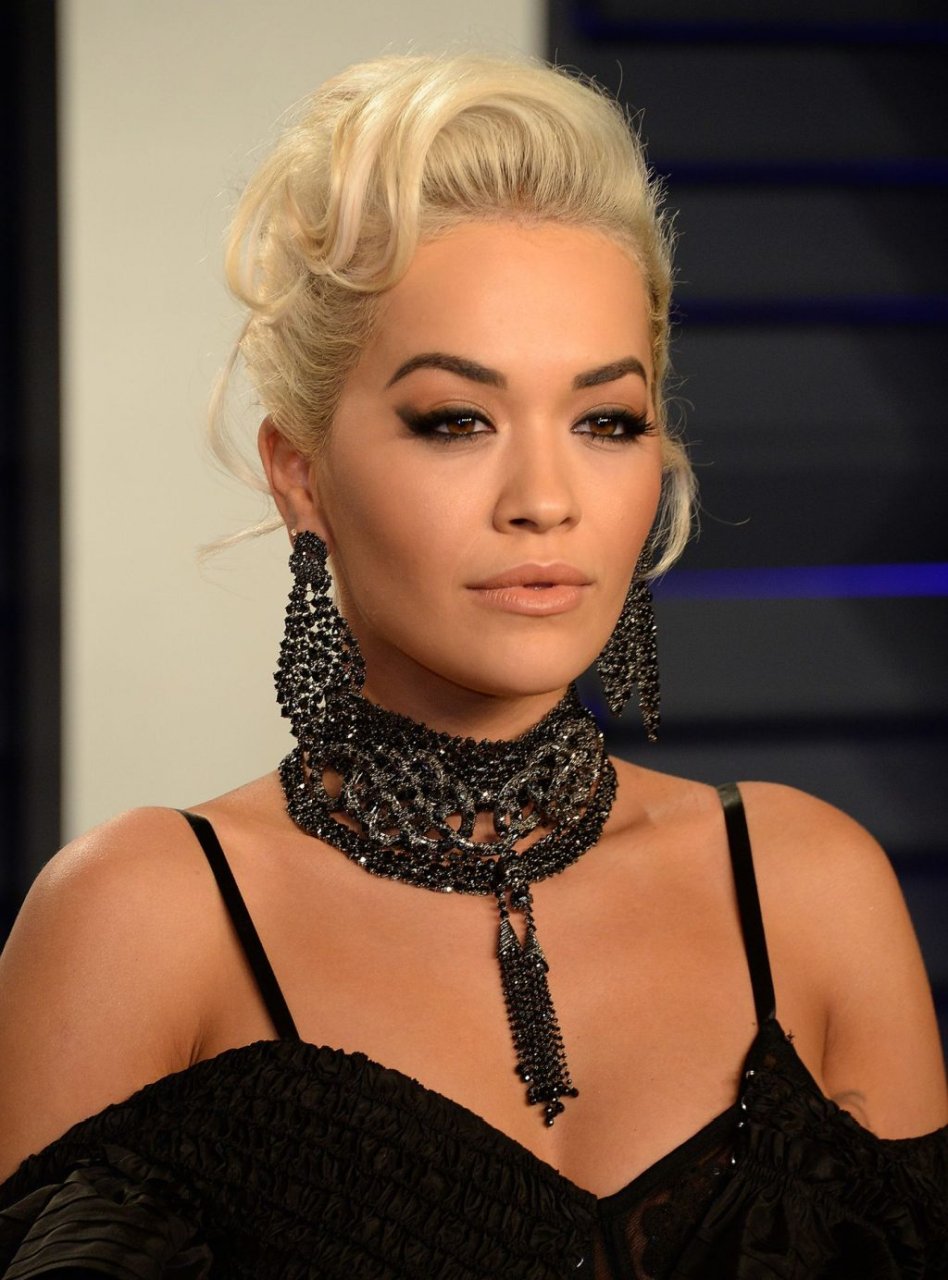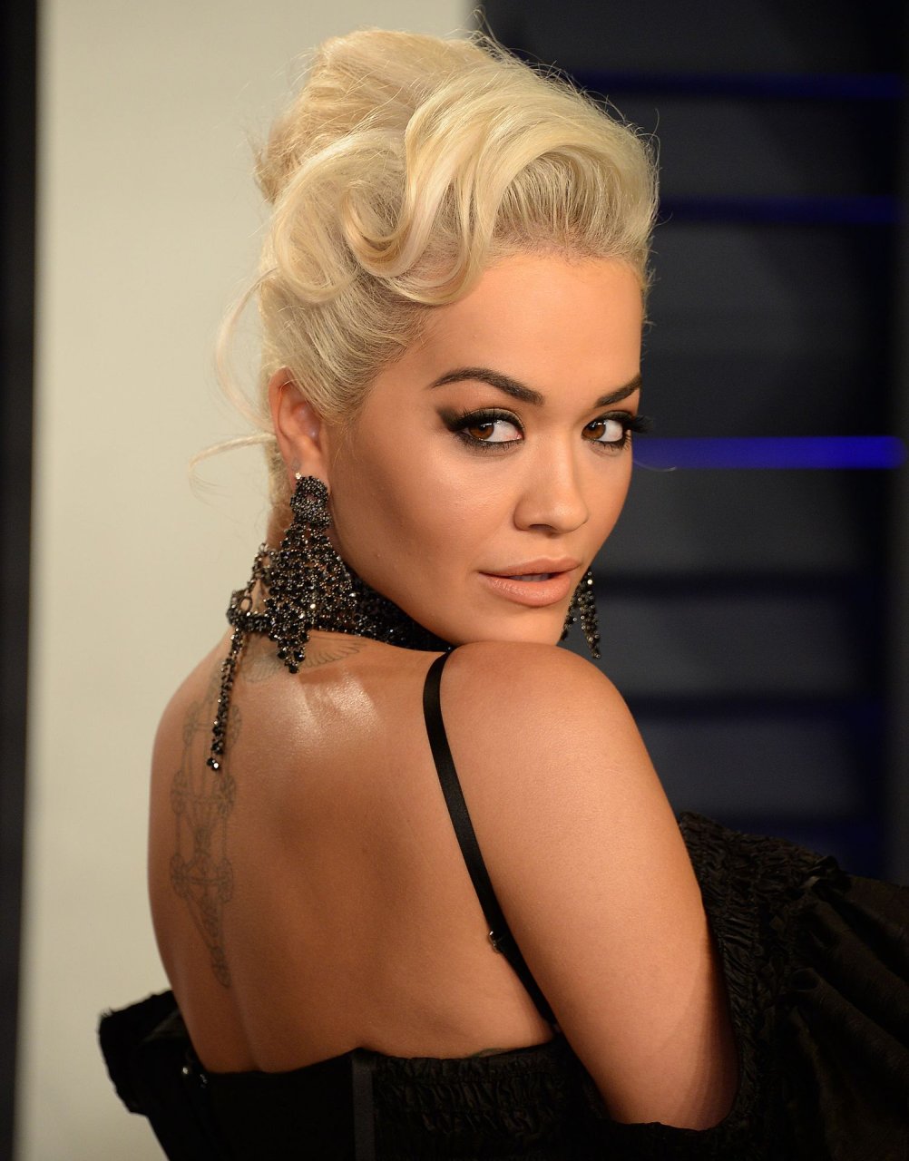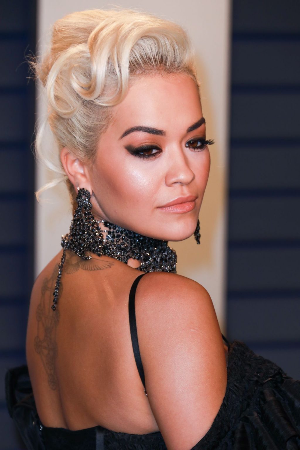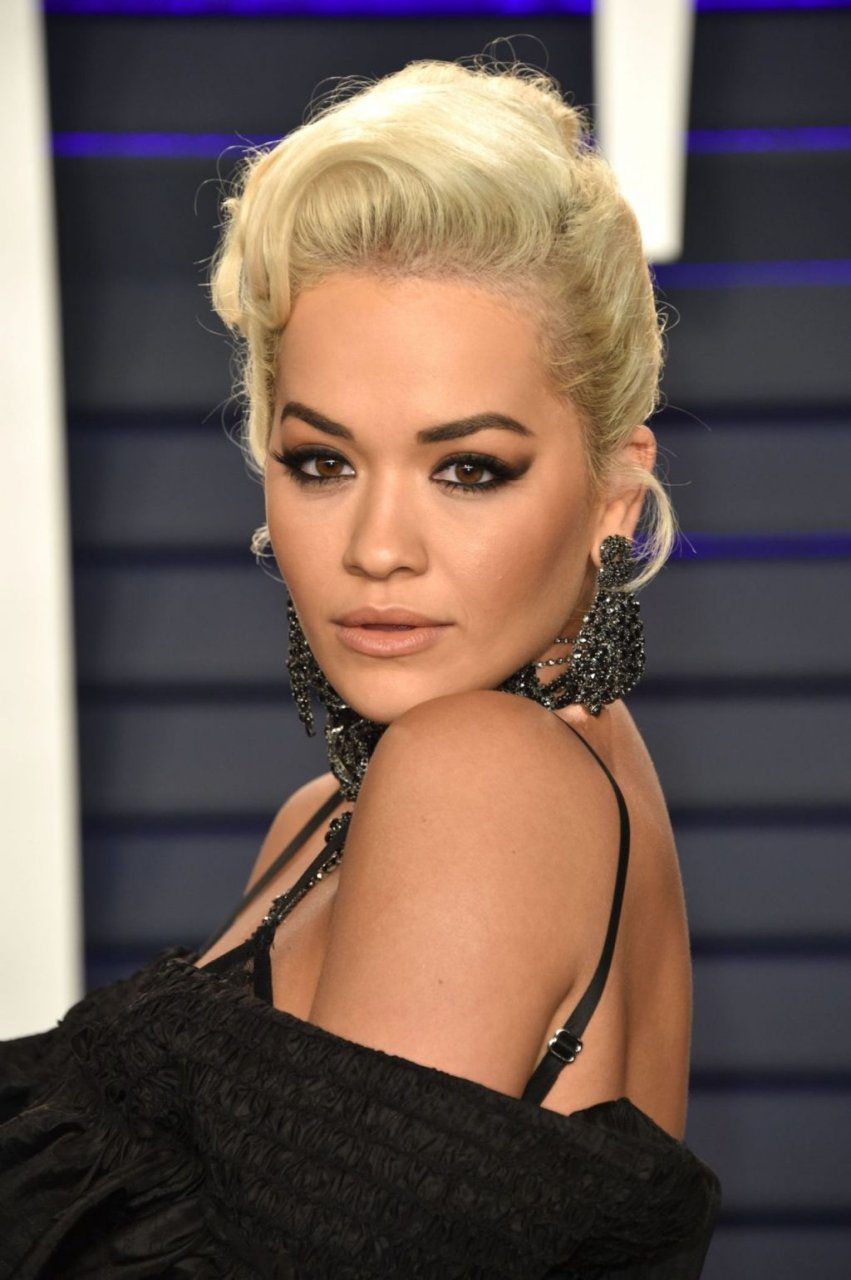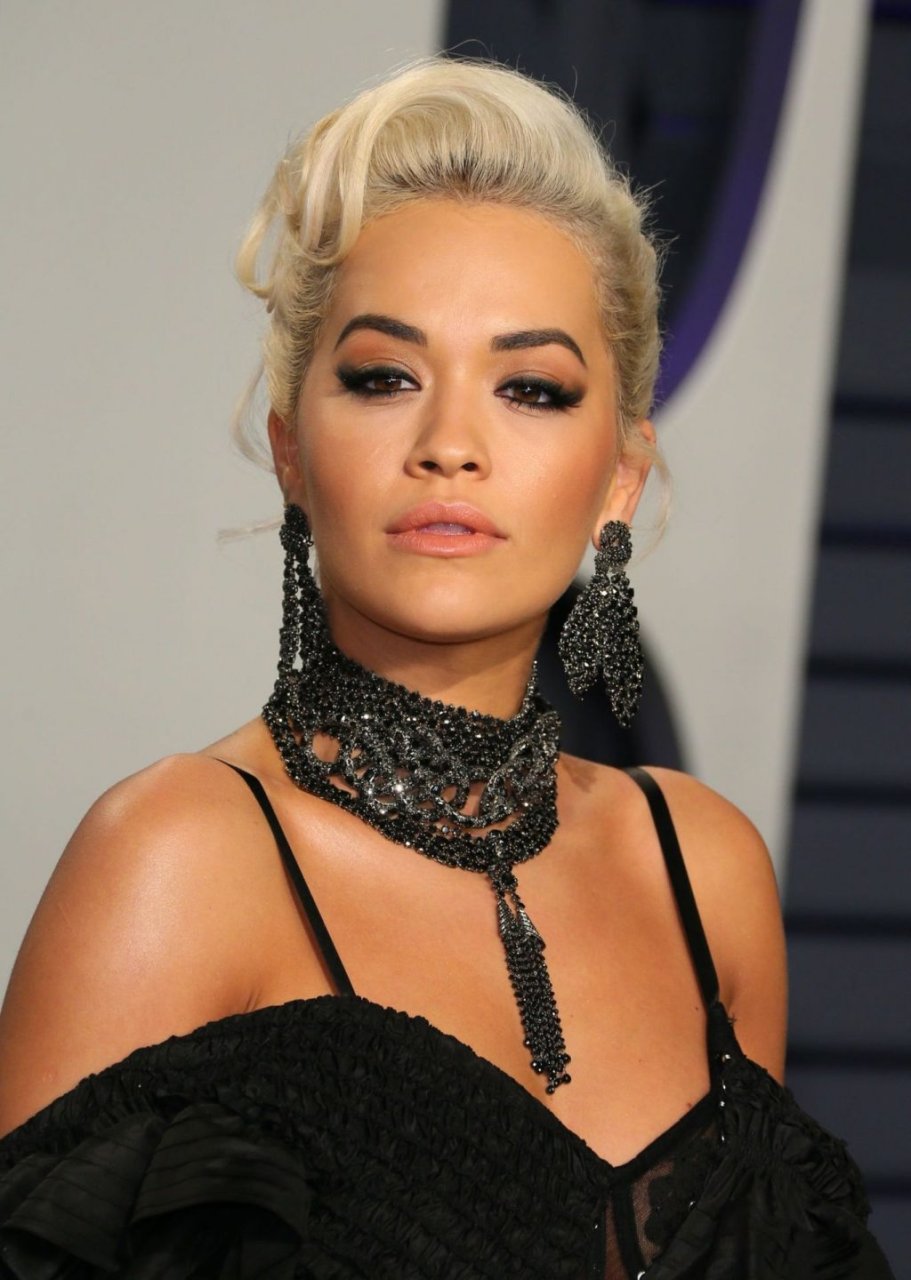 Superstar Rita Ora mostra seu decote e bumbum usando um vestido preto com lingerie de renda na festa Vanity Fair Oscar de 2019 em Beverly Hills, 24/02/2019.