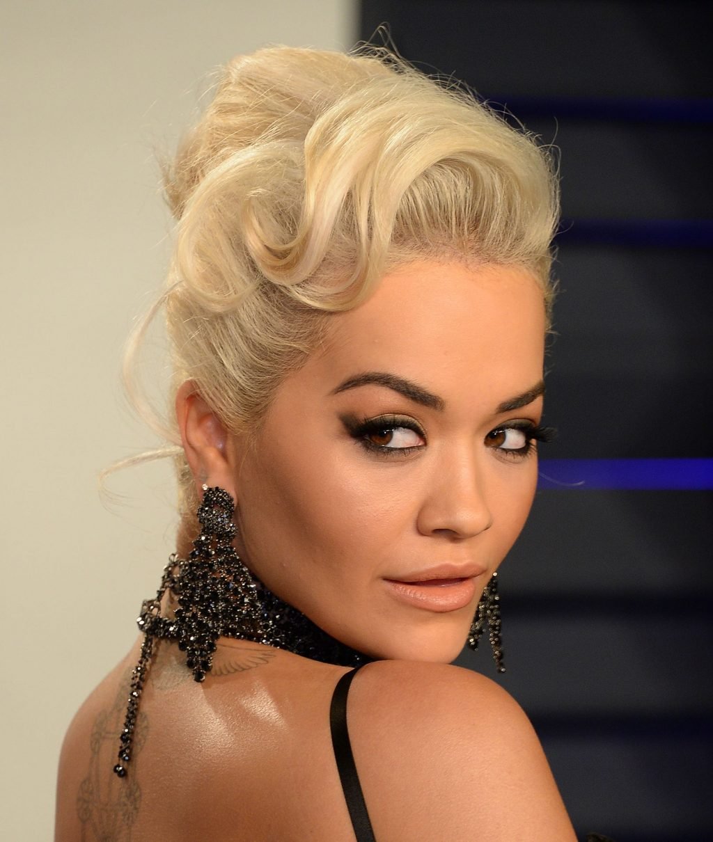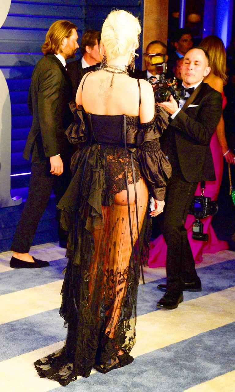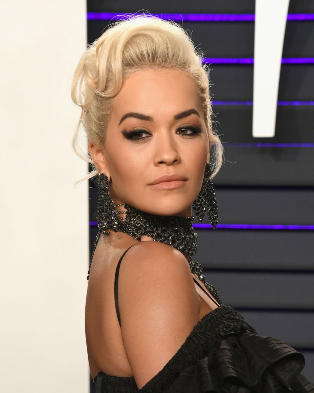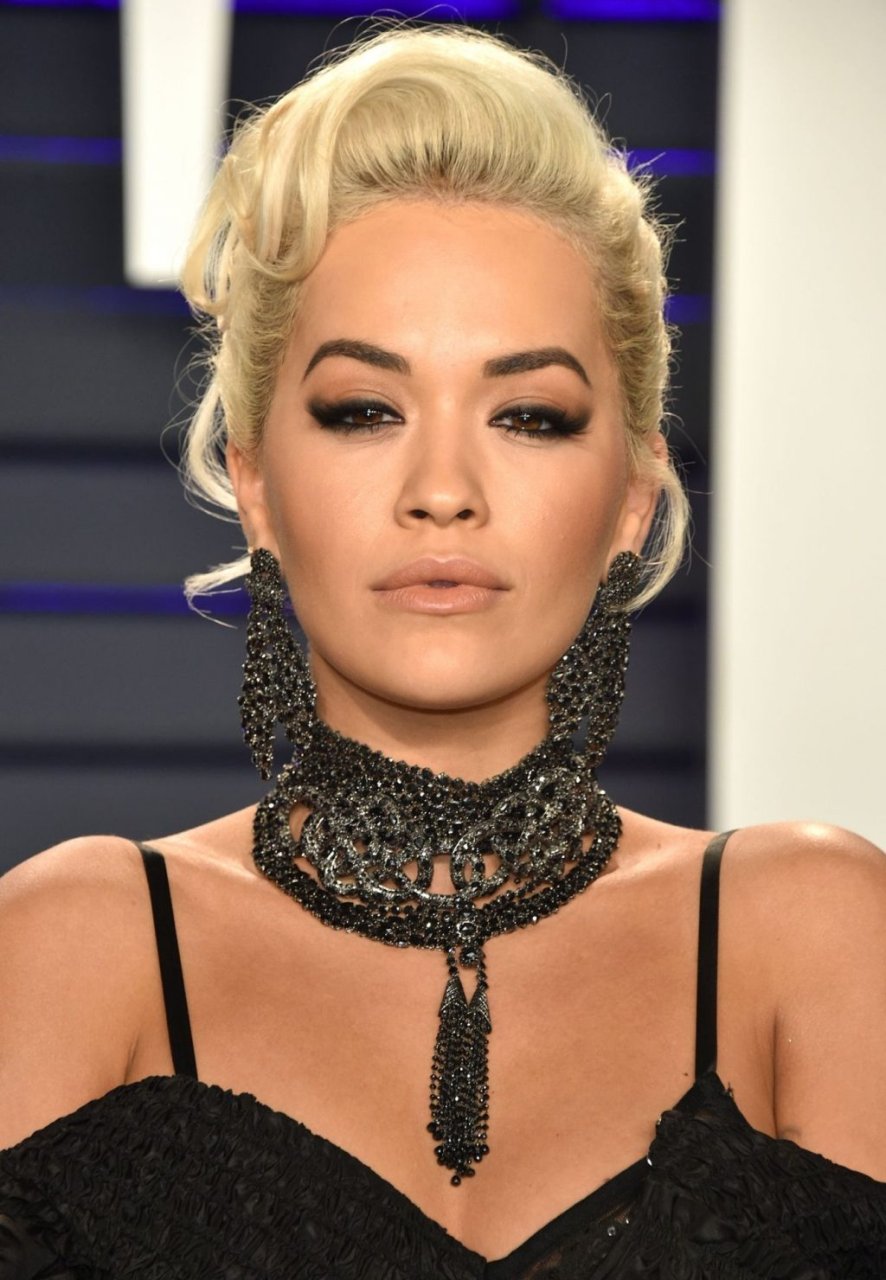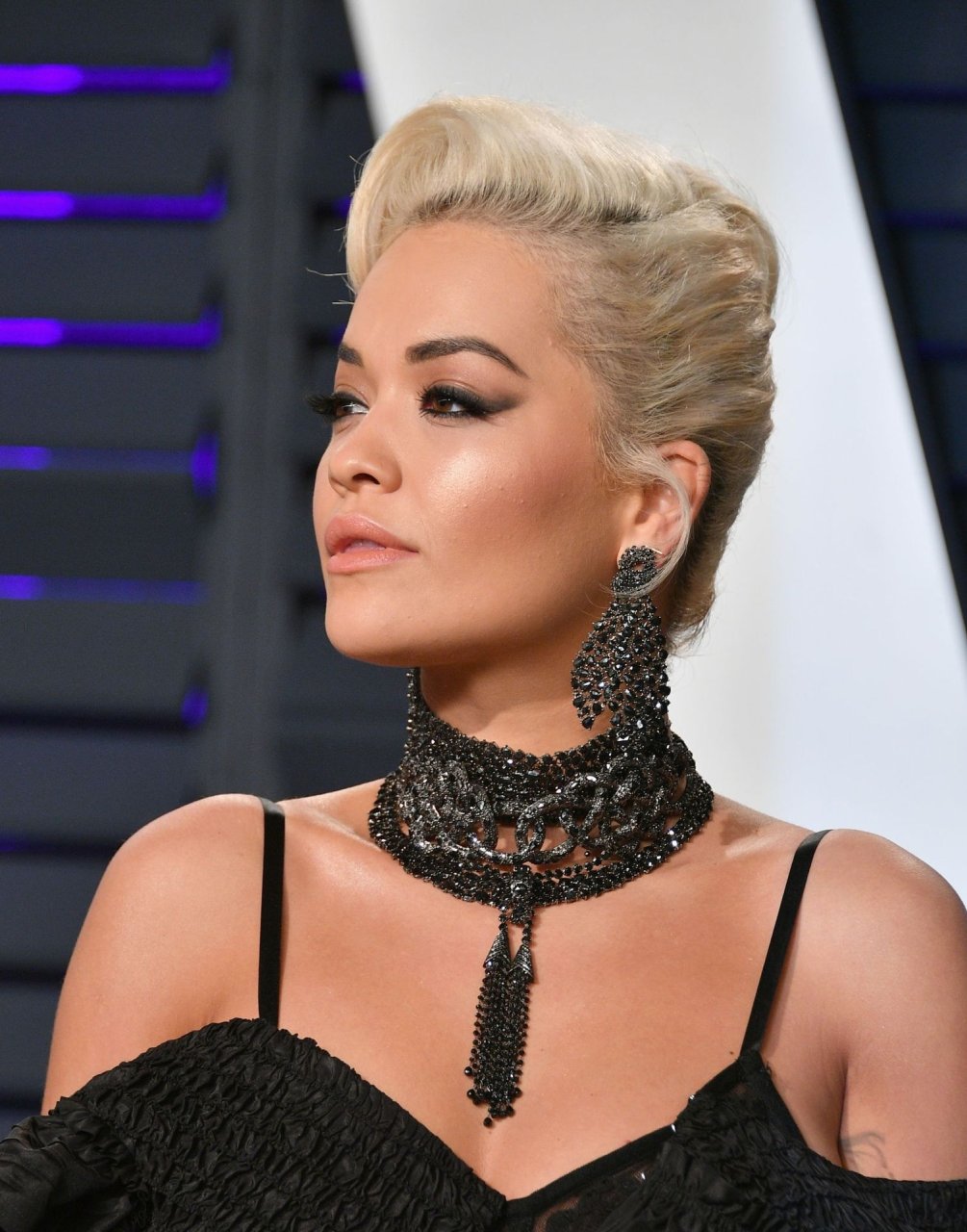Superstar Rita Ora mostra seu decote e bumbum usando um vestido preto com lingerie de renda na festa Vanity Fair Oscar de 2019 em Beverly Hills, 24/02/2019.