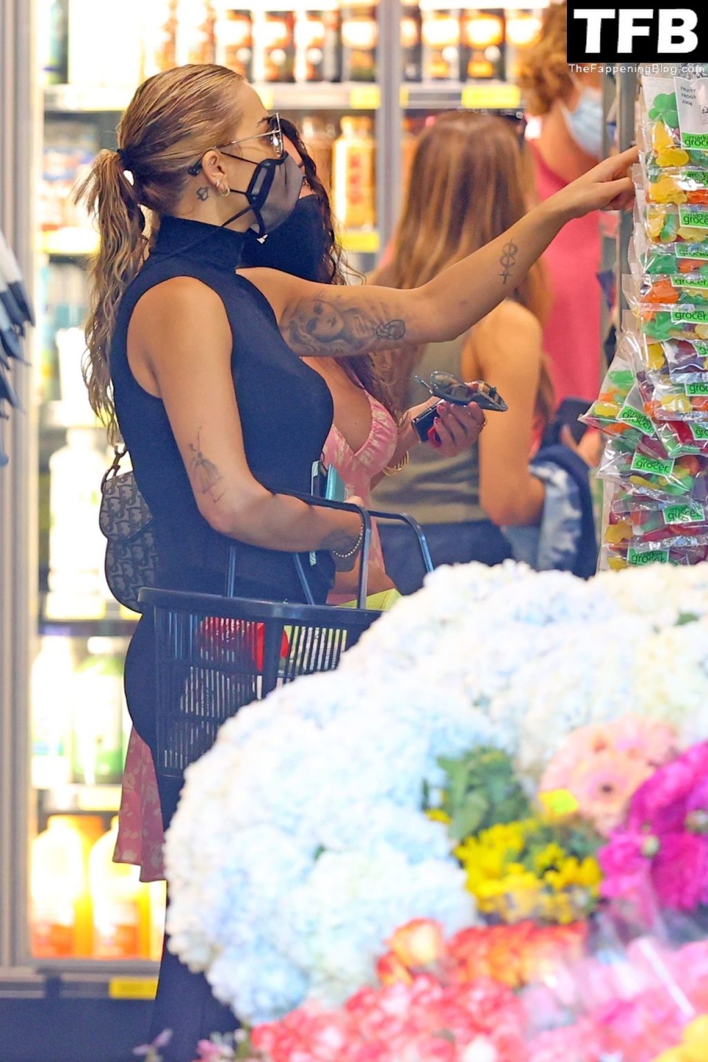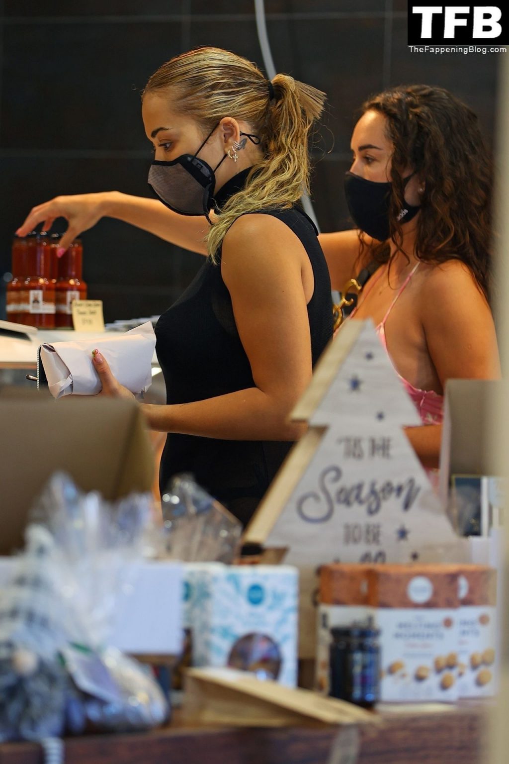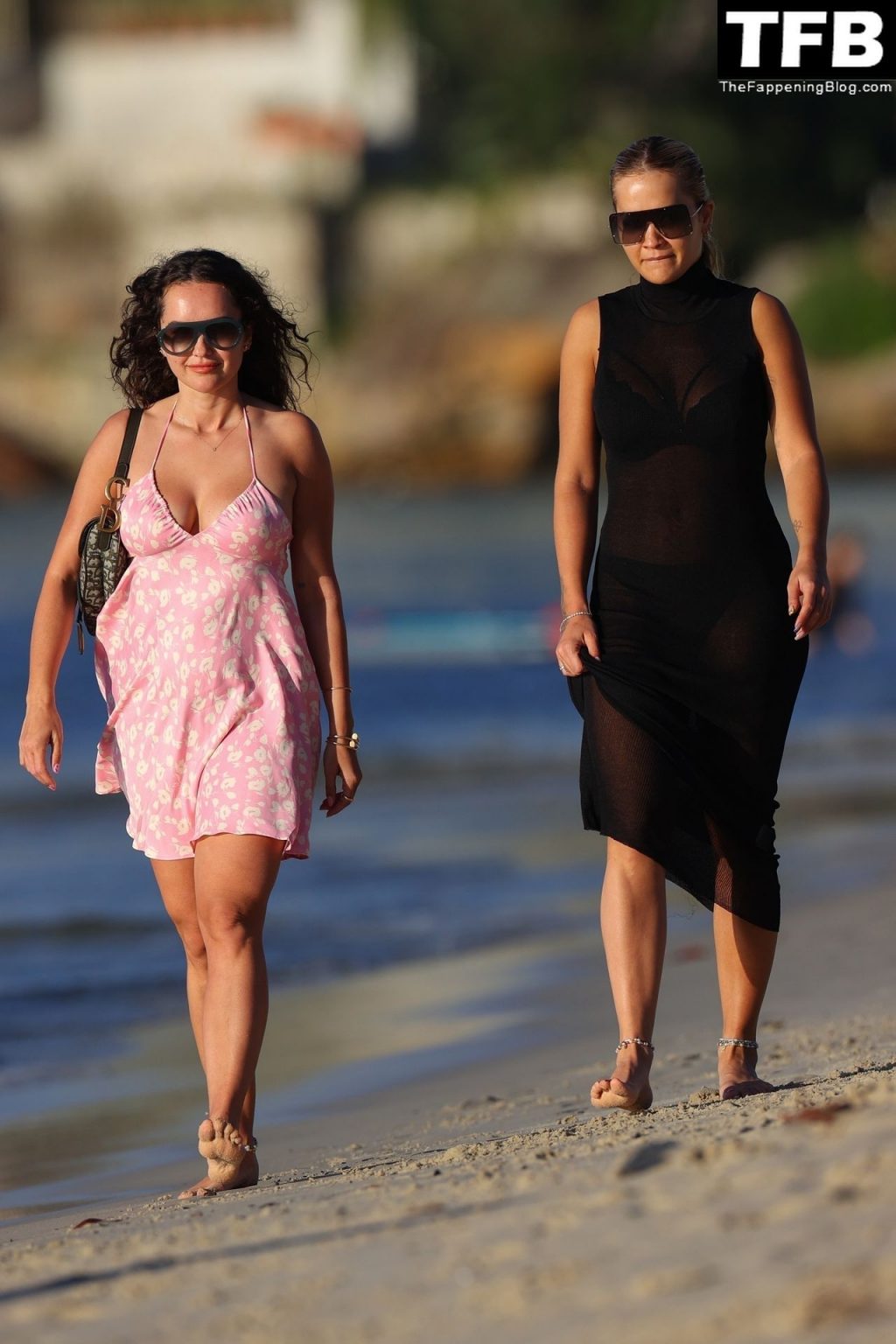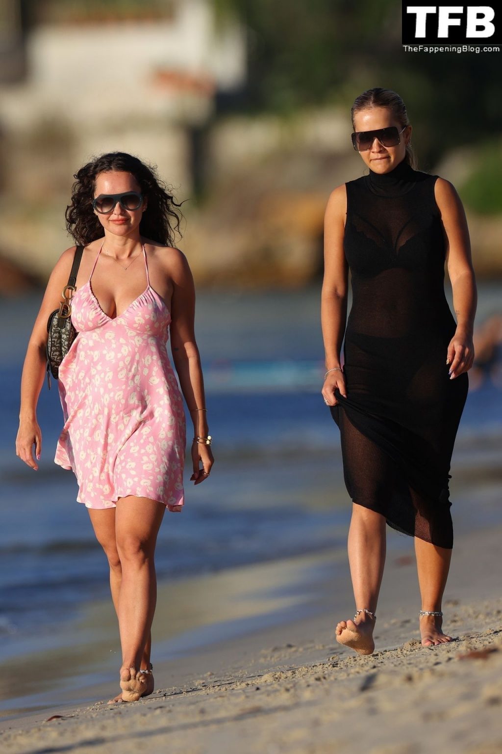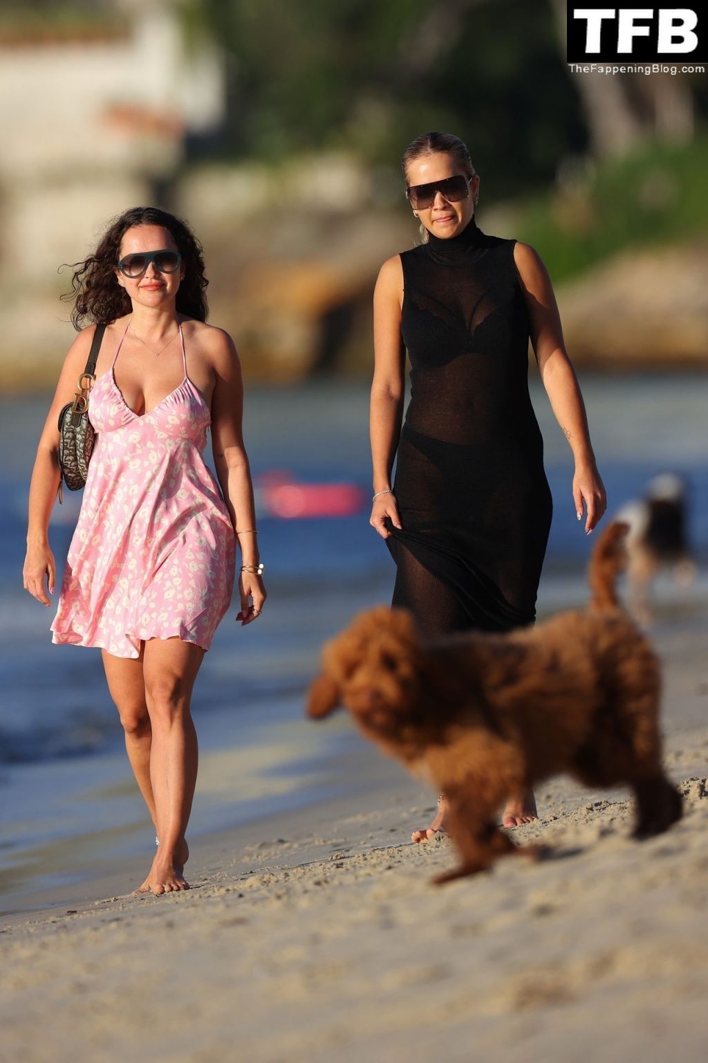 Singer Rita Ora é fotografada com sua irmã Elena enquanto usa um vestido preto transparente caminhando na praia e depois fazendo compras de supermercado durante sua estadia em Sydney para as filmagens da temporada 2022 do The Voice Australia.
