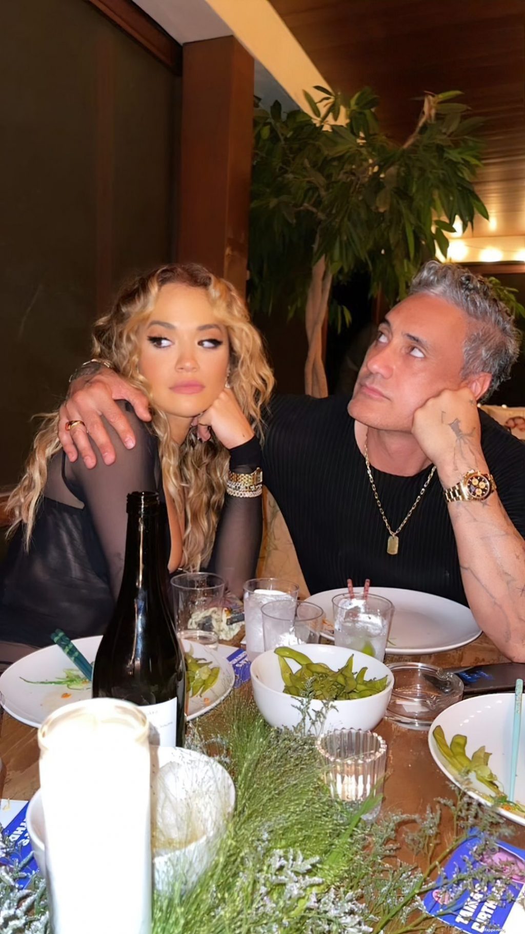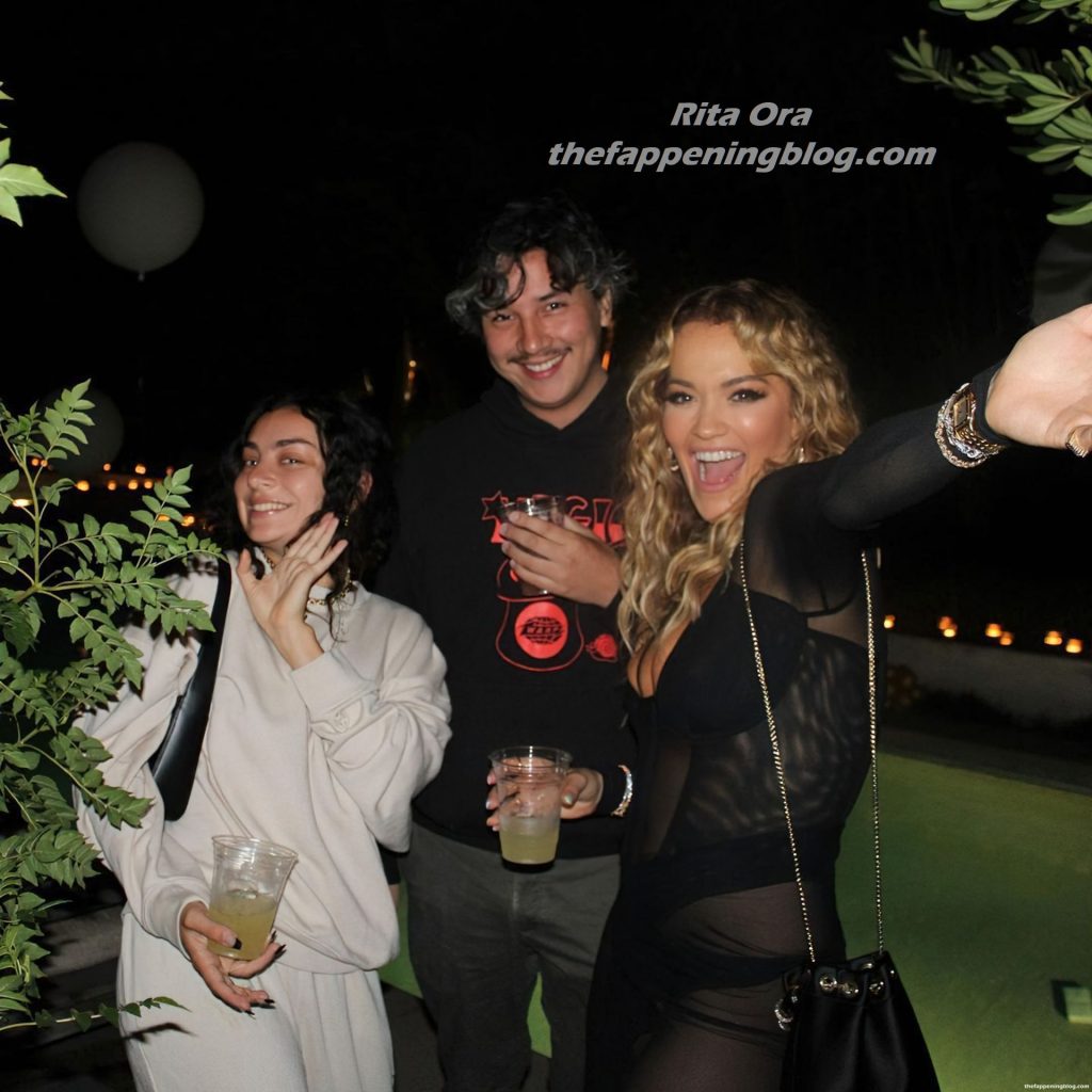 A cantora Rita Ora exibe seus seios e corpo perfeito usando um vestido preto transparente na festa de aniversário de Taika Waititi (agosto de 2021).