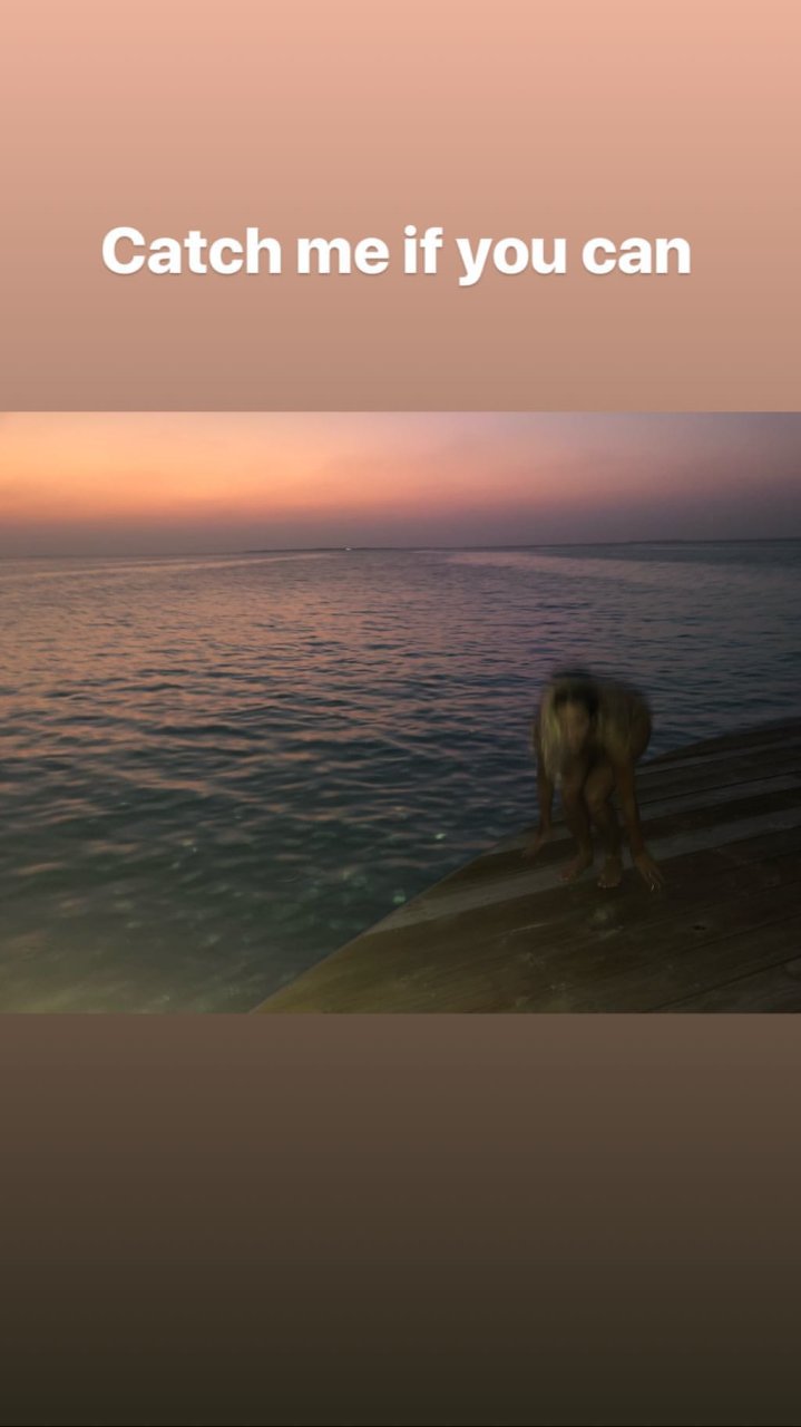 Se a mãe dela estivesse por perto, ela diria: onde está seu maiô, querida? E não se sente no deck novinho em folha com o seu traseiro nu, você vai enfiar farpas no seu traseiro e na sua vagina!
