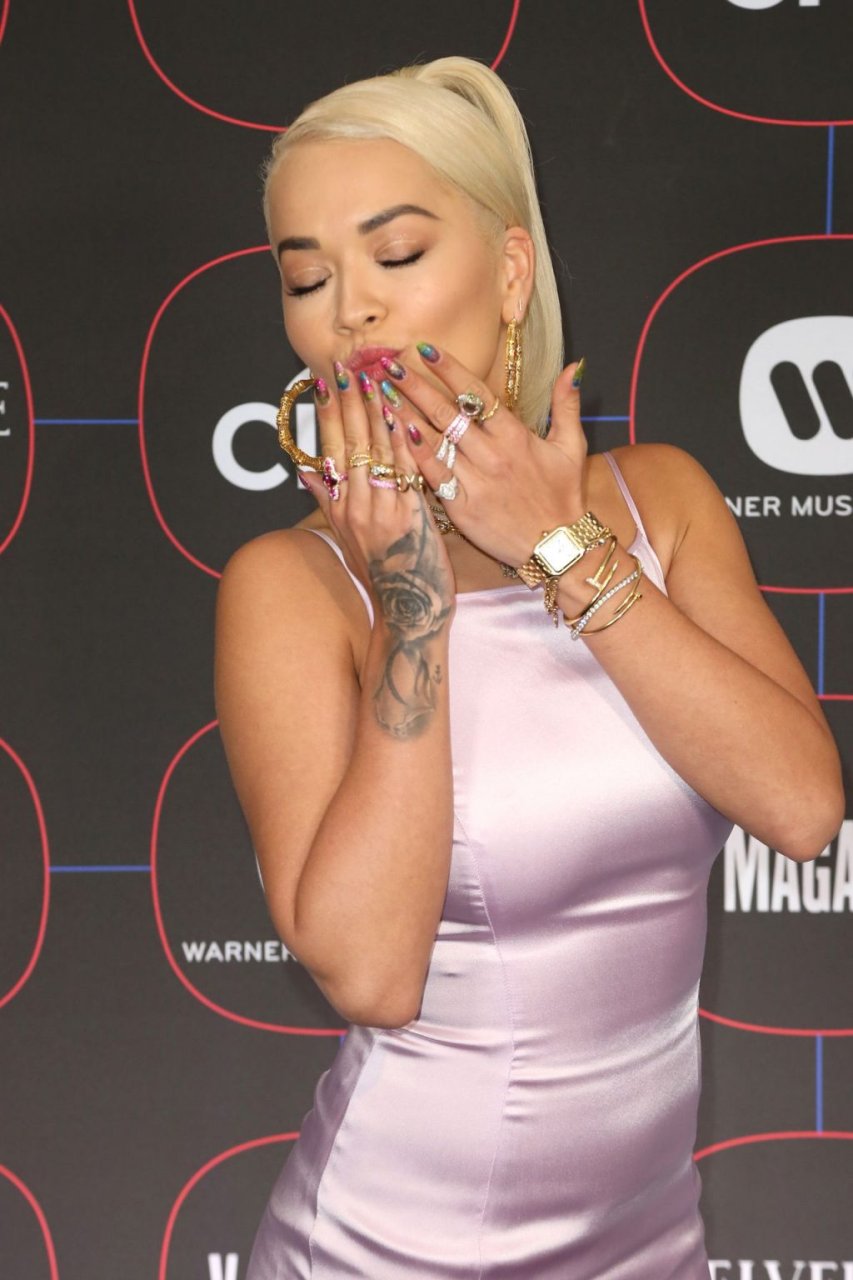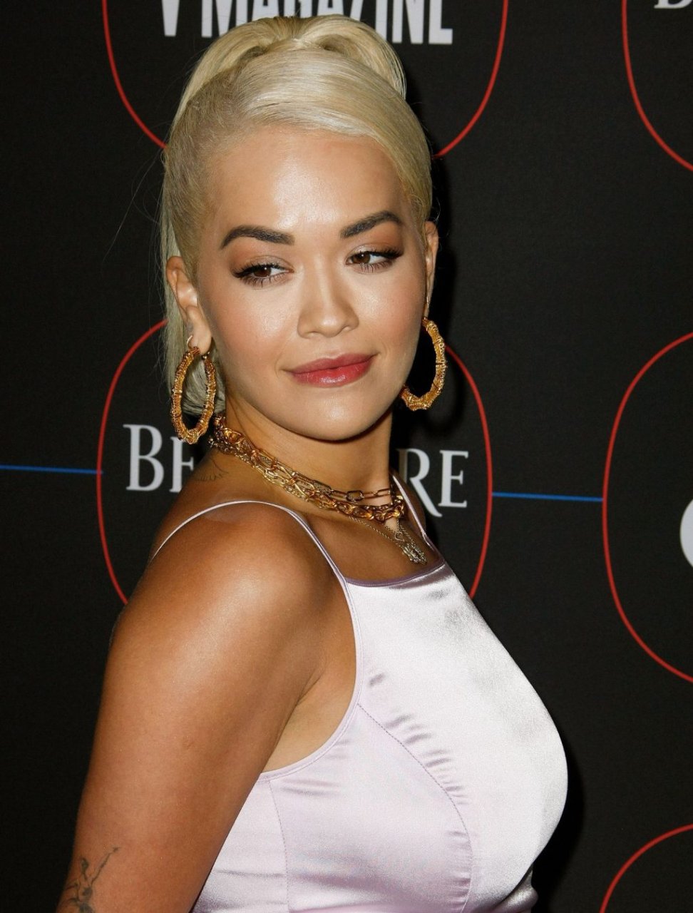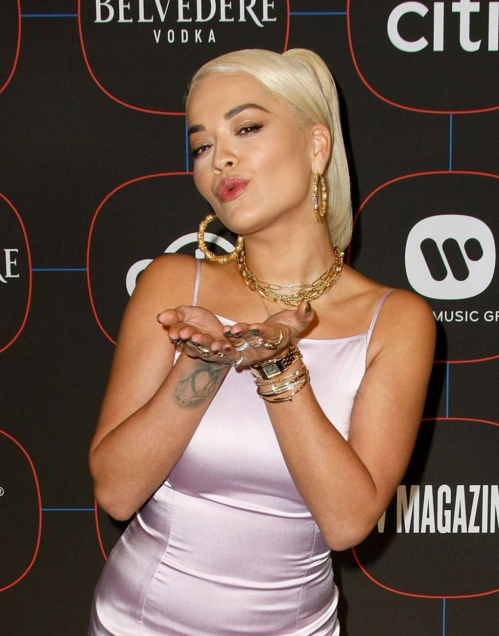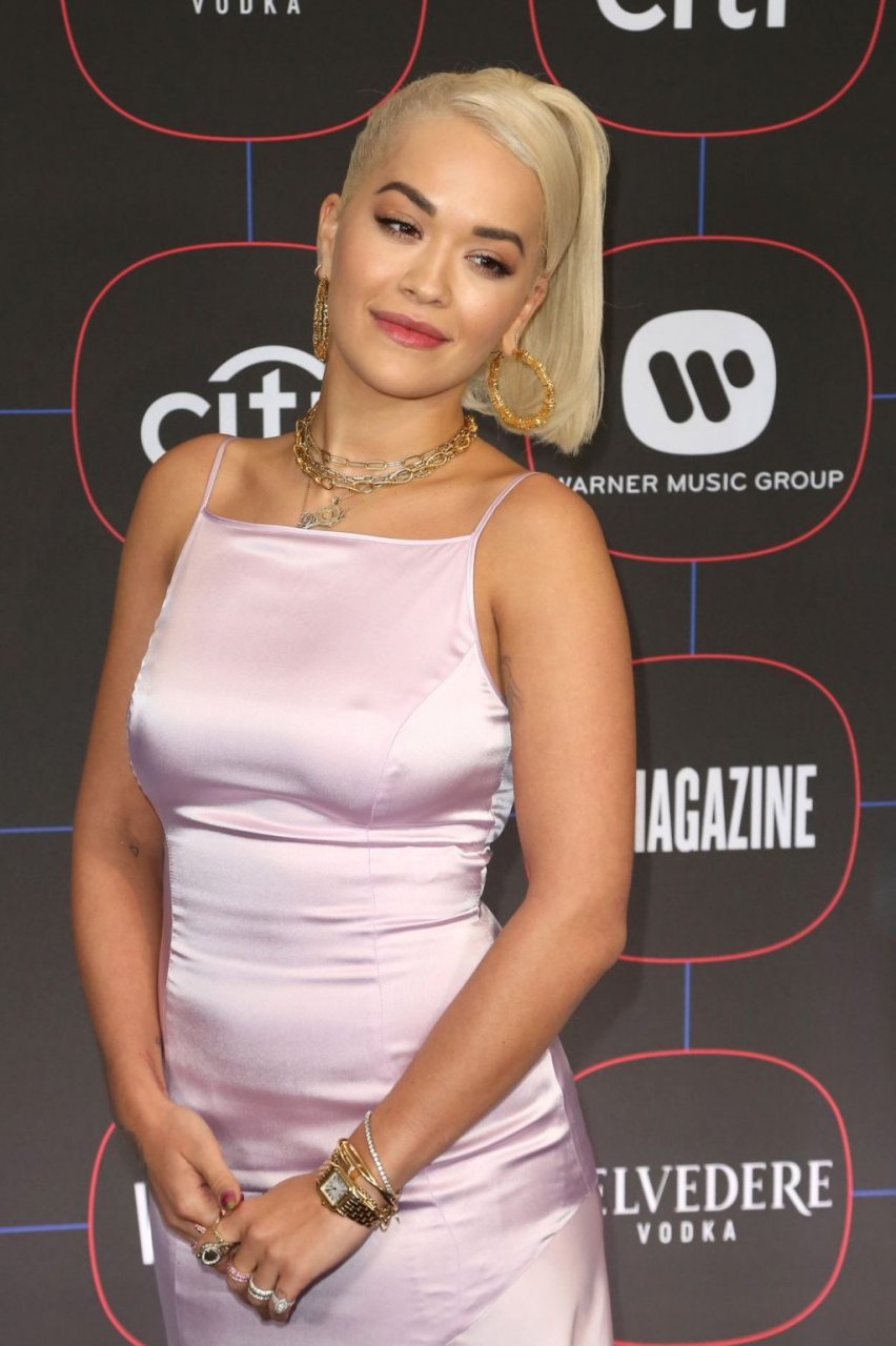 A cantora voluptuosa Rita Ora foi fotografada no tapete vermelho na “Festa Pré-Grammy da Warner Music no The NoMad Hotel em Los Angeles, 07/02/2019.