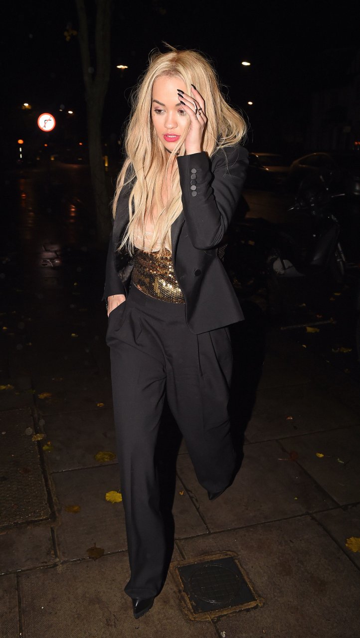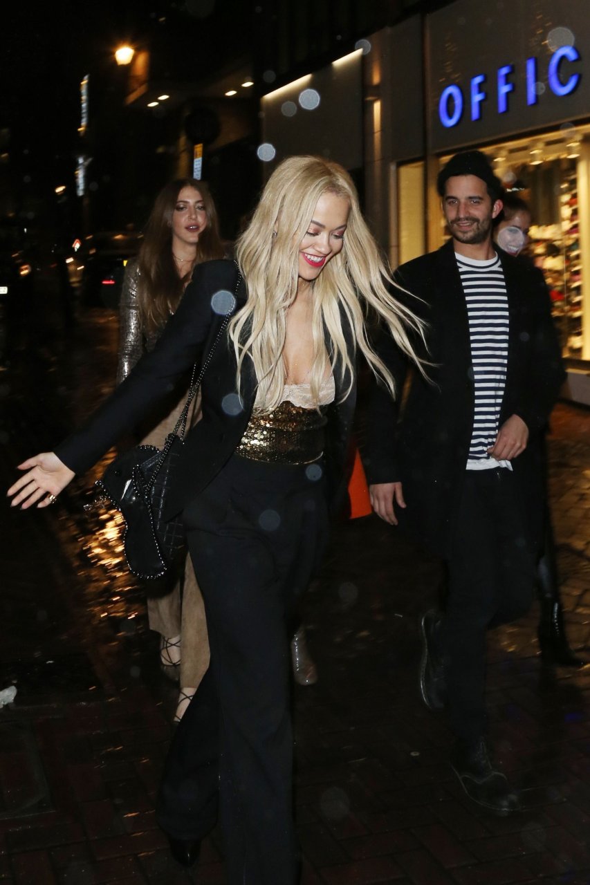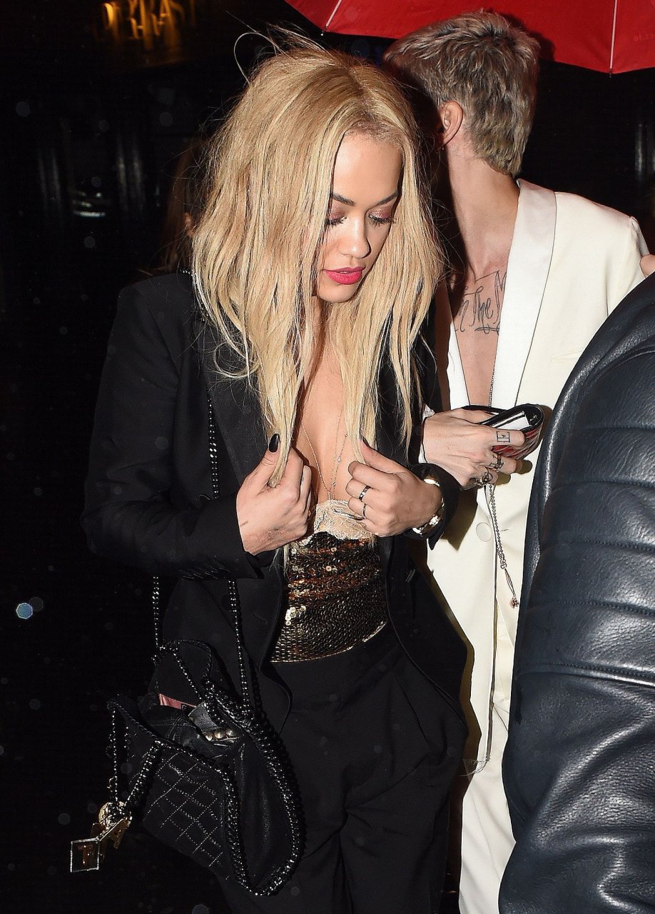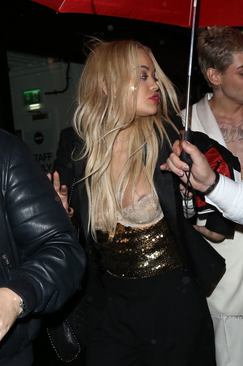 Novas fotos de paparazzi de Rita Ora usando um sutiã rendado do lado de fora do restaurante China Tang em Londres, 30/11/15. Rita Ora é uma cantora, compositora e atriz britânica. Idade 25 anos (26 de novembro de 1990).