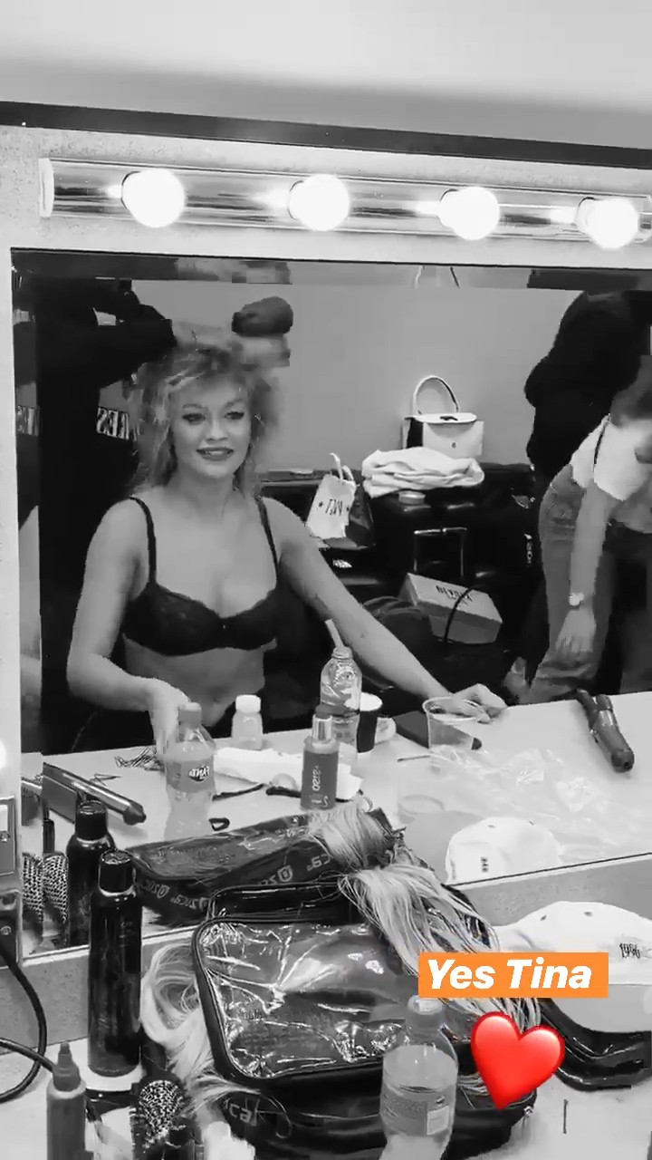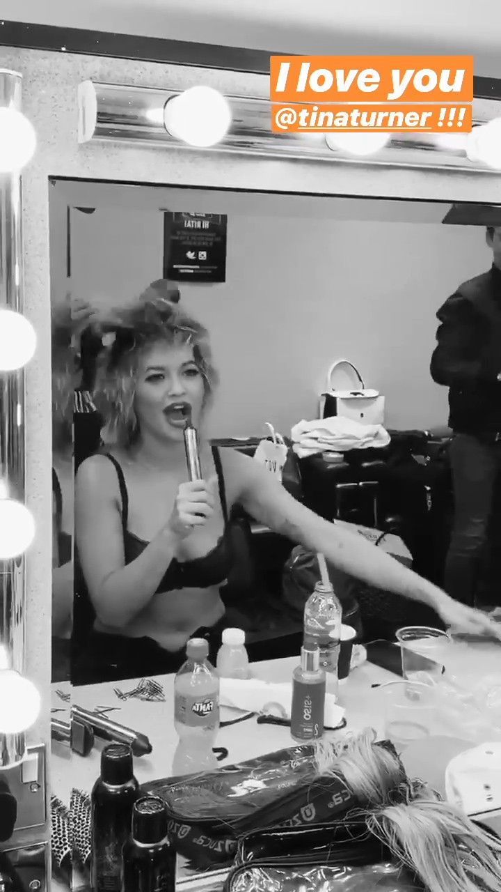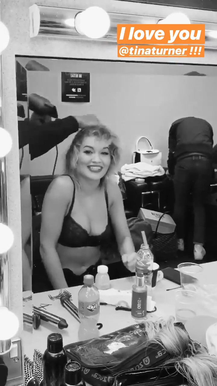 Rita Ora compartilhou algumas fotos e vídeos sexy em preto e branco do seu camarim no Instagram, 21/11/2019. A cantora foi fotografada por Ronan Park usando um sutiã.